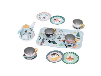 Kovový set riadu s krásnou zvieracie ilustrácií, s podtáčí. Tento set je špeciálny v tom, že pri servírovaní hrá hudbu.
