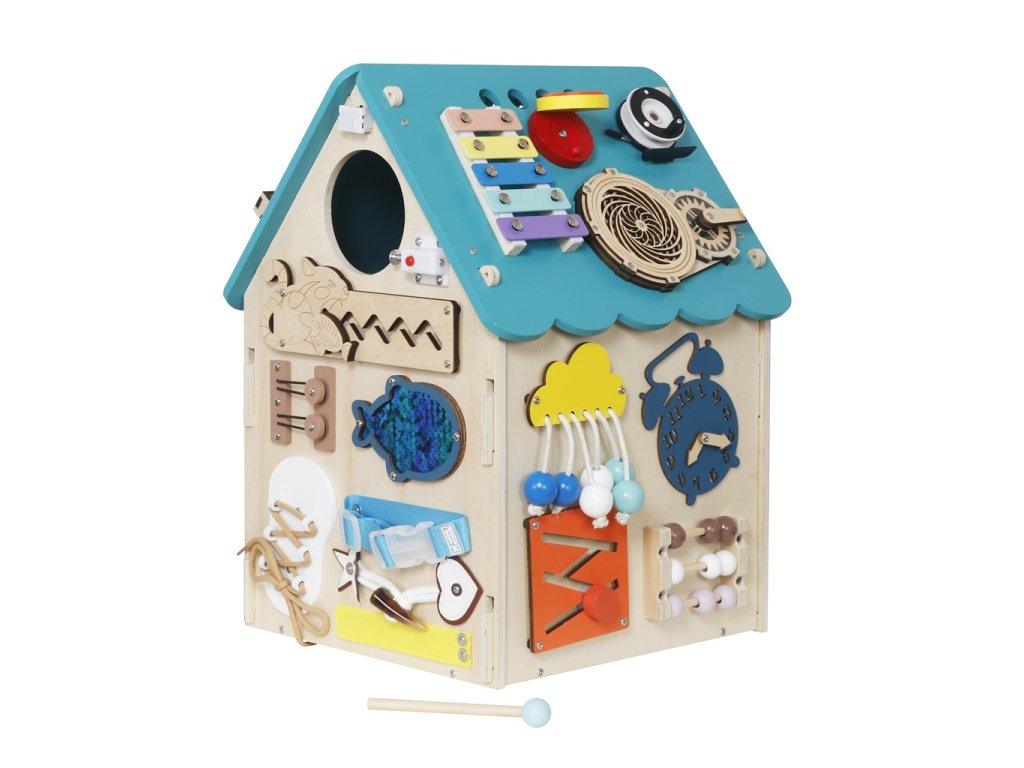 Domček vo vnútri svieti. Motivuje deti k samostatnému objavovaniu, učí ich trpezlivosti a koncentrácii a zároveň ich pripravuje na každodenné činnosti bežného života prostredníctvom praktického tréningu. Poskytuje bezpečné a podnetné prostredie, v ktorom si deti hravou formou rozvíjajú zručnosti nevyhnutné pre samostatnosť. Kombinácia prírodného dreva s príjemnými farbami spolu s kvalitným prevedením robia z tejto hračky pekný doplnok každej izbičky alebo herne. Domček sa dodáva zložený v krabici.