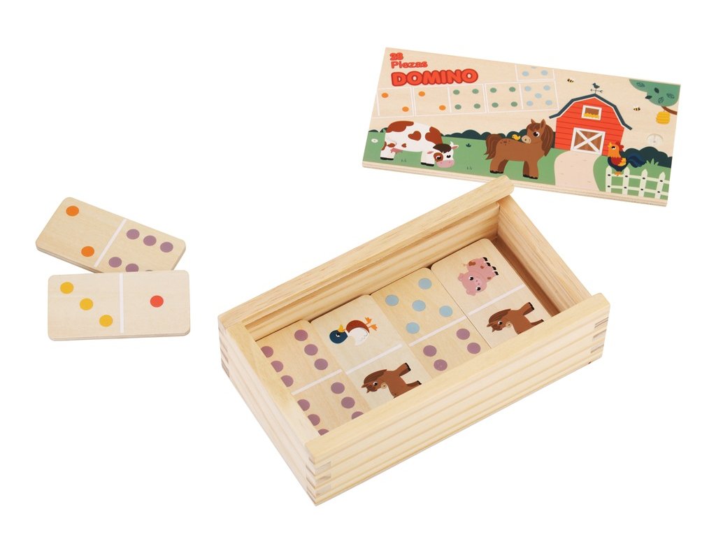 Jedna hra, dva spôsoby zábavy pre malé aj väčšie deti! S obojstranným dominom sa deti nielen skvele zabavia, ale aj prirodzene rozvíjajú svoje schopnosti. Menšie deti si užijú skladanie pomocou veselých obrázkov zvieratiek z farmy, zatiaľ čo väčšie si zahrajú klasické domino s bodkami a nenásilne si precvičia počítanie aj logické uvažovanie. Domino podporuje logické myslenie aj jemnú motoriku a ponúka skvelú možnosť k spoločnej hre detí s rodičmi, starými rodičmi alebo súrodencami. Príjemné pastelové a zemité odtiene farieb spolu s kvalitným prírodným drevom robia z tejto hračky krásny doplnok každej izbičky. Uložené v praktickom drevenom boxe s viečkom. Hlavné vlastnosti obojstranné prevedenierozvíja logické myslenie a schopnosť sústredeniapodporuje jemnú motoriku a koordináciuodolné a príjemné na dotykvhodné pre deti od 2 rokovDodatočné parametre