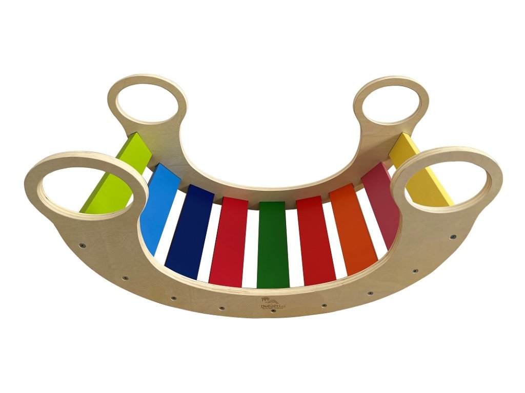 Elegantná hojdačka s veselými farbami dúhy sa hodí do každého interiéru a určite poteší malých zvedavých objaviteľov! Hojdačka je vybavená 4 madlami a je možné ju uplatniť nielen v pohybovej terapii. Deti ju môžu využiť na sedenie, šplhanie, hojdanie, alebo ako domček na preliezanie. Vďaka týmto aktivitám rozvíja motorické zručnosti, rovnováhu či koordináciu pohybu. Výrobok vyžaduje montáž dospelej osoby. Dodáva sa s detailným návodom na zostavenie (CZ, SK, EN). Hlavné vlastnosti: multifunkčné vlastnostinosnosť max. 75 kgtrénuje motoriku a rovnováhudizajn vhodný do každého interiéruDodatočné parametre