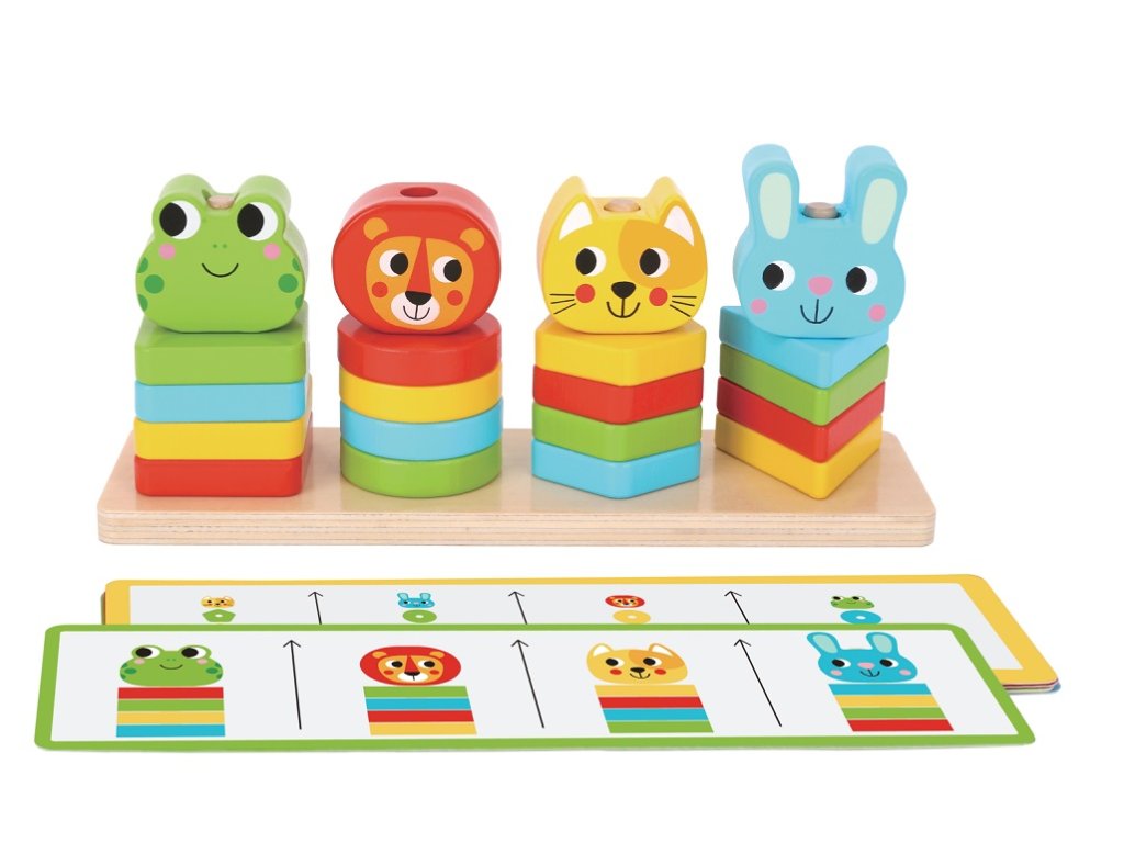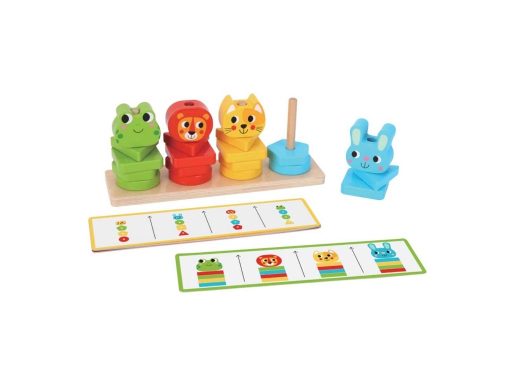 Jeden, dva, tri, štyri, päť - poskladajte drevené dieliky na seba a vytvorte si kamaráta! Táto rozkošná stohovacia hra obsahuje 4 zvieratká (žabu, leva, mačku a králika), ktorých dieliky môžete na tyčiach ľubovoľne kombinovať. Výrobok má roztomilý design v klasických pestrých farbách a je skvelým pomocníkom pri rozvoji zručnosti a rozpoznávania tvarov. V sade sú k dispozícii kartičky, podľa ktorých sa vaše ratolesti môžu riadiť. Hlavné vlastnosti: vyrobené z FSC® drevamotorická vzdelávacia hračkatrénuje koordináciu ruka-okoideálny pre rozvoj kreativity a obratnosti Značka a certifikát FSC® (Forest Stewardship Council) zaručuje, že drevo, z ktorého bol výrobok vyrobený, nebolo vyťažené nelegálne a pochádza z lesov obhospodarovaných šetrným či prírode blízkym spôsobom, v ktorom sú dodržiavané prísne environmentálne a sociálne požiadavky. Značka FSC® na výrobku znamená, že svojim nákupom pomáhate chrániť lesy a podporujete šetrné, zodpovedné či prírode blízke hospodárenie, vďaka ktorému sú naše lesy stabilnejšie, zdravšie, majú prirodzenú druhovú skladbu a lepšie odolávajú negatívnym následkom klimatických zmien.Dodatočné parametre