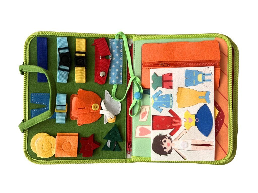Kniha obsahuje rôznorodé motorické aktivity ako sú gombíky, pracky, zipsy, suché zipsy, šnúrky a ďalšie. Je vhodná pre hmatové, zrakové aj zvukové podnety. Kniha je mäkká a ľahká. Perfektný ako darček k narodeninám, Vianociam alebo len tak pre radosť aj rozvoj.