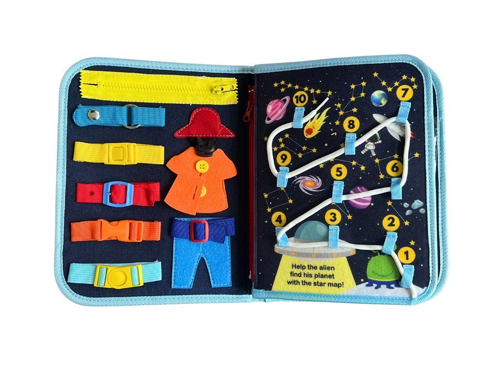 Kniha obsahuje rôznorodé motorické aktivity ako sú gombíky, pracky, zipsy, suché zipsy, šnúrky a ďalšie. Je vhodná pre hmatové, zrakové aj zvukové podnety. Kniha je mäkká a ľahká. Perfektný ako darček k narodeninám, Vianociam alebo len tak pre radosť aj rozvoj.