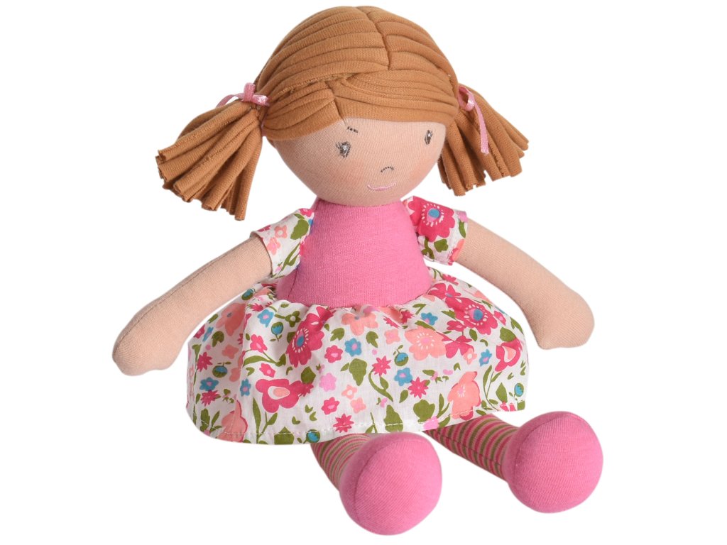 Hra s bábikou rozvíja okrem jemnej motoriky aj schopnosť pomáhať, vcítiť sa, posilňuje vrodený cit pre starostlivosť a cez hrané príbehy napomáha rozvoju fantázie a predstavivosti. Keďže malé deti ešte nevedia vyjadriť svoje emócie slovami, často ich vyjadrujú práve prostredníctvom hry s bábikami, kam prenášajú kúsok svojho vlastného sveta. Jednoduchá bábika bez špeciálnych funkcií, bateriek a príslušenstva neobmedzuje detskú fantáziu a dáva dieťaťu najväčší priestor na sebavyjadrenie. Certifikovaná bavlna a polyester Výplň – recyklované vlákno z PET fliaš. Precízna ručná práca, kvalitné vypracovanie. Bábika je príjemne mäkká a preto je vhodná aj na túlenie a na spanie. Bezpečné aj pre najmenších. Testované podľa EU noriem. Výška cca 25 cm.Vhodné od narodenia.Vyrobené na Srí Lanke vo fair trade podmienkach. Varianty:Malá Fran – ružové šatyMalá Katy – ružovo-modré šatyMalá Peggy – fialové šaty Ako vznikla Bonikka Bonikka sa zrodila na Srí Lanke z rodinnej tradície, ktorá vznikla v roku 1895 z jednoduchého skutku s obrovským významom. Otec daroval svojej dcére, ktorá odišla z domu, aby si založila vlastnú rodinu, porcelánovú bábiku na rozlúčku. Bábika jej mala pripomínať, aké pevné je puto rodiny, aká nekonečná je láska a podpora rodičov. Odvtedy táto bábika putovala generáciami a pripomínala ženám tieto dôležité hodnoty. Mano – dnešná riaditeľka rodinnej fabriky na výrobu hračiek DSL Lanka – dostala toto vzácne dedičstvo darom od svojej mamy. Odkaz, ktorý toto gesto nieslo, bol pre ňu tak silný, že sa roky neskôr rozhodla sprostredkovať ho oveľa mladším deťom – dievčatám a chlapcom, ktorí sa práve učia pochopiť kým sú, kam patria a čo pre nich znamená okolitý svet. A tak Mano vytvorila radu výnimočných bábik vyrobených dôkladnou ručnou prácou, zo zdravých prírodných materiálov a nazvala ich Bonikka, čo v Sinhalčine znamená „bábika“. Dodatočné parametre
