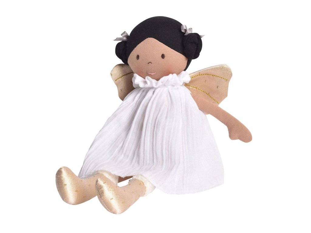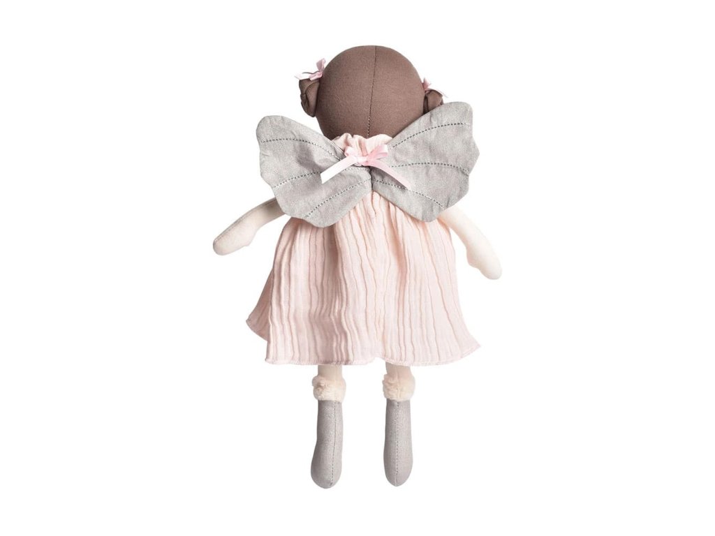 Hra s bábikou rozvíja okrem jemnej motoriky aj schopnosť pomáhať, vcítiť sa, posilňuje vrodený cit pre starostlivosť a cez hrané príbehy napomáha rozvoju fantázie a predstavivosti. Keďže malé deti ešte nevedia vyjadriť svoje emócie slovami, často ich vyjadrujú práve prostredníctvom hry s bábikami, kam prenášajú kúsok svojho vlastného sveta. Jednoduchá bábika bez špeciálnych funkcií, bateriek a príslušenstva neobmedzuje detskú fantáziu a dáva dieťaťu najväčší priestor na sebavyjadrenie. Bábiky Aurora a Angelina majú šatočky z jemnučkého nariaseného mušelínu a na prvý pohľad zaujmú svojim milým úsmevom, trblietavými krídlami a čižmičkami. Tieto látkové bábiky z kolekcie Fairy pripomínajú nežné rozprávkové víly, alebo roztomilých anjelikov. Precízna ručná práca, kvalitné vypracovanie. Šaty sa dajú vyzliekať. Bábika je príjemne mäkká a preto je vhodná aj na túlenie a na spanie. Bezpečné aj pre najmenších. Testované podľa EU noriem. Zloženie: Telo a vlasy – 100% certifikovaná organická bavlna Single Jersey Šaty – 100% certifikovaná bavlna (nariasený mušelín) Výplň – 100% recyklovaný polyester Výška cca 32 cm. Vhodné od narodenia. Vyrobené na Srí Lanke vo fair trade podmienkach. Varianty: Aurora (biele šaty a zlaté krídla) Angelina (ružové šaty a strieborné krídla) Ako vznikla Bonikka Bonikka sa zrodila na Srí Lanke z rodinnej tradície, ktorá vznikla v roku 1895 z jednoduchého skutku s obrovským významom. Otec daroval svojej dcére, ktorá odišla z domu, aby si založila vlastnú rodinu, porcelánovú bábiku na rozlúčku. Bábika jej mala pripomínať, aké pevné je puto rodiny, aká nekonečná je láska a podpora rodičov. Odvtedy táto bábika putovala generáciami a pripomínala ženám tieto dôležité hodnoty. Mano – dnešná riaditeľka rodinnej fabriky na výrobu hračiek DSL Lanka – dostala toto vzácne dedičstvo darom od svojej mamy. Odkaz, ktorý toto gesto nieslo, bol pre ňu tak silný, že sa roky neskôr rozhodla sprostredkovať ho oveľa mladším deťom – dievčatám a chlapcom, ktorí sa práve učia pochopiť kým sú, kam patria a čo pre nich znamená okolitý svet. A tak Mano vytvorila radu výnimočných bábik vyrobených dôkladnou ručnou prácou, zo zdravých prírodných materiálov a nazvala ich Bonikka, čo v Sinhalčine znamená „bábika“.Dodatočné parametre