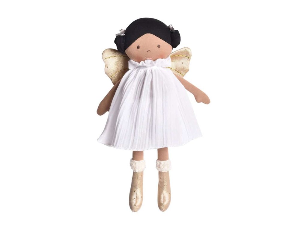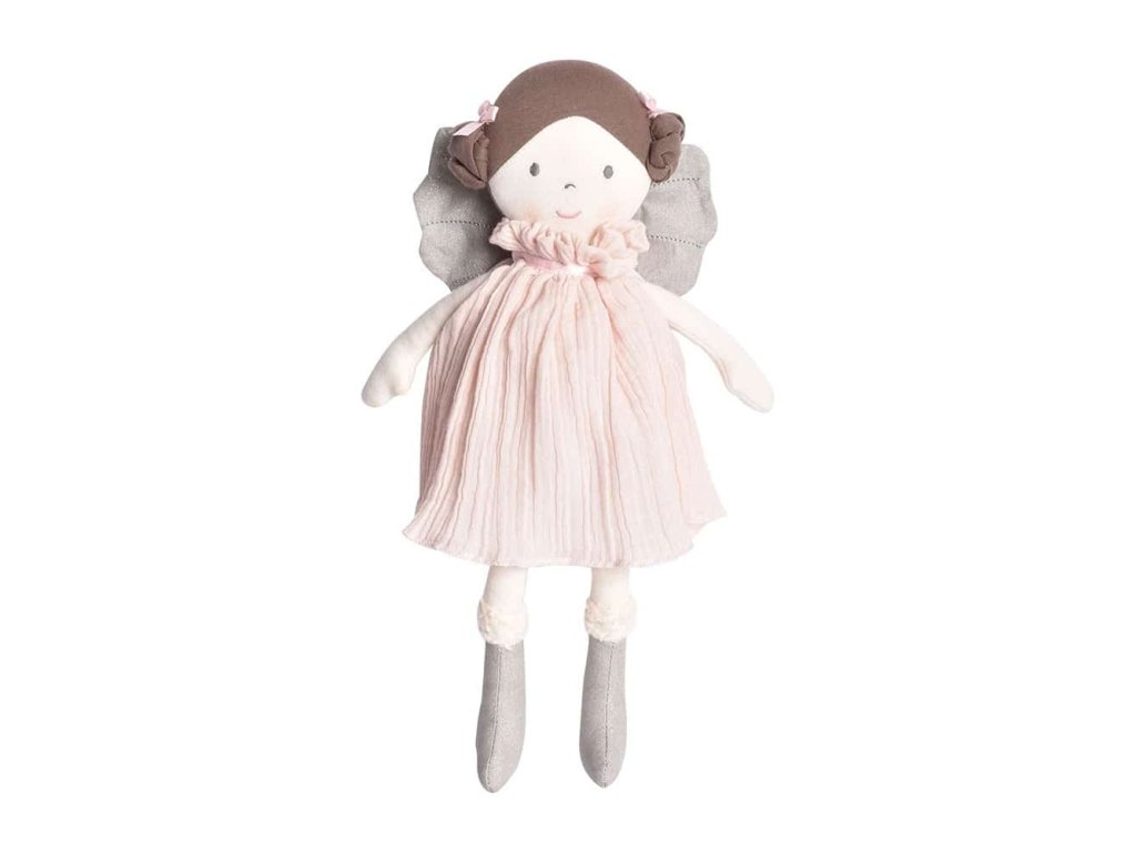 Hra s bábikou rozvíja okrem jemnej motoriky aj schopnosť pomáhať, vcítiť sa, posilňuje vrodený cit pre starostlivosť a cez hrané príbehy napomáha rozvoju fantázie a predstavivosti. Keďže malé deti ešte nevedia vyjadriť svoje emócie slovami, často ich vyjadrujú práve prostredníctvom hry s bábikami, kam prenášajú kúsok svojho vlastného sveta. Jednoduchá bábika bez špeciálnych funkcií, bateriek a príslušenstva neobmedzuje detskú fantáziu a dáva dieťaťu najväčší priestor na sebavyjadrenie. Bábiky Aurora a Angelina majú šatočky z jemnučkého nariaseného mušelínu a na prvý pohľad zaujmú svojim milým úsmevom, trblietavými krídlami a čižmičkami. Tieto látkové bábiky z kolekcie Fairy pripomínajú nežné rozprávkové víly, alebo roztomilých anjelikov. Precízna ručná práca, kvalitné vypracovanie. Šaty sa dajú vyzliekať. Bábika je príjemne mäkká a preto je vhodná aj na túlenie a na spanie. Bezpečné aj pre najmenších. Testované podľa EU noriem. Zloženie: Telo a vlasy – 100% certifikovaná organická bavlna Single Jersey Šaty – 100% certifikovaná bavlna (nariasený mušelín) Výplň – 100% recyklovaný polyester Výška cca 32 cm. Vhodné od narodenia. Vyrobené na Srí Lanke vo fair trade podmienkach. Varianty: Aurora (biele šaty a zlaté krídla) Angelina (ružové šaty a strieborné krídla) Ako vznikla Bonikka Bonikka sa zrodila na Srí Lanke z rodinnej tradície, ktorá vznikla v roku 1895 z jednoduchého skutku s obrovským významom. Otec daroval svojej dcére, ktorá odišla z domu, aby si založila vlastnú rodinu, porcelánovú bábiku na rozlúčku. Bábika jej mala pripomínať, aké pevné je puto rodiny, aká nekonečná je láska a podpora rodičov. Odvtedy táto bábika putovala generáciami a pripomínala ženám tieto dôležité hodnoty. Mano – dnešná riaditeľka rodinnej fabriky na výrobu hračiek DSL Lanka – dostala toto vzácne dedičstvo darom od svojej mamy. Odkaz, ktorý toto gesto nieslo, bol pre ňu tak silný, že sa roky neskôr rozhodla sprostredkovať ho oveľa mladším deťom – dievčatám a chlapcom, ktorí sa práve učia pochopiť kým sú, kam patria a čo pre nich znamená okolitý svet. A tak Mano vytvorila radu výnimočných bábik vyrobených dôkladnou ručnou prácou, zo zdravých prírodných materiálov a nazvala ich Bonikka, čo v Sinhalčine znamená „bábika“.Dodatočné parametre