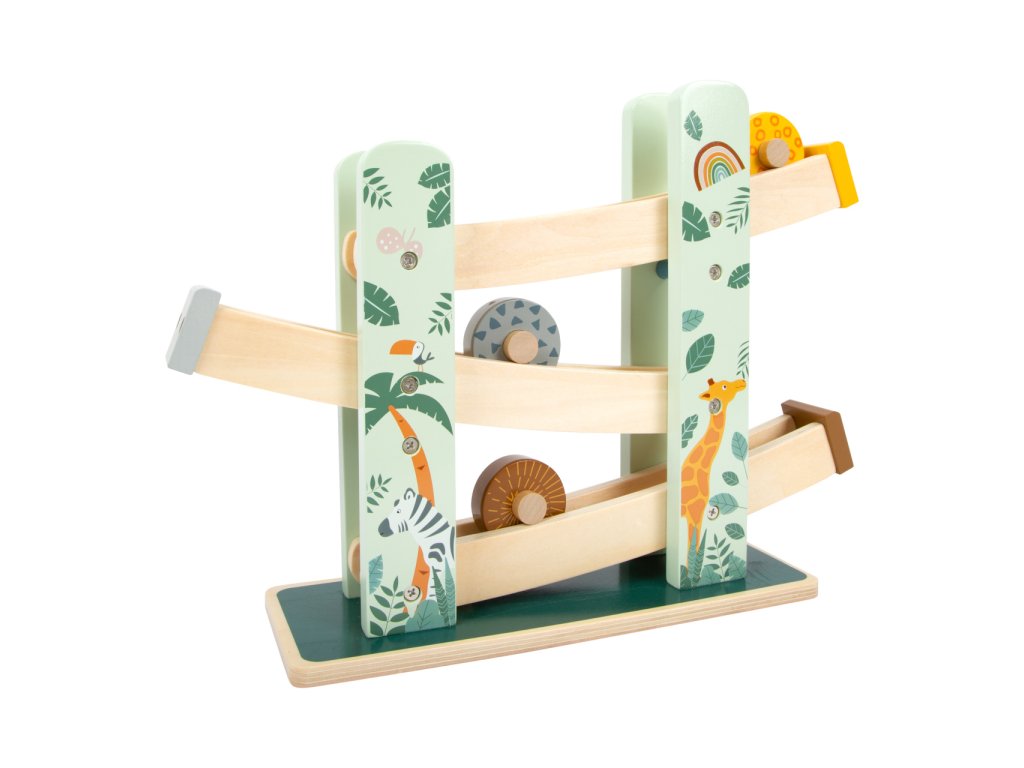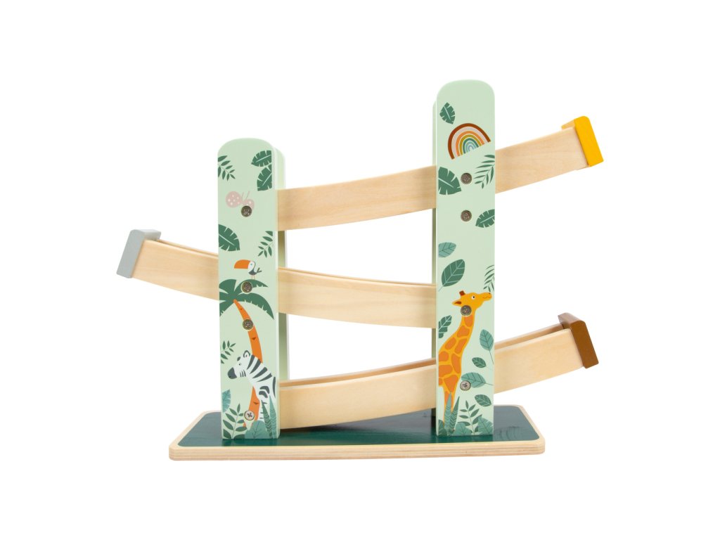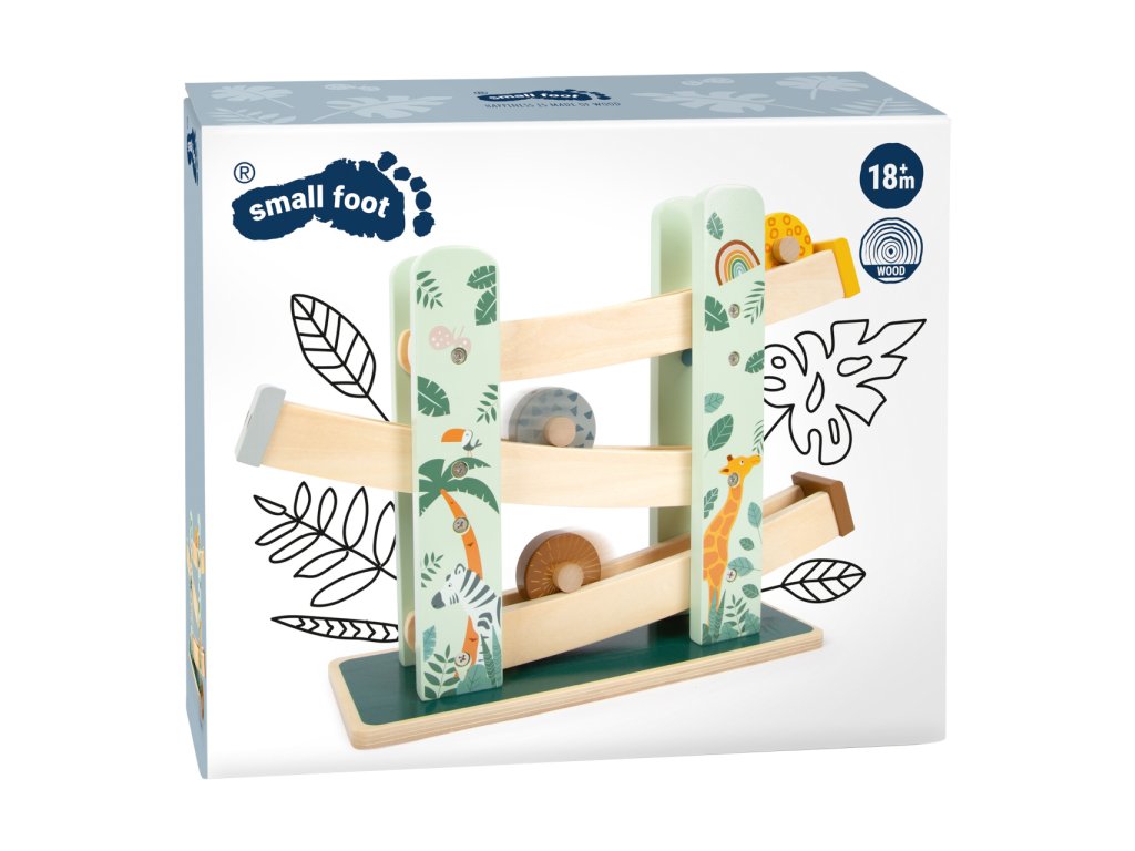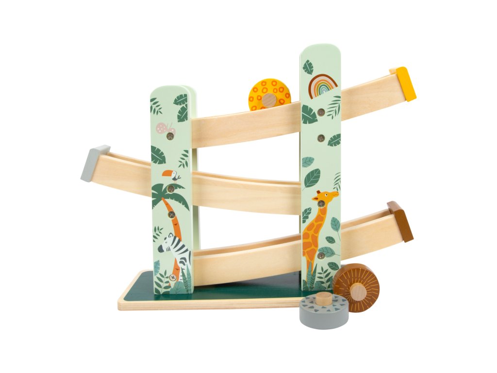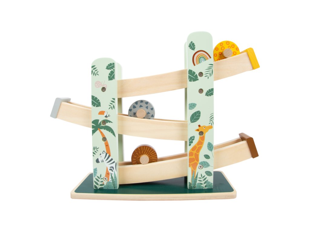 Tři různobarevná kola sjíždějí po třech rampách v oblíbeném safari vzhledu. Sestup je zdoben bohatě propracovanými safari zvířaty a módními motivy listů. Je pro dítě skutečným lákadlem a zaručuje dlouhou zábavnou hru
