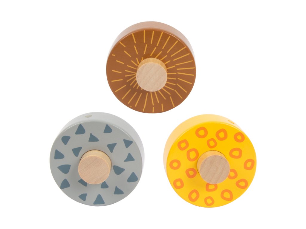 S touto hračkou mohou děti hravou formou trénovat jemnou motoriku. Na dřevěné tyči jsou výstupky, které znesnadňují skládání.