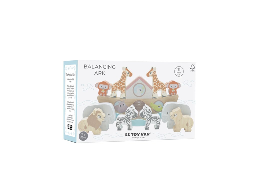 Krásna hračka v tradičnom dizajne pre najmenšie deti. Farebná balančná archa s desiatimi ručne maľovanými zvieratkami, vďaka ktorej sa deti naučia spoznávať farby a tvary. Dokážu na lodi vybalansovať všetkých 5 párov zvierat? Balančná hračka deťom pomôže s kognitívnym rozvojom, trénuje koordináciu ruka-oko a zručnosť. Vyrobené z udržateľného dreva, maľované netoxickými farbami. Hračky s účelomVšetky hračky firmy Le Toy Van sú vyrobené s cieľom - aby dlho vydržali. Dizajnované s láskou skúsenými remeselníkmi za použití etických praktík a udržateľných materiálov, ktoré sú láskavejšie k našej planéte. Hlavné vlastnosti: vyrobené eticky z udržateľného drevatestované podľa najprísnejších štandardovmaľované netoxickými farbami na báze vodyinšpiruje k predstavivej hrerozvíja kognitívne zručnostihračka bez obsahu plastu Ocenenia hračky: Good Toy Guide Recommended Kolekcia balančných arch: Táto kolekcia má mnoho krásnych detailov, vdýchne zvieratkám život. Je vhodná od 12 mesiacov do 3 rokov, pomáha s rozvojom rôznych zručností, napríklad hra na role, zručnosť, kognitívne zručnosti. V tejto kolekcii sú hlavné tri faktory – vkladanie tvarov, balansovanie zvieratiek a predstavivá hra. Všetky archy sú inšpirované Noemom a jeho zvieratkami, tak nech si deti hru veľmi užijú!Dodatočné parametre