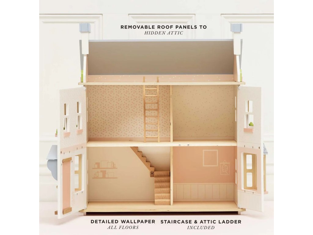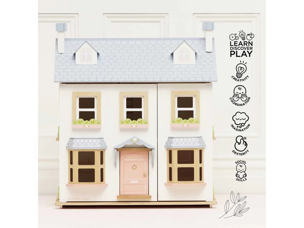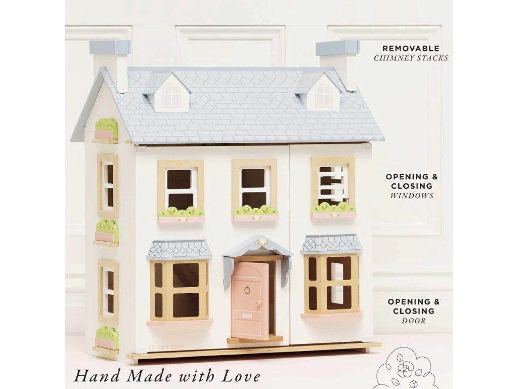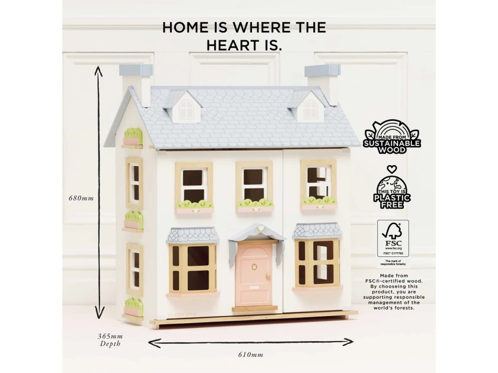 Drevený luxusný trojposchodový ručne maľovaný domček Mayberry Manor. Jednotlivé izby sú odlišne zdobené. Obsahuje schodisko prelínajúce sa stredom domčeka. Izby sú oddelené priečnou stenou. Domček má funkčné otváracie okná, okenice a dvere. Domček je možné otvoriť z jednej strany. Strecha je z polovice odnímateľná a je možné ju použiť ako predzáhradku, spodná strana strechy je vhodne ilustrovaná. Domček ponúka veľký priestor na hranie a rozvíjanie kreativity. Domček je určený pre bábiky do 15 cm. Nábytok domčeka nie je súčasťou balenia, je možné ho dokúpiť z našej ponuky rovnako ako bábiky, vonkajšie hracie prvky vrátane podložky. Vybavenie domčeka nie je súčasťou balenia. Domčeky Le Toy Van pre bábiky sú vytvárané s láskou pre celoživotnú kúzelnú hru. Používajú udržateľné postupy, etiku a vyrábajú krásne drevené hračky, ktoré dnes aj pre ďalšie generácie inšpirujú a rozvíjajú predstavivosť. Hlavné vlastnosti: vyrobené z dreva s certifikáciou FSCpomáha s rozvojom koordinácie pohybov, sociálnych zručností a rozvoji rečitrojposchodový domček pre bábiky je možné dovybaviť nábytkom podľa vlastnej kreativitypodporuje v dlhodobej predstavivej hrezlepšuje koordináciu v zábavnom prostredívyrobené eticky z udržateľného drevarodovo neutrálny dizajn nabáda v zdieľaní medzi súrodencamidekorované netoxickými farbami, testované podľa najprísnejších štandardov Značka a certifikát FSC® (Forest Stewardship Council) zaručuje, že drevo, z ktorého bol výrobok vyrobený, nebolo vyťažené nelegálne a pochádza z lesov obhospodarovaných šetrným či prírode blízkym spôsobom, v ktorom sú dodržiavané prísne environmentálne a sociálne požiadavky. Značka FSC® na výrobku znamená, že svojim nákupom pomáhate chrániť lesy a podporujete šetrné, zodpovedné či prírode blízke hospodárenie, vďaka ktorému sú naše lesy stabilnejšie, zdravšie, majú prirodzenú druhovú skladbu a lepšie odolávajú negatívnym následkom klimatických zmien.Dodatočné parametre