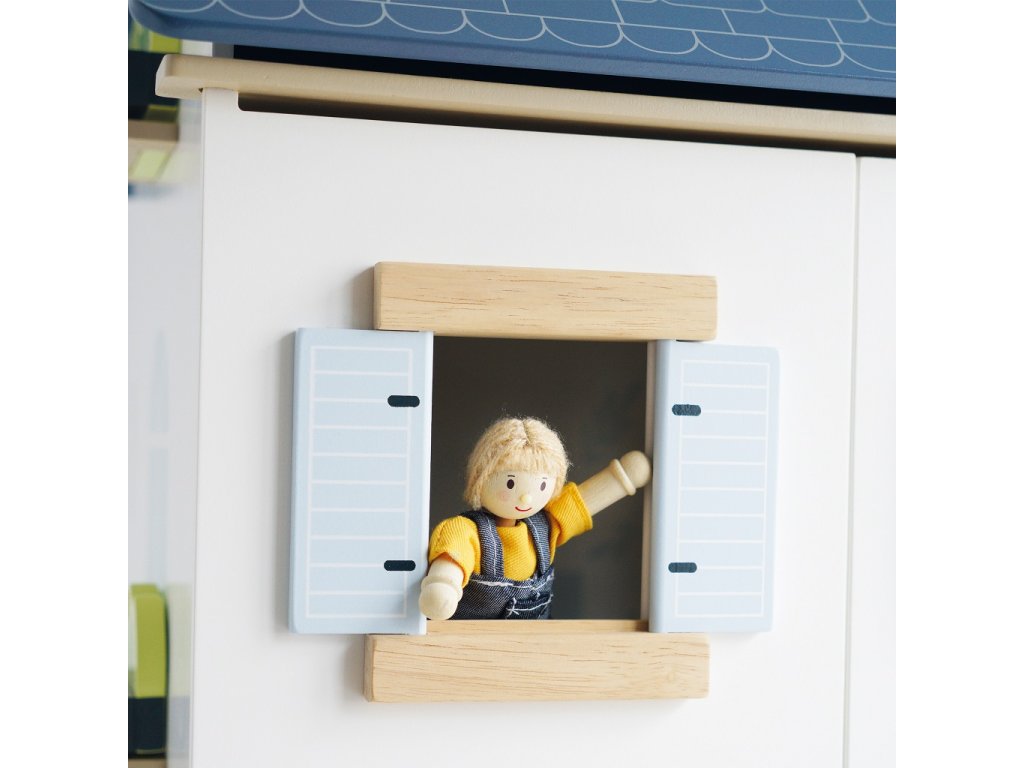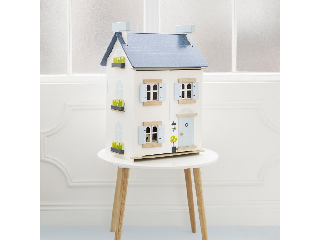 Domček pre bábiky Sky kĺbi dohromady tradičný a moderný štýl. Hračka je maľovaná tlmenou bielou, detaily má vo farbe prírodného dreva a pastelovej modrej. Bude sa vynímať v každej detskej izbe, farby sú veľmi neutrálne, pre chlapcov i dievčatá.Útulné miesto pre bábiky a figúrky, domček deti nabáda ku kreatívnej hre na role, pomôže s rozvojom koordinácie. Hra na dvoch poschodiach, otvárateľné okná a okenice, vo vnútri jemné zdobenie v štýle tapiet.Domček je dodávaný nevybavený, takže sa mladí návrhári interiéru môžu naozaj vyšantiť. Do domčeka Sky pasuje nábytok z kolekcie Daisylane od Le Toy Van, nájdete ho v našej ponuke. Hračky s účelomVšetky hračky firmy Le Toy Van sú vyrobené s cieľom - aby dlho vydržali. Dizajnované s láskou skúsenými remeselníkmi za použitia etických praktík a udržateľných materiálov, ktoré sú láskavejšie k našej planéte. Hlavné vlastnosti: vyrobené eticky z udržateľného drevatestované podľa najprísnejších štandardovmaľované netoxickými farbami na báze vodybábiky a nábytok predávaný zvlášťinšpiruje k predstavivej hretrénuje koordináciu a jemnú motoriku Daisylane kolekcia: Prestížna kolekcia domčekov pre bábiky a doplnkov firmy Le Toy Van. Pred viac ako 25 rokmi zakladateľ Georges navrhol svoj úplne prvý domček pre bábiky, stavebný kameň tejto firmy. Vyrobené eticky z udržateľných materiálov, drevené domčeky pre bábiky Daisylane sú jedinečné a nebudú detskú predstavivosť držať späť. Rodinné dedičstvo, naozajstná investícia do hrania.Dodatočné parametre