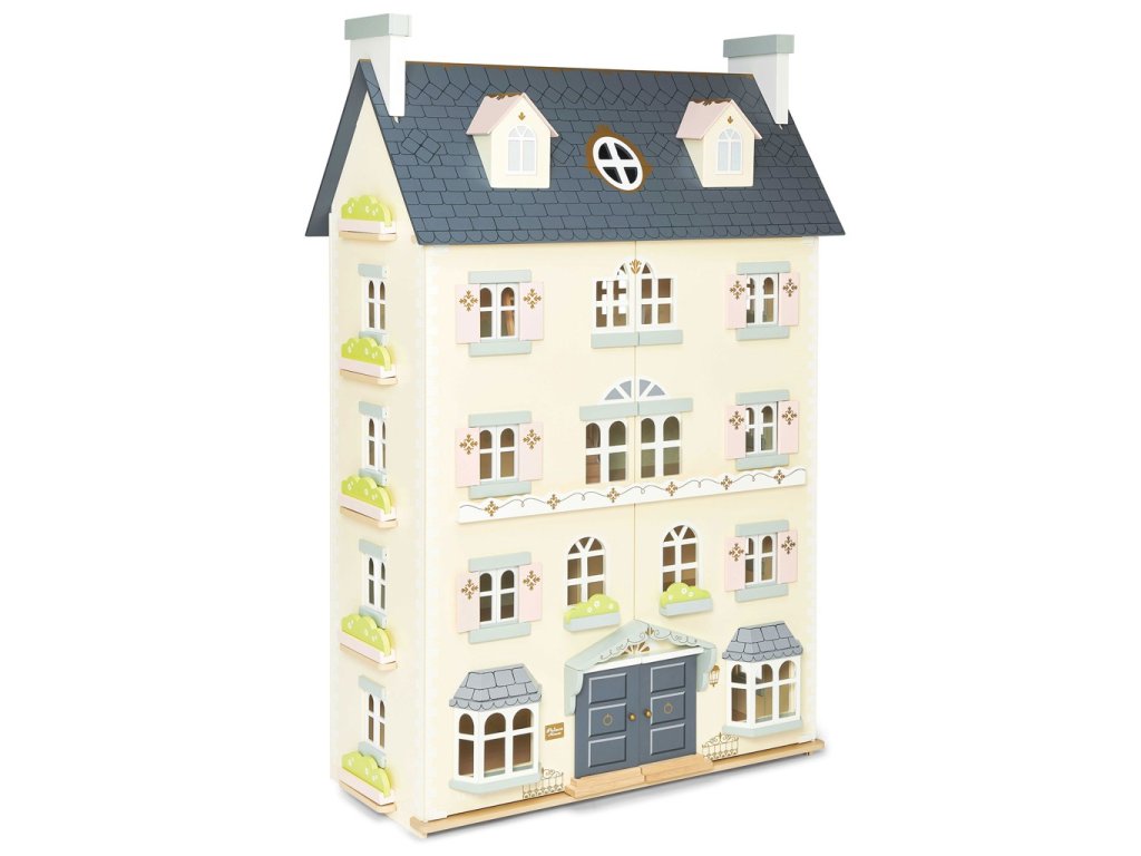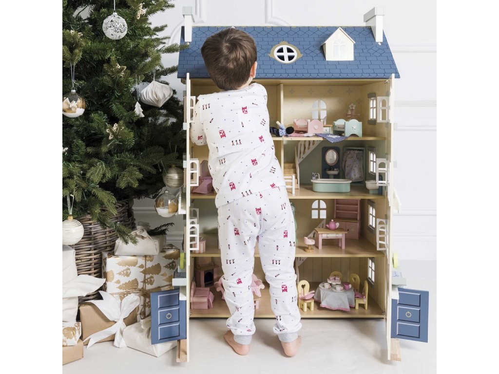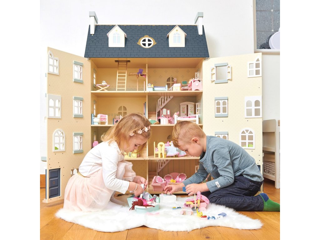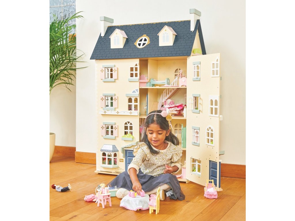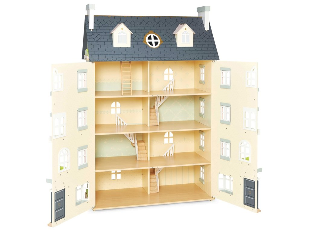 Práve ste dostali pozvánku do paláca! Tento luxusný domček je hodný vašej kráľovskej výsosti. Veľký palác pre princov a princezné je ako zo sna, je pripravený na malé i veľké dobrodružstvá. Iste rozžiari každú detskú izbičku.Uveďte deti do magického sveta predstavivosti, vysoký domček s piatimi poschodiami je maľovaný v neutrálnych tónoch, detaily sú zlaté. Na každej strane nájdete mnoho okien, niektoré z nich sú otvárateľné, rovnako ako nádherné vstupné dvere v kráľovskej modrej. Všetkých osem izieb má na stenách elegantné dekorácie, veľké schodisko siaha až na štvrté poschodie a nájdete na ňom krásne tradičné zdobenie.Oddeliteľná strecha odhalí priestrannú pôdu, na ktorú sa dostanete za pomoci rebríka. Rodinka sa v nej môže zabývať alebo ju využiť ako úložný priestor. Záleží iba na vašej predstavivosti.Výnimočná hračka plná radosti a nostalgie, s ktorou si deti užijú mnoho rokov magickej hry. Domček si môžete odovzdávať z generácie na generáciu.Všetky domy pre bábiky od Le Toy Van boli navrhnuté tímom z Veľkej Británie, vyrobené boli za použitia etických praktík a udržateľných materiálov.Domček môžete dovybaviť dreveným nábytkom, bábikami a inými doplnkami z kolekcie Daisylane. Hračky s účelomVšetky hračky firmy Le Toy Van sú vyrobené s cieľom - aby dlho vydržali. Dizajnované s láskou skúsenými remeselníkmi za použití etických praktík a udržateľných materiálov, ktoré sú láskavejšie k našej planéte. Hlavné vlastnosti: vyrobené eticky z udržateľného drevatestované podľa najprísnejších štandardovmaľované netoxickými farbami na báze vodynábytok a bábiky nie sú súčasťou baleniainšpiruje k predstavivej a dlhotrvajúcej hreasistuje v rozvoji koordinácie ruka-okogenderovo neutrálny dizajnpo rozbalení nutné zložiť podľa návodu Ocenenia hračky:Junior Design Silver Award 2019 Daisylane kolekcia: Prestížna kolekcia domčekov pre bábiky a doplnkov firmy Le Toy Van. Pred viac ako 25 rokmi zakladateľ Georges navrhol svoj úplne prvý domček pre bábiky, stavebný kameň tejto firmy. Vyrobené eticky z udržateľných materiálov, drevené domčeky pre bábiky Daisylane sú jedinečné a nebudú detskú predstavivosť držať späť. Rodinné dedičstvo, naozajstná investícia do hrania.Dodatočné parametre
