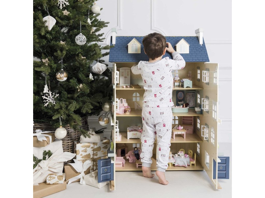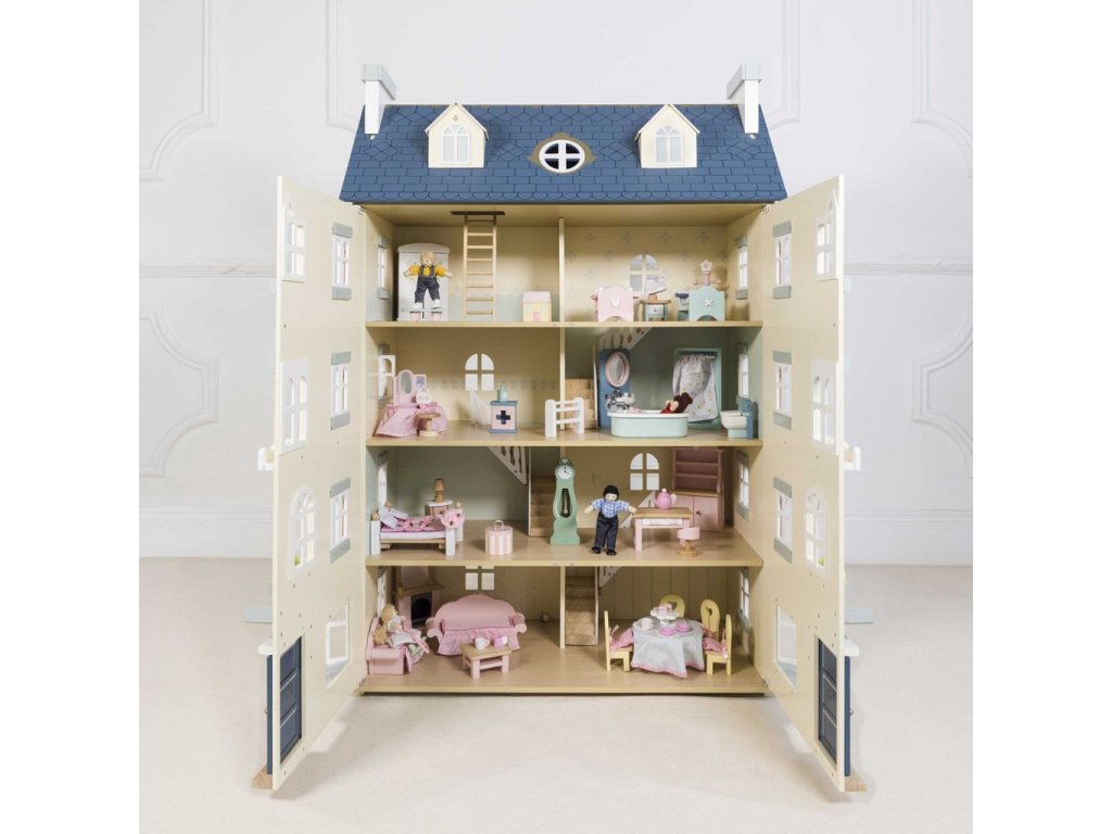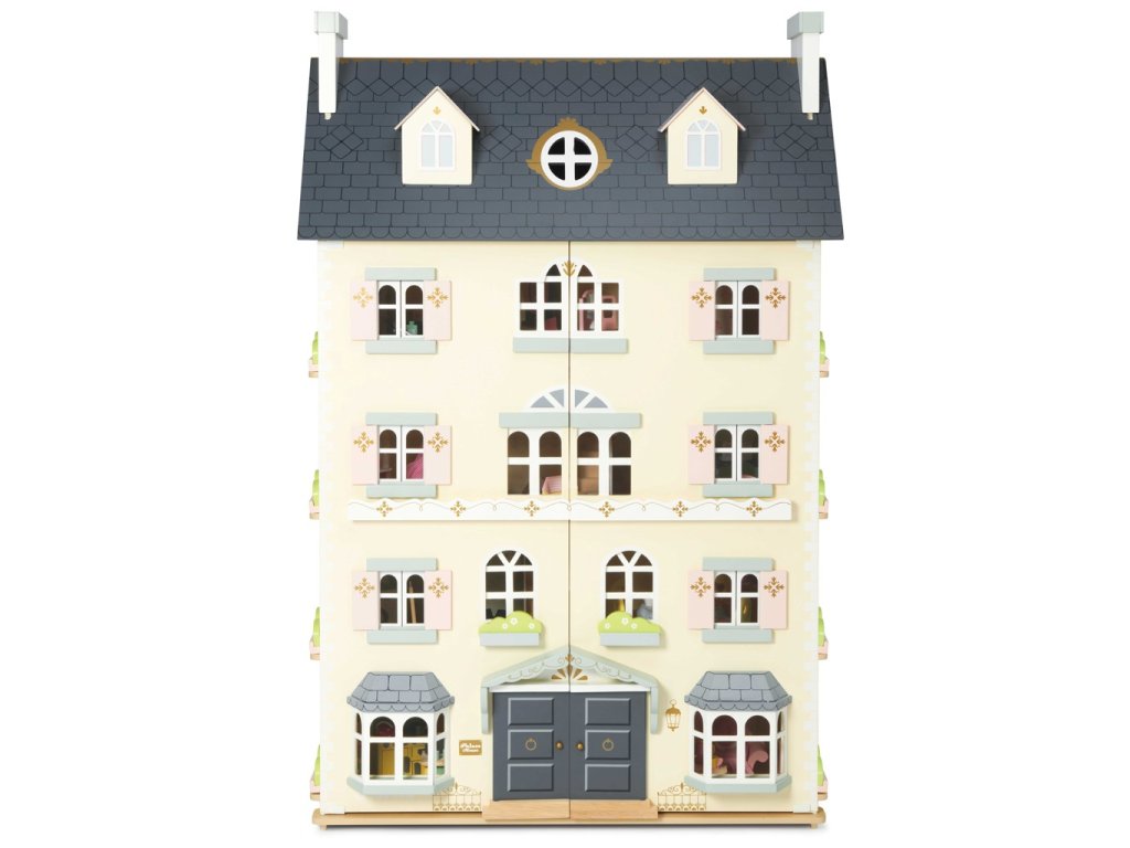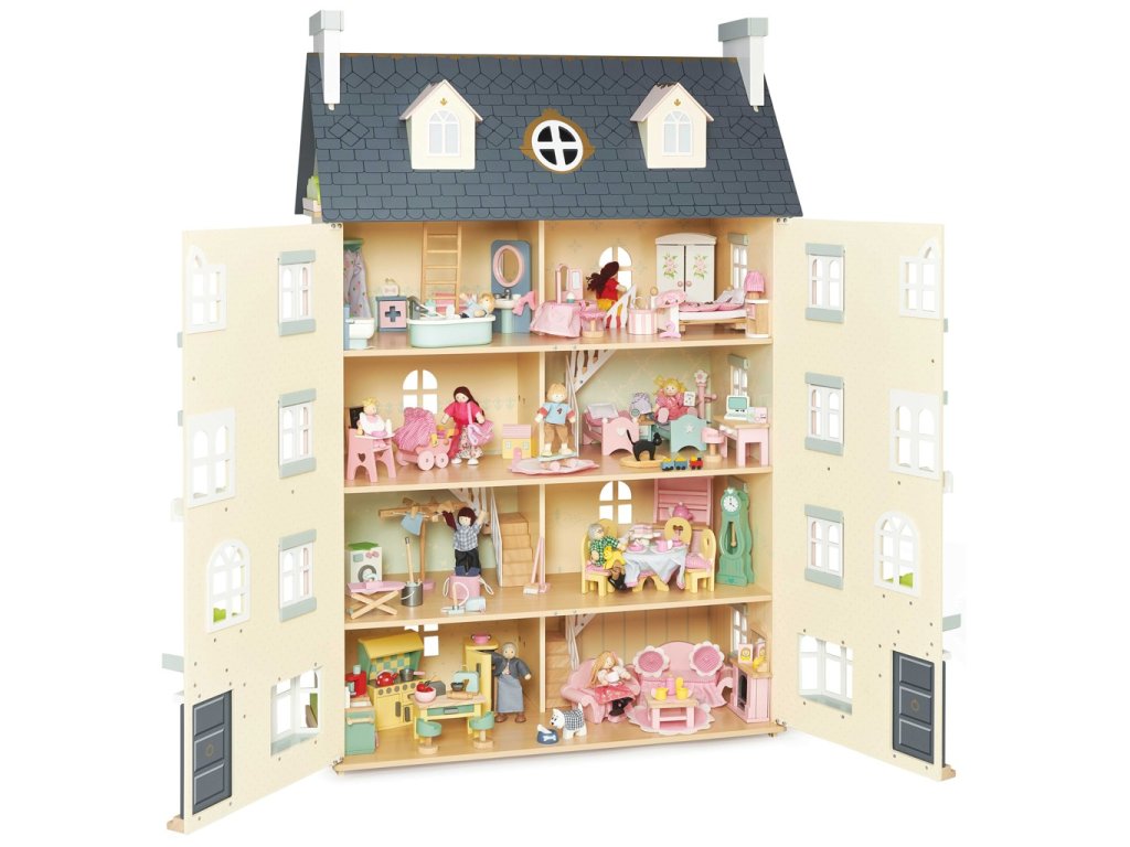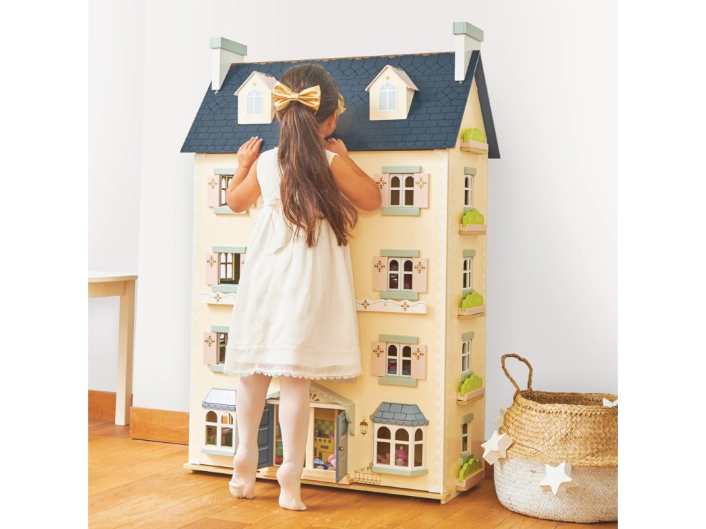 Práve ste dostali pozvánku do paláca! Tento luxusný domček je hodný vašej kráľovskej výsosti. Veľký palác pre princov a princezné je ako zo sna, je pripravený na malé i veľké dobrodružstvá. Iste rozžiari každú detskú izbičku.Uveďte deti do magického sveta predstavivosti, vysoký domček s piatimi poschodiami je maľovaný v neutrálnych tónoch, detaily sú zlaté. Na každej strane nájdete mnoho okien, niektoré z nich sú otvárateľné, rovnako ako nádherné vstupné dvere v kráľovskej modrej. Všetkých osem izieb má na stenách elegantné dekorácie, veľké schodisko siaha až na štvrté poschodie a nájdete na ňom krásne tradičné zdobenie.Oddeliteľná strecha odhalí priestrannú pôdu, na ktorú sa dostanete za pomoci rebríka. Rodinka sa v nej môže zabývať alebo ju využiť ako úložný priestor. Záleží iba na vašej predstavivosti.Výnimočná hračka plná radosti a nostalgie, s ktorou si deti užijú mnoho rokov magickej hry. Domček si môžete odovzdávať z generácie na generáciu.Všetky domy pre bábiky od Le Toy Van boli navrhnuté tímom z Veľkej Británie, vyrobené boli za použitia etických praktík a udržateľných materiálov.Domček môžete dovybaviť dreveným nábytkom, bábikami a inými doplnkami z kolekcie Daisylane. Hračky s účelomVšetky hračky firmy Le Toy Van sú vyrobené s cieľom - aby dlho vydržali. Dizajnované s láskou skúsenými remeselníkmi za použití etických praktík a udržateľných materiálov, ktoré sú láskavejšie k našej planéte. Hlavné vlastnosti: vyrobené eticky z udržateľného drevatestované podľa najprísnejších štandardovmaľované netoxickými farbami na báze vodynábytok a bábiky nie sú súčasťou baleniainšpiruje k predstavivej a dlhotrvajúcej hreasistuje v rozvoji koordinácie ruka-okogenderovo neutrálny dizajnpo rozbalení nutné zložiť podľa návodu Ocenenia hračky:Junior Design Silver Award 2019 Daisylane kolekcia: Prestížna kolekcia domčekov pre bábiky a doplnkov firmy Le Toy Van. Pred viac ako 25 rokmi zakladateľ Georges navrhol svoj úplne prvý domček pre bábiky, stavebný kameň tejto firmy. Vyrobené eticky z udržateľných materiálov, drevené domčeky pre bábiky Daisylane sú jedinečné a nebudú detskú predstavivosť držať späť. Rodinné dedičstvo, naozajstná investícia do hrania.Dodatočné parametre