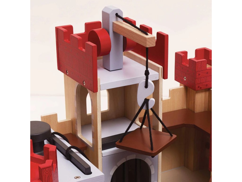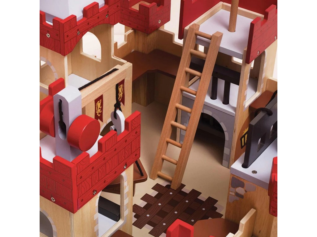 Drevený hrad Lionheart, v preklade Levie srdce, precvičí detskú motoriku a inšpiruje k predstavivej hre. Je naozaj realistický, nechýba mu funkčný padací most, kladkový navijak, vežičky a veže, rebríky, vlajky a väzenie. Vyrobené z udržateľného a odolného dreva, ručne maľované netoxickými farbami, dekorované detailnými ilustráciami. Veľkostne vhodné pre postavičky do 10 cm, tie nie sú súčasťou balenia.