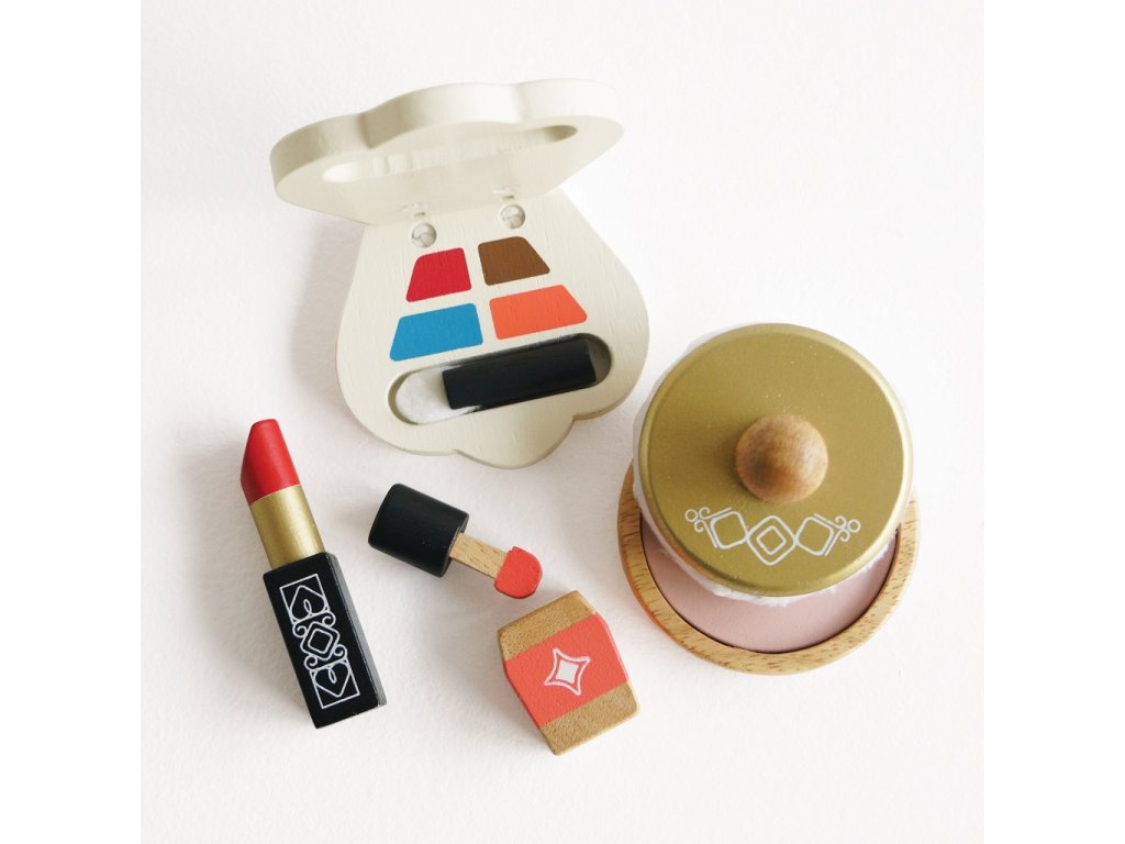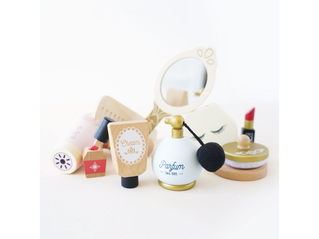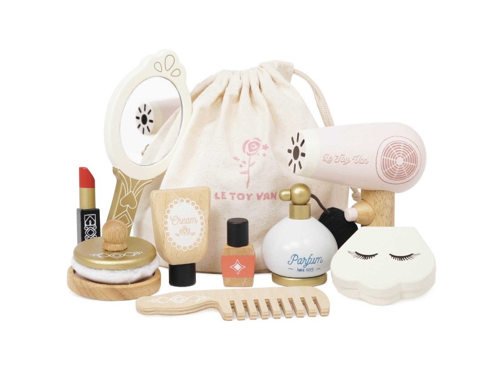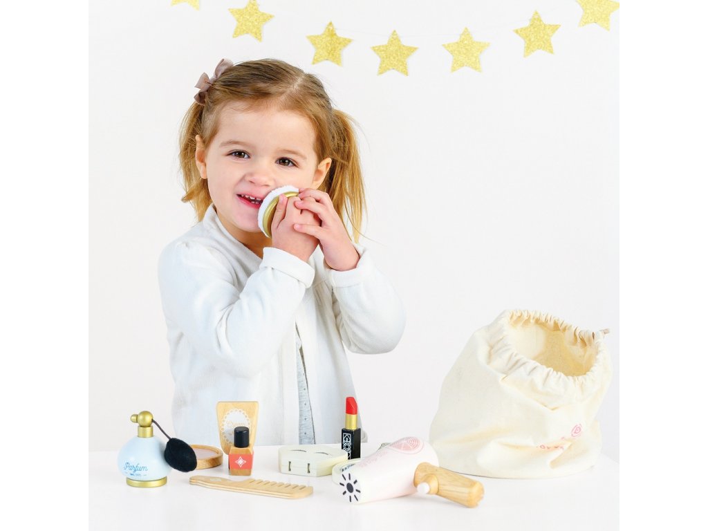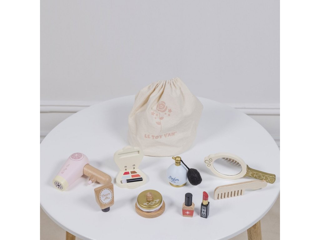 Buďte hviezdami vo vlastnej show! Kozmetickú tašku si zamilujú malé kostymérky a kostyméri, s jej obsahom vytvoria úžasný make-up a účes. Taška je vyrobená z prírodnej bavlny, jej vybavenie je z hladkého a zaobleného dreva, to všetko je ručne maľované netoxickými farbami. Malí vizážisti a vizážistky môžu začať tvoriť svoje dielo. Nechýba krém, očné tiene a aplikátor, púder a labutienka, parfum, rúž, fén, hrebeň, zrkadlo, lak na nechty a štetec, textilné vrecúško. Perfektná hračka pre hru na role je vyrobená z FSC dreva, zdobia ju farby, ktoré sú bezpečné pre deti. Hlavné vlastnosti: taška z prírodnej bavlny, drevené doplnkyFSC drevovyrobené eticky s láskoutestované podľa najprísnejších štandardovmaľované netoxickými farbami na báze vodyinšpiruje k predstavivej hre Honeybake kolekcia: Hračky v tejto kolekcii sú vhodné na objavovanie, pomôžu deťom s rozvojom predstavivosti, sociálnych a verbálnych zručností a kognitívnych funkcií. Tradičný dizajn s modernými detailmi deti určite bude baviť. Honeybake je kolekcia Le Toy Van, ktorá vyhrala najviac ocenení, a to za dizajn, kvalitu, bezpečnosť a tiež za vzdelávaciu a hernú hodnotu. Značka a certifikát FSC® (Forest Stewardship Council) zaručuje, že drevo, z ktorého bol výrobok vyrobený, nebolo vyťažené nelegálne a pochádza z lesov obhospodarovaných šetrným či prírode blízkym spôsobom, v ktorom sú dodržiavané prísne environmentálne a sociálne požiadavky. Značka FSC® na výrobku znamená, že svojim nákupom pomáhate chrániť lesy a podporujete šetrné, zodpovedné či prírode blízke hospodárenie, vďaka ktorému sú naše lesy stabilnejšie, zdravšie, majú prirodzenú druhovú skladbu a lepšie odolávajú negatívnym následkom klimatických zmien.Dodatočné parametre