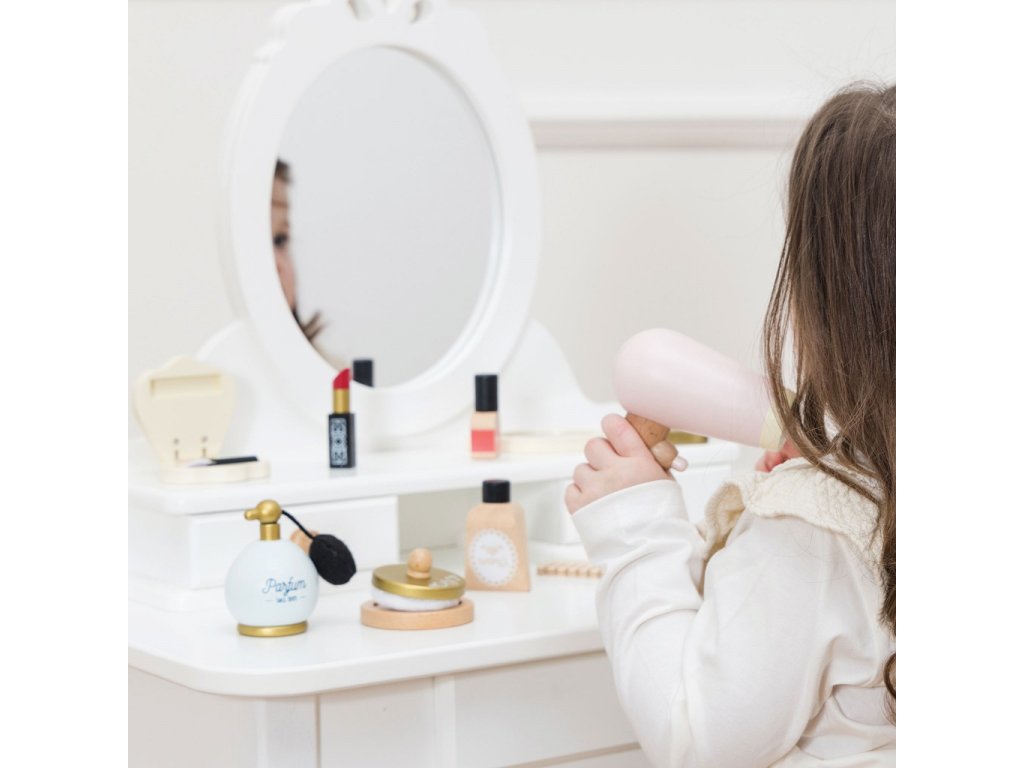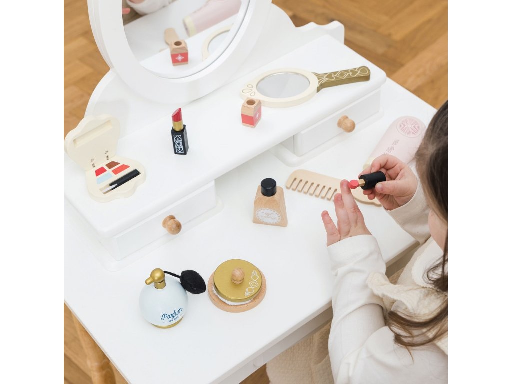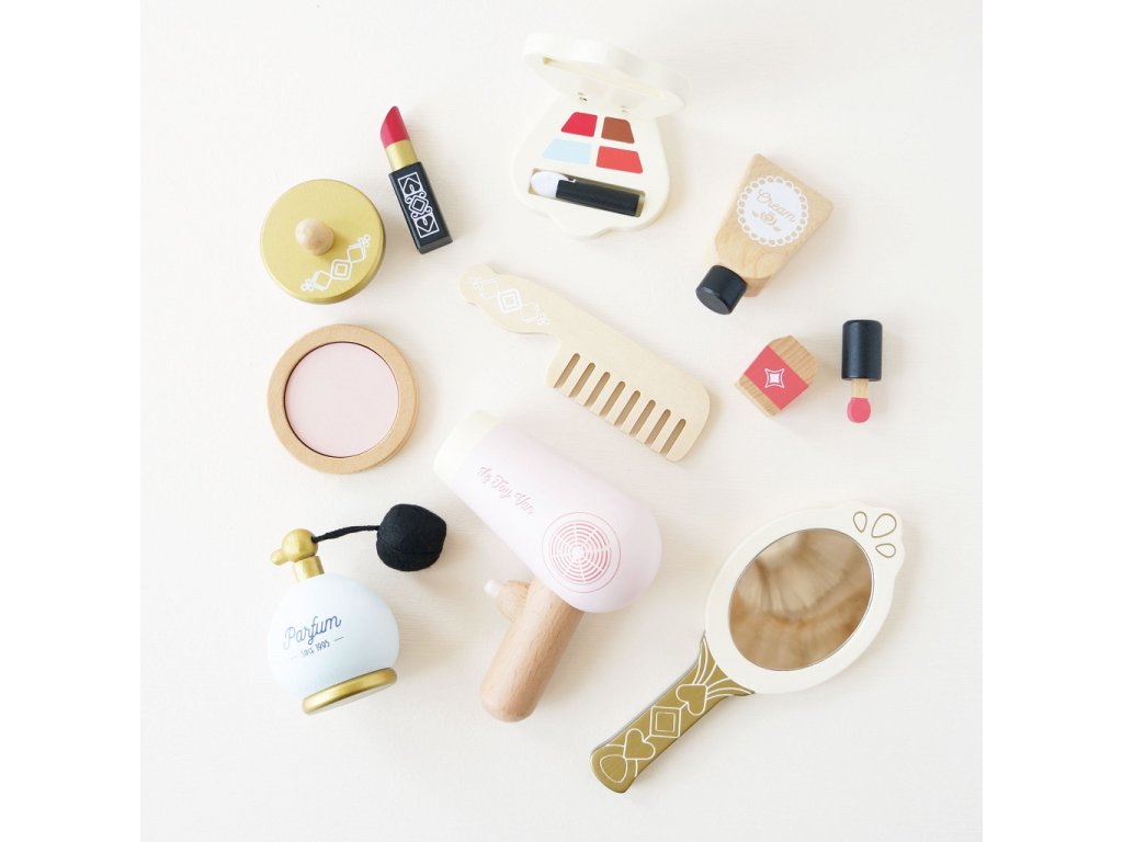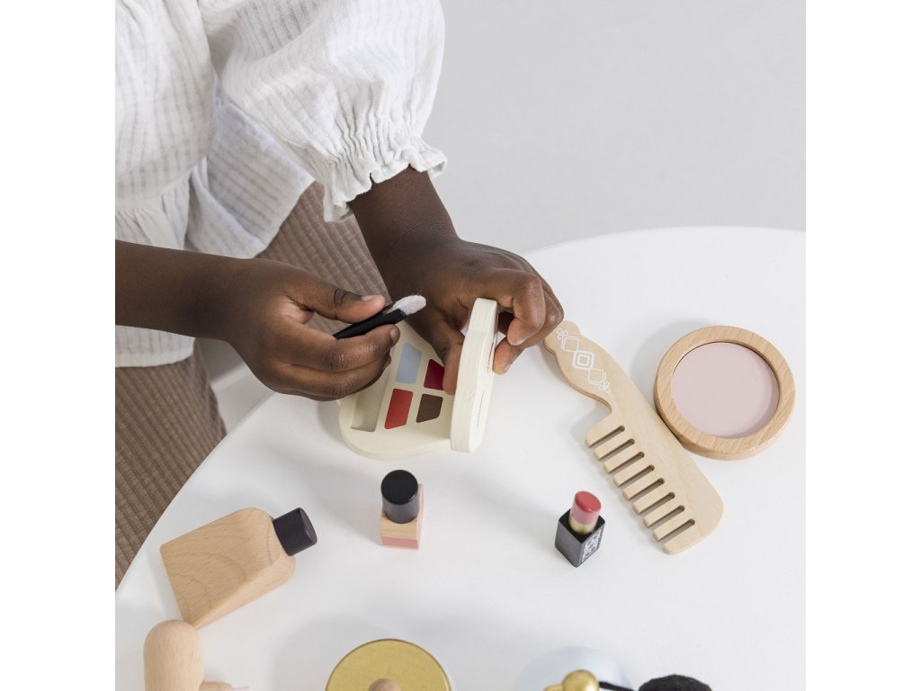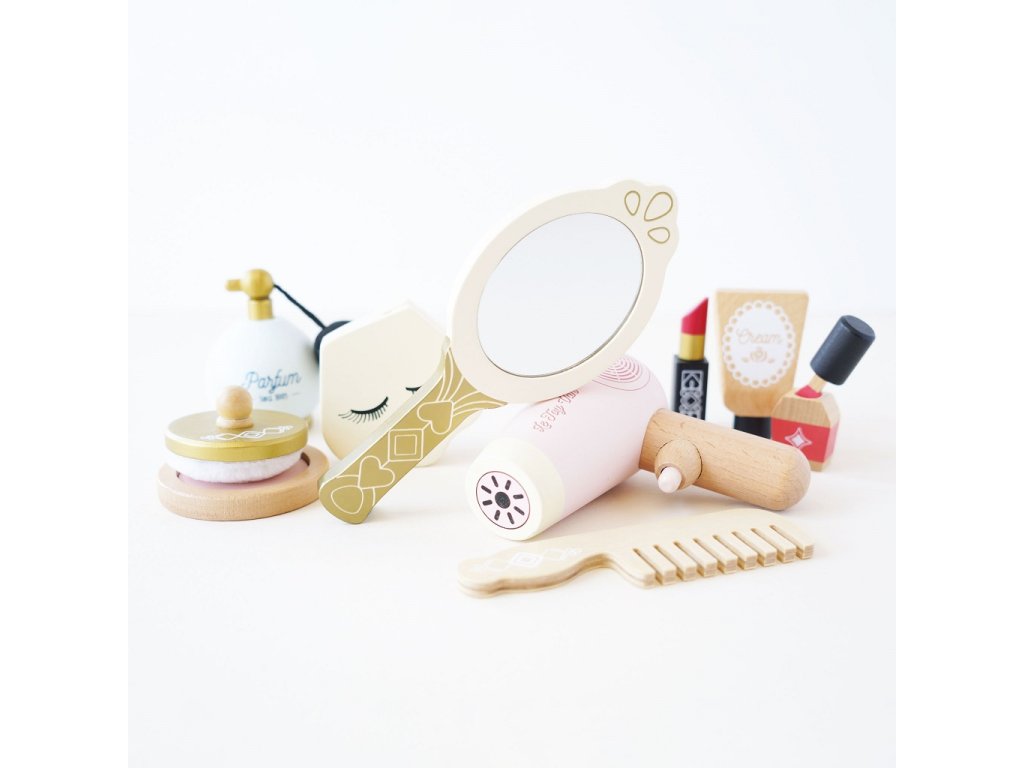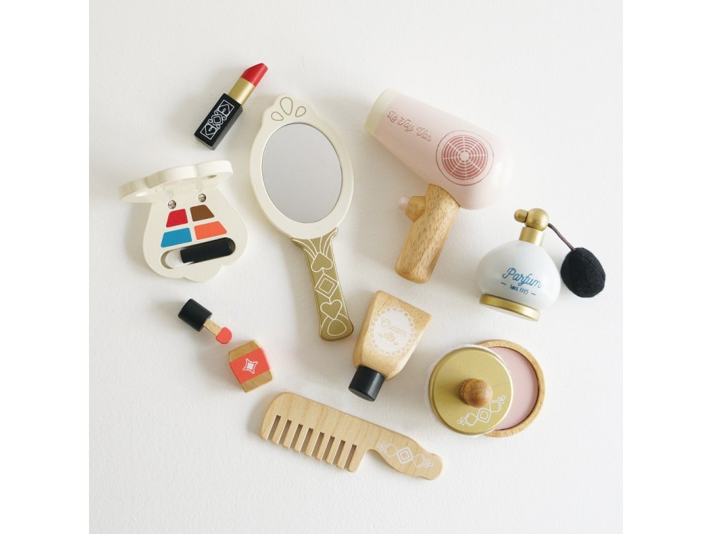 Buďte hviezdami vo vlastnej show! Kozmetickú tašku si zamilujú malé kostymérky a kostyméri, s jej obsahom vytvoria úžasný make-up a účes. Taška je vyrobená z prírodnej bavlny, jej vybavenie je z hladkého a zaobleného dreva, to všetko je ručne maľované netoxickými farbami. Malí vizážisti a vizážistky môžu začať tvoriť svoje dielo. Nechýba krém, očné tiene a aplikátor, púder a labutienka, parfum, rúž, fén, hrebeň, zrkadlo, lak na nechty a štetec, textilné vrecúško. Perfektná hračka pre hru na role je vyrobená z FSC dreva, zdobia ju farby, ktoré sú bezpečné pre deti. Hlavné vlastnosti: taška z prírodnej bavlny, drevené doplnkyFSC drevovyrobené eticky s láskoutestované podľa najprísnejších štandardovmaľované netoxickými farbami na báze vodyinšpiruje k predstavivej hre Honeybake kolekcia: Hračky v tejto kolekcii sú vhodné na objavovanie, pomôžu deťom s rozvojom predstavivosti, sociálnych a verbálnych zručností a kognitívnych funkcií. Tradičný dizajn s modernými detailmi deti určite bude baviť. Honeybake je kolekcia Le Toy Van, ktorá vyhrala najviac ocenení, a to za dizajn, kvalitu, bezpečnosť a tiež za vzdelávaciu a hernú hodnotu. Značka a certifikát FSC® (Forest Stewardship Council) zaručuje, že drevo, z ktorého bol výrobok vyrobený, nebolo vyťažené nelegálne a pochádza z lesov obhospodarovaných šetrným či prírode blízkym spôsobom, v ktorom sú dodržiavané prísne environmentálne a sociálne požiadavky. Značka FSC® na výrobku znamená, že svojim nákupom pomáhate chrániť lesy a podporujete šetrné, zodpovedné či prírode blízke hospodárenie, vďaka ktorému sú naše lesy stabilnejšie, zdravšie, majú prirodzenú druhovú skladbu a lepšie odolávajú negatívnym následkom klimatických zmien.Dodatočné parametre