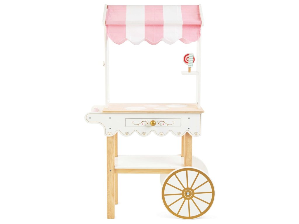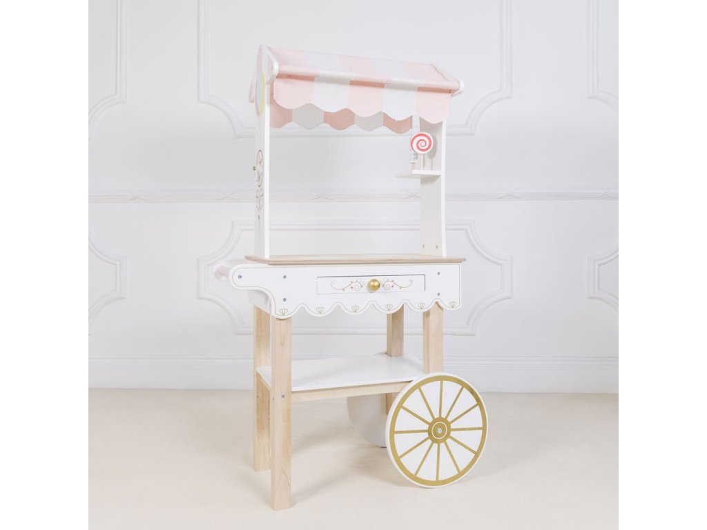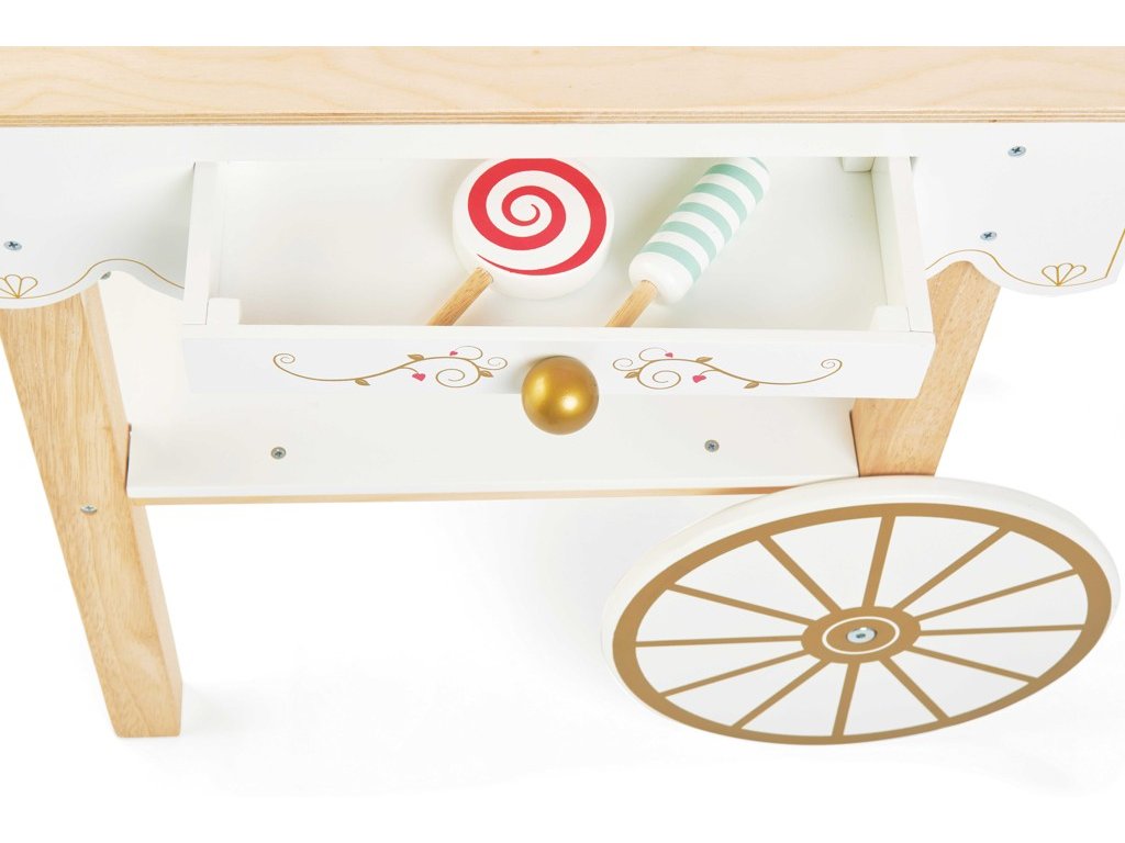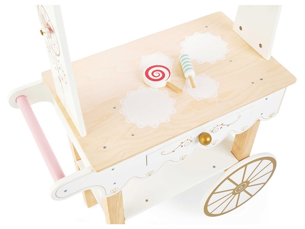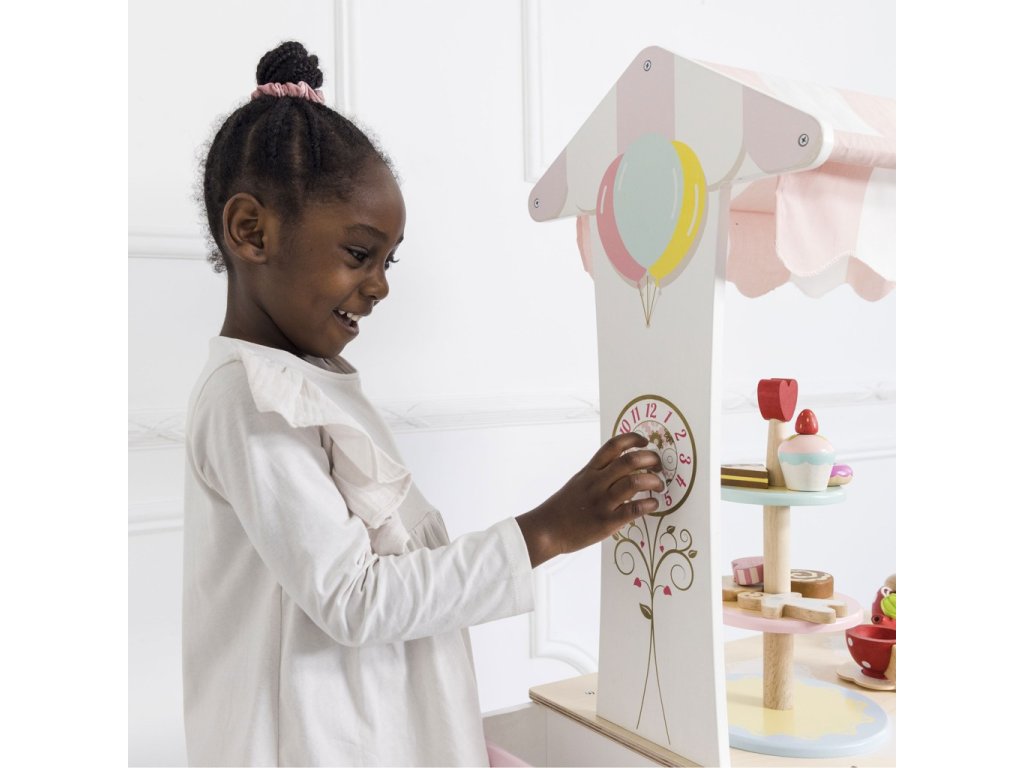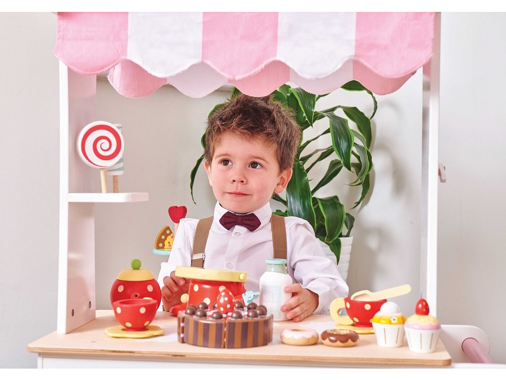 Je čas na čaj! Tento čajový vozík zaujme na prvý pohľad. Má krásny vintage dizajn, farebný baldachýn a zlatisté detaily. Vozík má tajný šuplík, do ktorého si deti môžu uložiť peniaze za predaj dobrôt. Nechýbajú dve kolieska a madlo pre jednoduché presúvanie vozíka, tiež farebné ilustrácie a ponuková tabuľka na kriedu. Sú použité netoxické farby na báze vody. Vyrobené z prírodného kaučukového dreva. Hračky s účelomVšetky hračky firmy Le Toy Van sú vyrobené s cieľom - aby dlho vydržali. Dizajnované s láskou skúsenými remeselníkmi za použití etických praktík a udržateľných materiálov, ktoré sú láskavejšie k našej planéte. Hlavné vlastnosti: vyrobené eticky z udržateľného drevatestované podľa najprísnejších štandardovmaľované netoxickými farbami na báze vodyinšpiruje k predstavivej hrevhodné pre hru na rolehračka vyhrala ocenenie Ocenenia hračky:Good Toy Guide Recommended Honeybake kolekcia: Hračky v tejto kolekcii sú vhodné na objavovanie, pomôžu deťom s rozvojom predstavivosti, sociálnych a verbálnych zručností a kognitívnych funkcií. Tradičný dizajn s modernými detailmi deti určite bude baviť. Honeybake je kolekcia Le Toy Van, ktorá vyhrala najviac ocenení, a to za dizajn, kvalitu, bezpečnosť a tiež za vzdelávaciu a hernú hodnotu.Dodatočné parametre