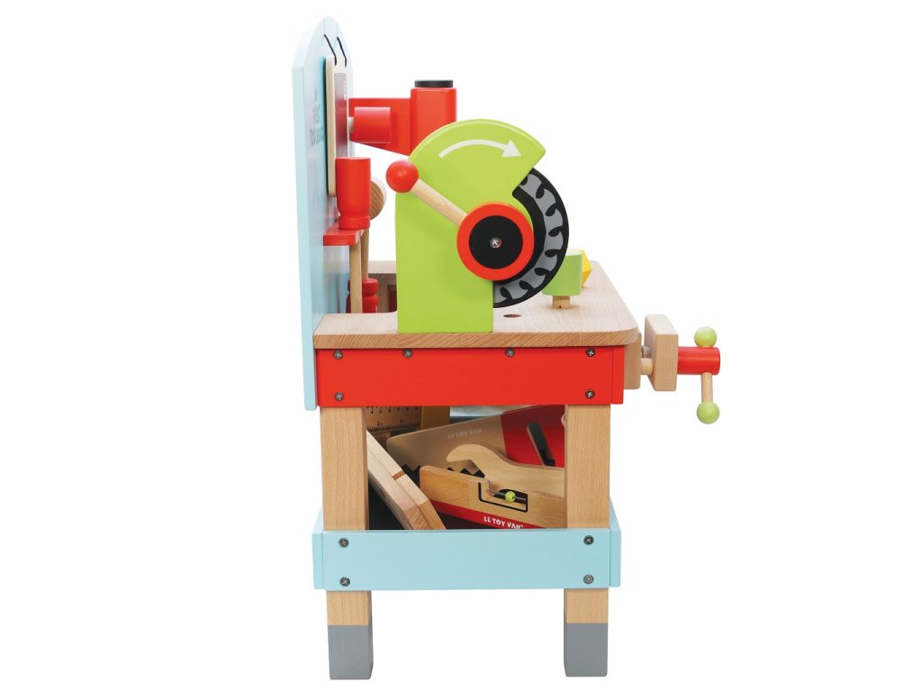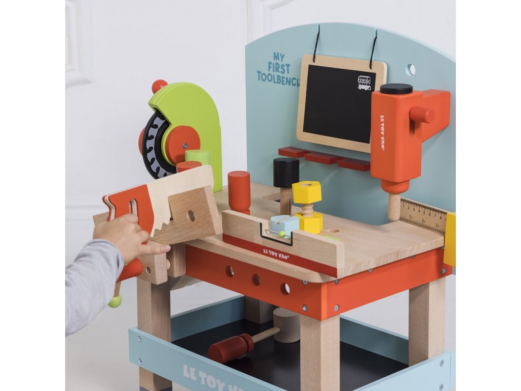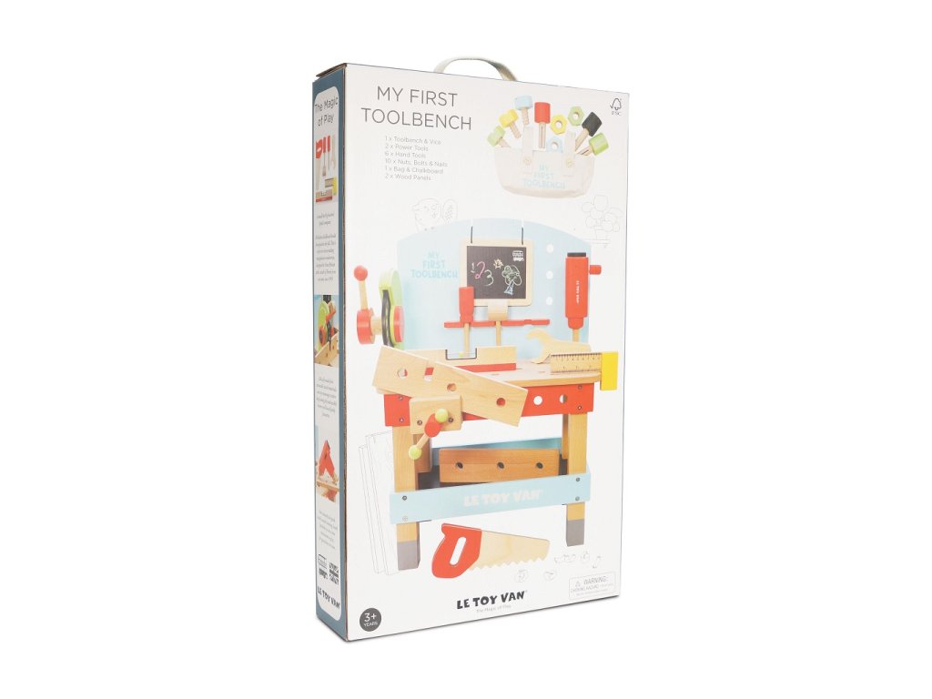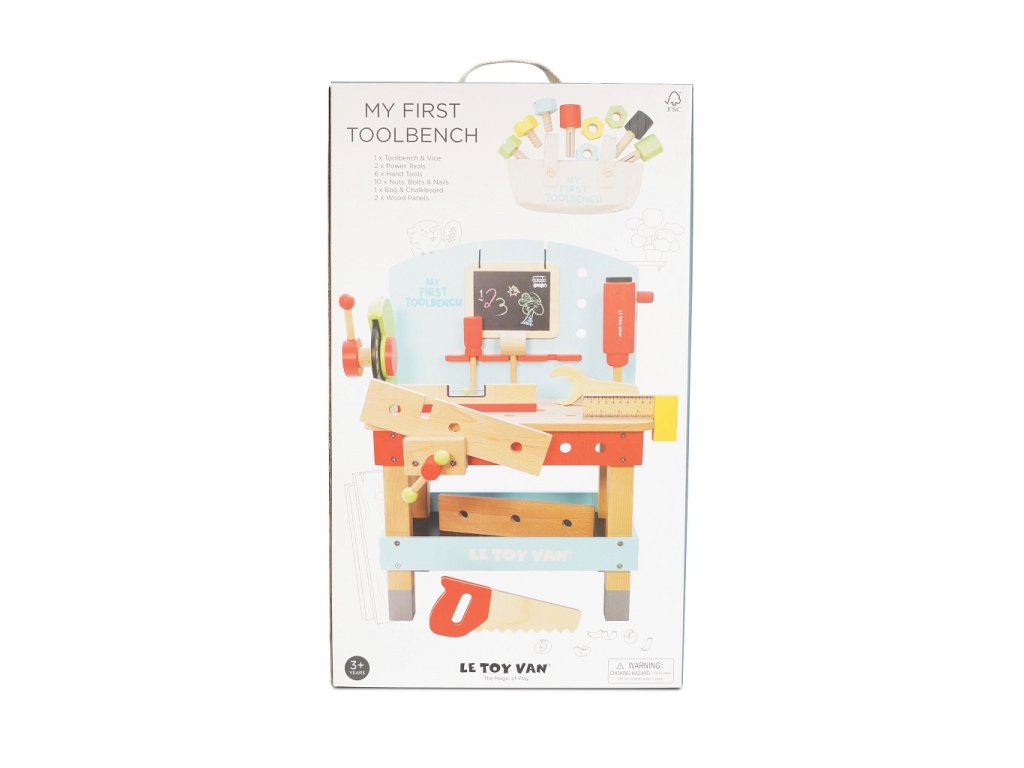 Pripravte sa na kutilskú zábavu s týmto dreveným ponkom s náradím. Obsiahla sada deti naučí veľa o práci v dielni a manuálnej zručnosti. Ponk aj doplnky sú vyrobené z pevného dreva, vydržia vám naozaj dlho. Medzi výbavou nájdete vŕtačku, cirkulárku, zverák, pílu, kladivo, skrutkovač, vodováhu, pravouhlé pravítko, kľúč a tabuľku na kriedu. Deti si pri hraní na role užijú mnoho zábavy. Ponk má naspodku policu, ktorá slúži ako úložný priestor. Do dvoch perforovaných drevených doštičiek môžu naskrutkovať skrutky aj s matkami. Hračky s účelomVšetky hračky firmy Le Toy Van sú vyrobené s cieľom - aby dlho vydržali. Dizajnované s láskou skúsenými remeselníkmi za použití etických praktík a udržateľných materiálov, ktoré sú láskavejšie k našej planéte. Hlavné vlastnosti: vyrobené eticky z udržateľného FSC drevatestované podľa najprísnejších štandardovmaľované netoxickými farbami na báze vodyinšpiruje k predstavivej hrerozvíja kognitívne zručnosti Ocenenia hračky:Good Toy Guide Approved Autá & stavby: Stavebná a motorická kolekcia Le Toy Van, ktorá vyhrala mnoho ocenení. Presnejšie zatiaľ cez 15 ocenení za predstavivé autá a stavebné hračky. Podporujú detskú fantáziu, sú ideálne k predstavivej hre, rozvíjajú kreativitu a hravo zlepšujú detskú koordináciu ruka‑oko. Značka a certifikát FSC® (Forest Stewardship Council) zaručuje, že drevo, z ktorého bol výrobok vyrobený, nebolo vyťažené nelegálne a pochádza z lesov obhospodarovaných šetrným či prírode blízkym spôsobom, v ktorom sú dodržiavané prísne environmentálne a sociálne požiadavky. Značka FSC® na výrobku znamená, že svojim nákupom pomáhate chrániť lesy a podporujete šetrné, zodpovedné či prírode blízke hospodárenie, vďaka ktorému sú naše lesy stabilnejšie, zdravšie, majú prirodzenú druhovú skladbu a lepšie odolávajú negatívnym následkom klimatických zmien.Dodatočné parametre