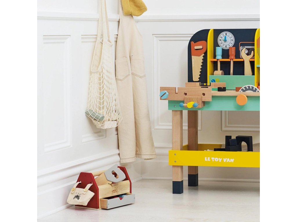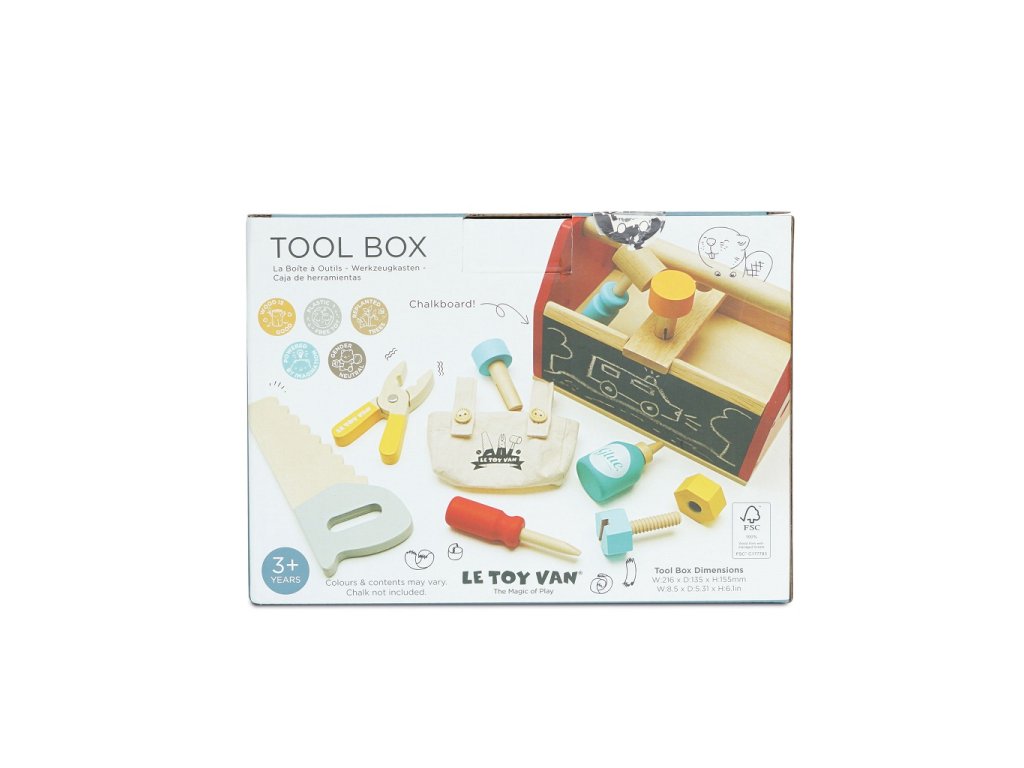 Zabavte mladú myseľ a ruky s touto tradičnou hračkou. Drevené náradie v debničke pre chlapcov aj dievčatá je perfektné pre tréning motoriky počas predstavivej hry. V balení nájdete debničku, textilnú tašku, kombinačky, skrutkovač, perforovanú doštičku, dva klince, skrutku s maticou, drevené lepidlo a kladivo. Vyrobené z udržateľného dreva, maľované netoxickými farbami na báze vody. Hračky s účelomVšetky hračky firmy Le Toy Van sú vyrobené s cieľom - aby dlho vydržali. Dizajnované s láskou skúsenými remeselníkmi za použití etických praktík a udržateľných materiálov, ktoré sú láskavejšie k našej planéte. Hlavné vlastnosti: vyrobené eticky z udržateľného drevatestované podľa najprísnejších štandardovmaľované netoxickými farbami na báze vodyinšpiruje k predstavivej hrerozvíja kognitívne zručnosti Ocenenia hračky:Junior Design Awards Shortlist 2018Good Toy Guide Recommended Autá & stavby: Stavebná a motorická kolekcia Le Toy Van, ktorá vyhrala mnoho ocenení. Presnejšie zatiaľ cez 15 ocenení za predstavivé autá a stavebné hračky. Podporujú detskú fantáziu, sú ideálne k predstavivej hre, rozvíjajú kreativitu a hravo zlepšujú detskú koordináciu ruka‑oko. Značka a certifikát FSC® (Forest Stewardship Council) zaručuje, že drevo, z ktorého bol výrobok vyrobený, nebolo vyťažené nelegálne a pochádza z lesov obhospodarovaných šetrným či prírode blízkym spôsobom, v ktorom sú dodržiavané prísne environmentálne a sociálne požiadavky. Značka FSC® na výrobku znamená, že svojim nákupom pomáhate chrániť lesy a podporujete šetrné, zodpovedné či prírode blízke hospodárenie, vďaka ktorému sú naše lesy stabilnejšie, zdravšie, majú prirodzenú druhovú skladbu a lepšie odolávajú negatívnym následkom klimatických zmien.Dodatočné parametre