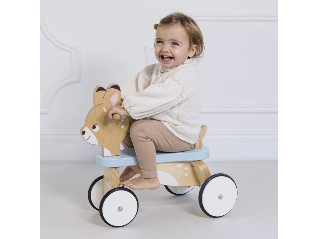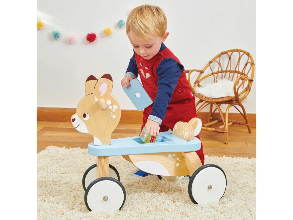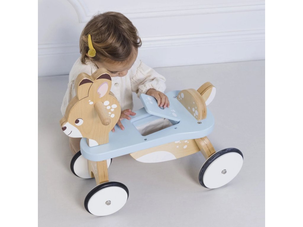 Drevené odrážadlo jeleniatko deti vezme na nezabudnuteľnú jazdu plnú zábavy. Pútavý dizajn a pevná konštrukcia, nechýba ani skrytý úložný priestor na sedadle. Deti si v ňom môžu ukryť svoje poklady alebo desiatu. Maľované pastelovými farbami, vyrobené z udržateľného kaučukového dreva. Vďaka odrážadlu budú mať deti každodenný pohyb a budú silnejšie, precvičia si koordináciu a rovnováhu. Hračky s účelomVšetky hračky firmy Le Toy Van sú vyrobené s cieľom - aby dlho vydržali. Dizajnované s láskou skúsenými remeselníkmi za použití etických praktík a udržateľných materiálov, ktoré sú láskavejšie k našej planéte. Hlavné vlastnosti: vyrobené eticky z udržateľného drevatestované podľa najprísnejších štandardovmaľované netoxickými farbami na báze vodyinšpiruje k predstavivej hrerozvíja kognitívne zručnosti Petilou kolekcia: Kolekcia pre dojčatá a batoľatá od Le Toy Van obsahuje hlavne hmatové hračky, ktoré majú najmenším poslúžiť aj ako učebné prostriedky. Kolekcia je inšpirovaná prírodou okolo nás a je navrhnutá tak, aby rozvíjala zmysly detí pomocou rozdielnych zvukov, textúr, tvarov a hmotností. Deti tak od malička zapoja všetky svoje zmysly. V kolekcii nájdete napríklad skladačky, vkladačky, chodítka, …Dodatočné parametre