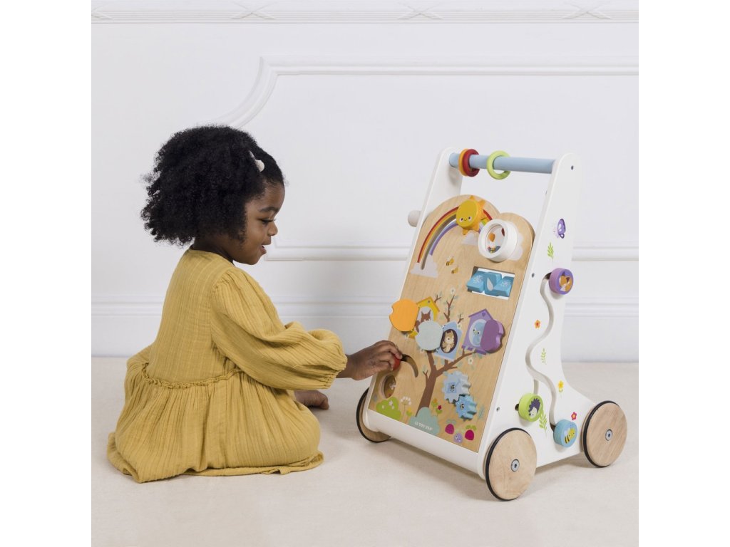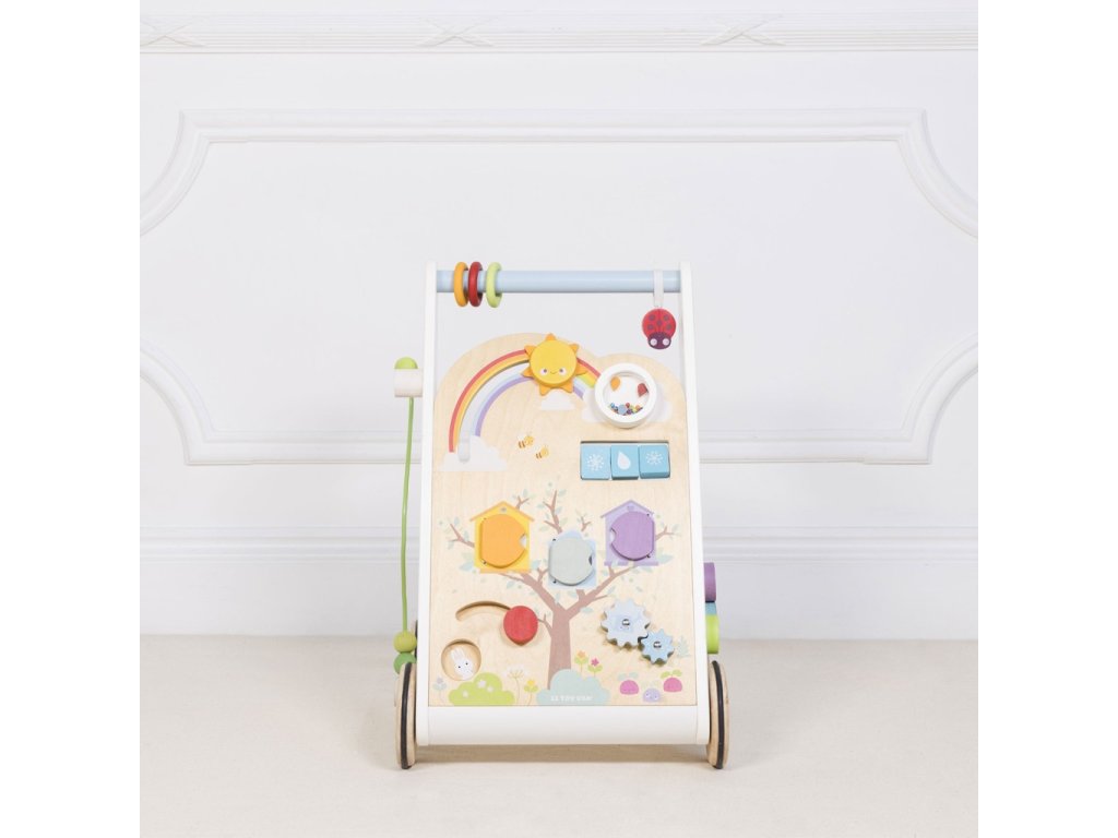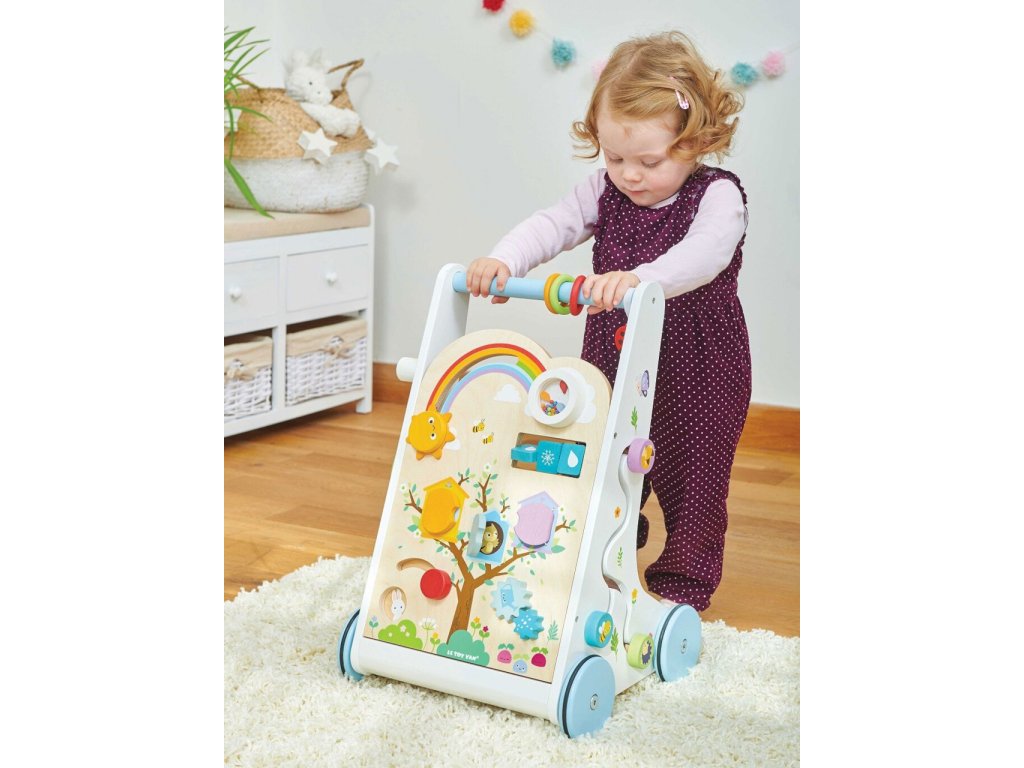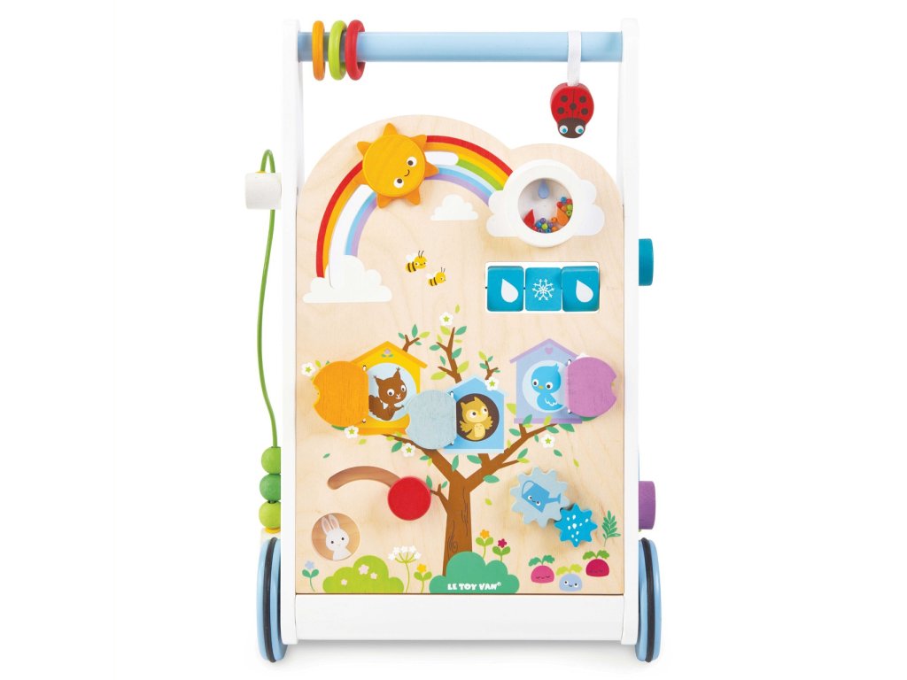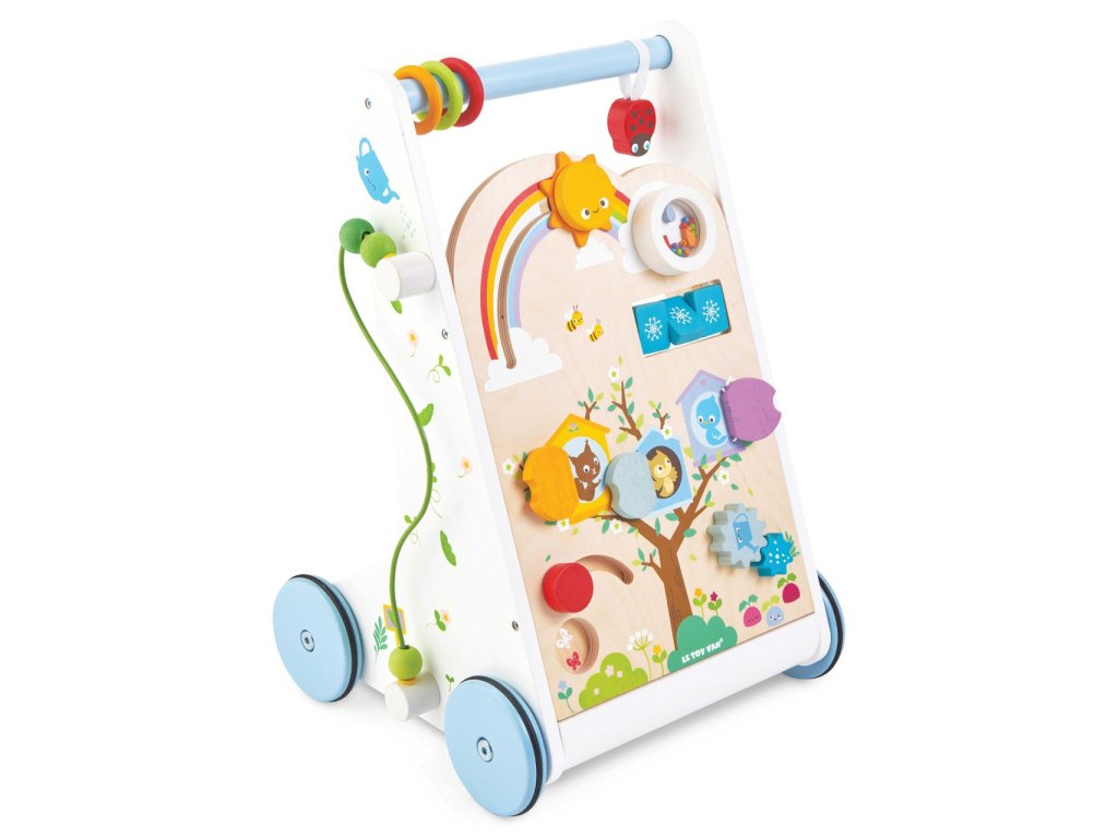 Drevené chodítko s aktivitami bude perfektným darčekom pre deti, ktoré začínajú chodiť. Podporí ich a dodá im odvahu pri prvých krôčikoch. Krásna hračka v motíve prírody, s ilustráciami lesných zvieratiek a ďalšími roztomilými detailmi. Senzorická hračka s 12 aktivitami deti podporí v predstavivej hre. Je vyrobená z odolného a udržateľného kaučukového dreva, maľovaná netoxickými farbami na báze vody. Hračky s účelomVšetky hračky firmy Le Toy Van sú vyrobené s cieľom - aby dlho vydržali. Dizajnované s láskou skúsenými remeselníkmi za použití etických praktík a udržateľných materiálov, ktoré sú láskavejšie k našej planéte. Hlavné vlastnosti: vyrobené eticky z udržateľného drevatestované podľa najprísnejších štandardovmaľované netoxickými farbami na báze vodyinšpiruje k predstavivej hrerozvíja kognitívne zručnostimultifunkčná hračka Petilou kolekcia: Kolekcia pre dojčatá a batoľatá od Le Toy Van obsahuje hlavne hmatové hračky, ktoré majú najmenším poslúžiť aj ako učebné prostriedky. Kolekcia je inšpirovaná prírodou okolo nás a je navrhnutá tak, aby rozvíjala zmysly detí pomocou rozdielnych zvukov, textúr, tvarov a hmotností. Deti tak od malička zapoja všetky svoje zmysly. V kolekcii nájdete napríklad skladačky, vkladačky, chodítka, …Dodatočné parametre