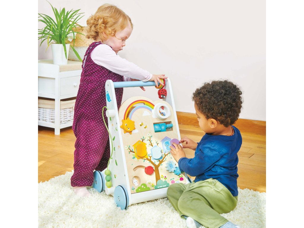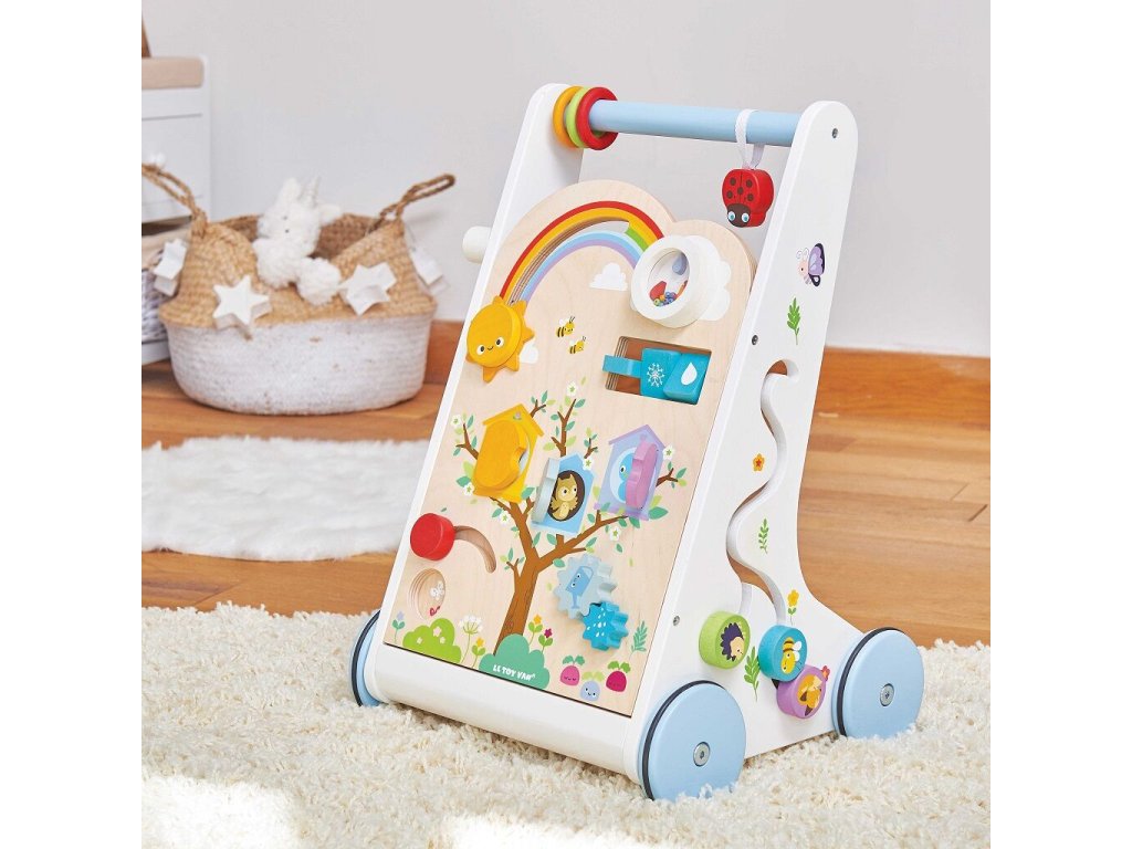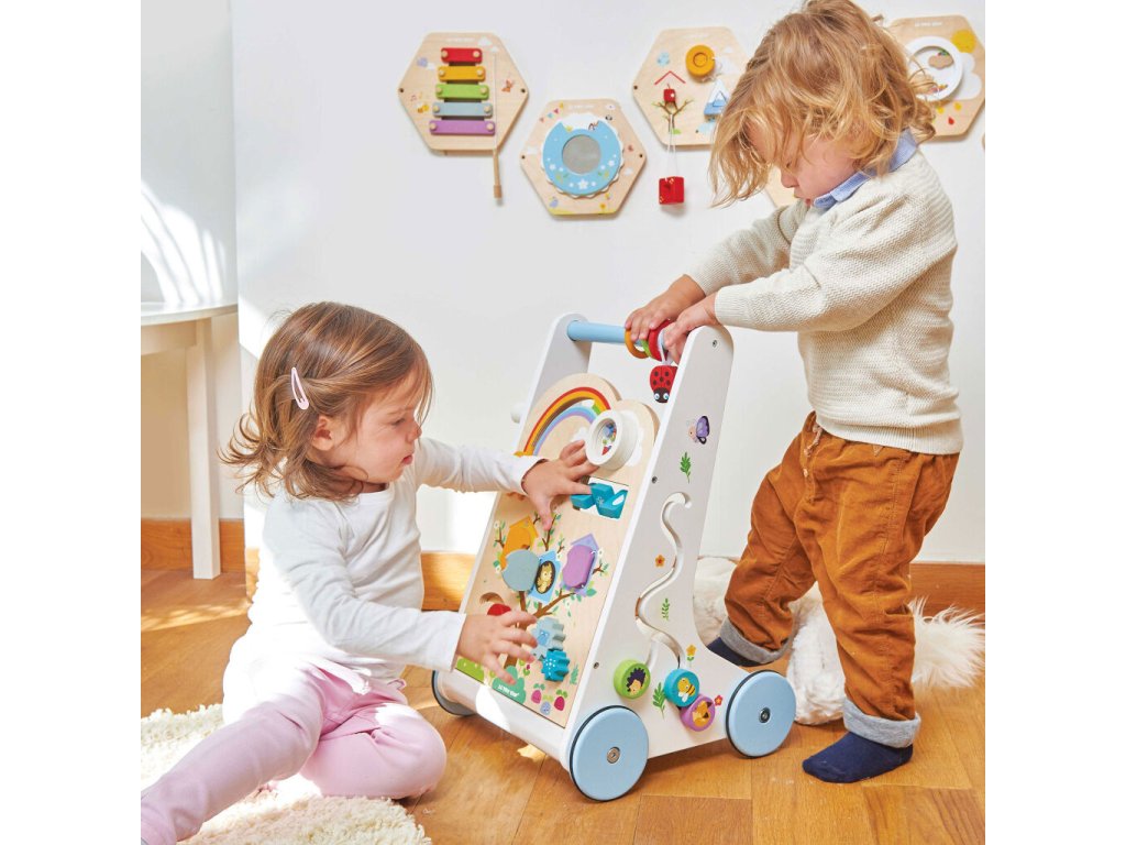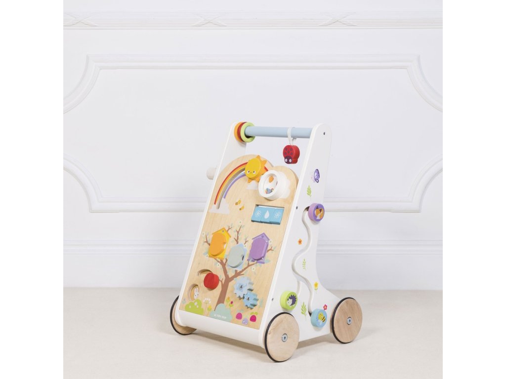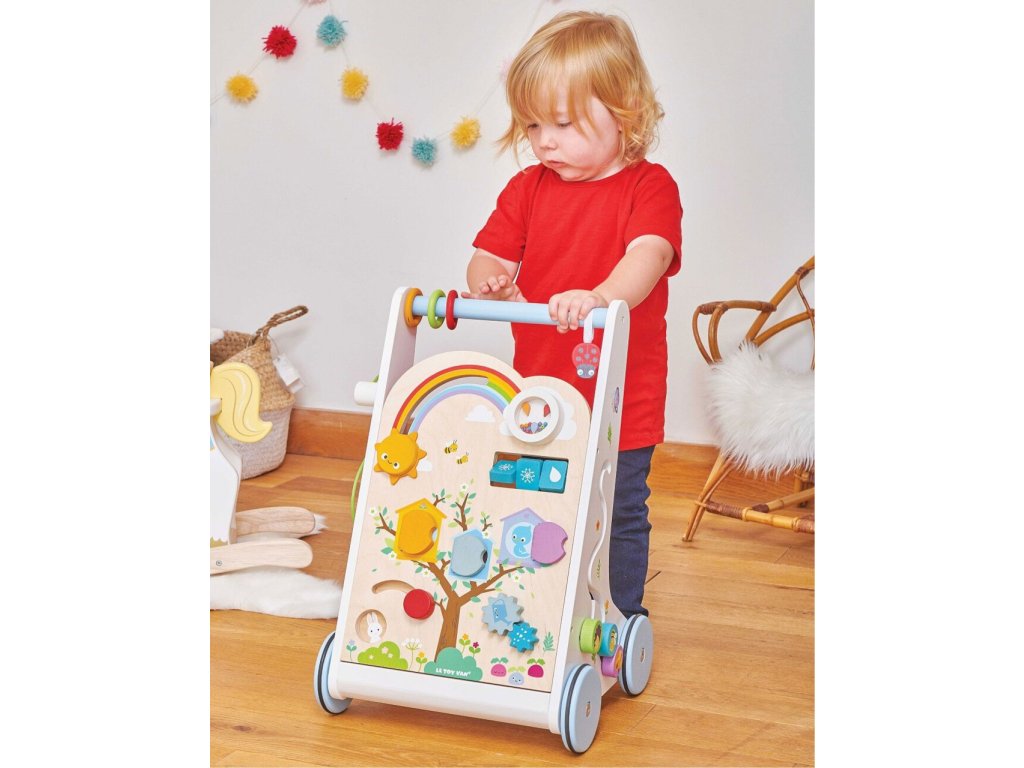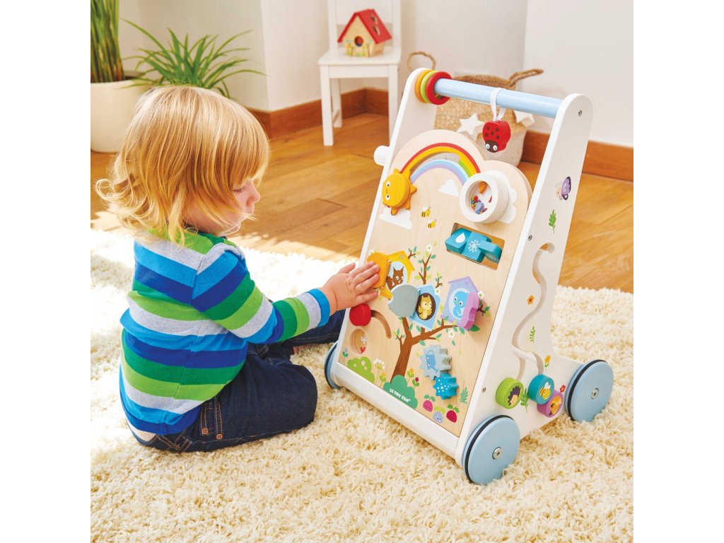 Drevené chodítko s aktivitami bude perfektným darčekom pre deti, ktoré začínajú chodiť. Podporí ich a dodá im odvahu pri prvých krôčikoch. Krásna hračka v motíve prírody, s ilustráciami lesných zvieratiek a ďalšími roztomilými detailmi. Senzorická hračka s 12 aktivitami deti podporí v predstavivej hre. Je vyrobená z odolného a udržateľného kaučukového dreva, maľovaná netoxickými farbami na báze vody. Hračky s účelomVšetky hračky firmy Le Toy Van sú vyrobené s cieľom - aby dlho vydržali. Dizajnované s láskou skúsenými remeselníkmi za použití etických praktík a udržateľných materiálov, ktoré sú láskavejšie k našej planéte. Hlavné vlastnosti: vyrobené eticky z udržateľného drevatestované podľa najprísnejších štandardovmaľované netoxickými farbami na báze vodyinšpiruje k predstavivej hrerozvíja kognitívne zručnostimultifunkčná hračka Petilou kolekcia: Kolekcia pre dojčatá a batoľatá od Le Toy Van obsahuje hlavne hmatové hračky, ktoré majú najmenším poslúžiť aj ako učebné prostriedky. Kolekcia je inšpirovaná prírodou okolo nás a je navrhnutá tak, aby rozvíjala zmysly detí pomocou rozdielnych zvukov, textúr, tvarov a hmotností. Deti tak od malička zapoja všetky svoje zmysly. V kolekcii nájdete napríklad skladačky, vkladačky, chodítka, …Dodatočné parametre
