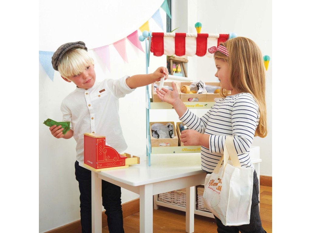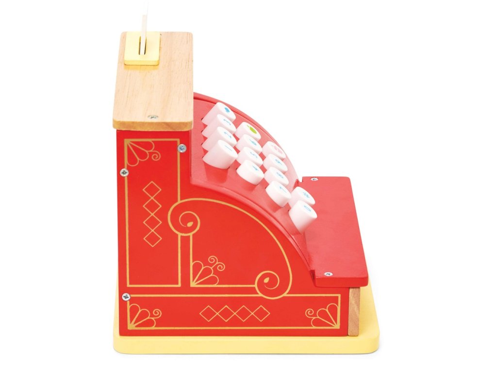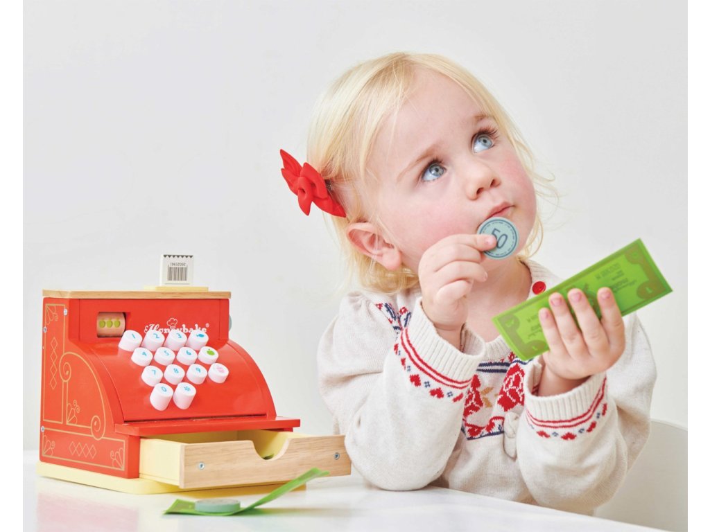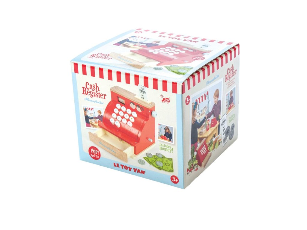 Táto roztomilá pokladňa v retro štýle deti naučí počítať a poznávať číslice zábavnou formou. Jej doplnky sú drevená účtenka, papierové bankovky a drevené mince, šuplík pokladne je možné jednoducho otvoriť. Hračka má vintage design, pestro červenú farbu a zlatisté detaily. Táto edukatívna hračka je vyrobená z odolného a udržateľného dreva, vydrží vám naozaj dlho. Hračky s účelomVšetky hračky firmy Le Toy Van sú vyrobené s cieľom - aby dlho vydržali. Dizajnované s láskou skúsenými remeselníkmi za použití etických praktík a udržateľných materiálov, ktoré sú láskavejšie k našej planéte. Hlavné vlastnosti: vyrobené eticky z udržateľného drevatestované podľa najprísnejších štandardovmaľované netoxickými farbami na báze vodyinšpiruje k predstavivej hrerozvíja kognitívne zručnosti Honeybake kolekcia: Hračky v tejto kolekcii sú vhodné na objavovanie, pomôžu deťom s rozvojom predstavivosti, sociálnych a verbálnych zručností a kognitívnych funkcií. Tradičný dizajn s modernými detailmi deti určite bude baviť. Honeybake je kolekcia Le Toy Van, ktorá vyhrala najviac ocenení, a to za dizajn, kvalitu, bezpečnosť a tiež za vzdelávaciu a hernú hodnotu.Dodatočné parametre