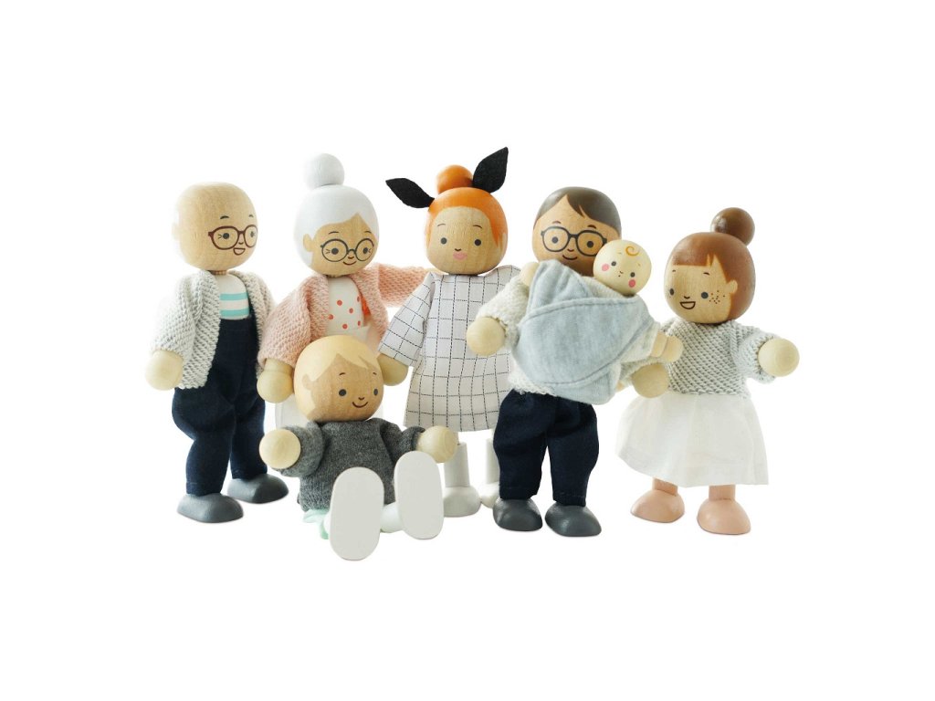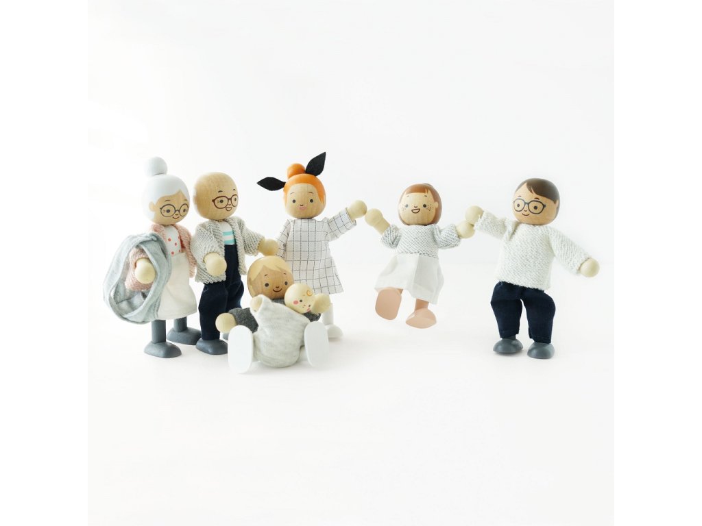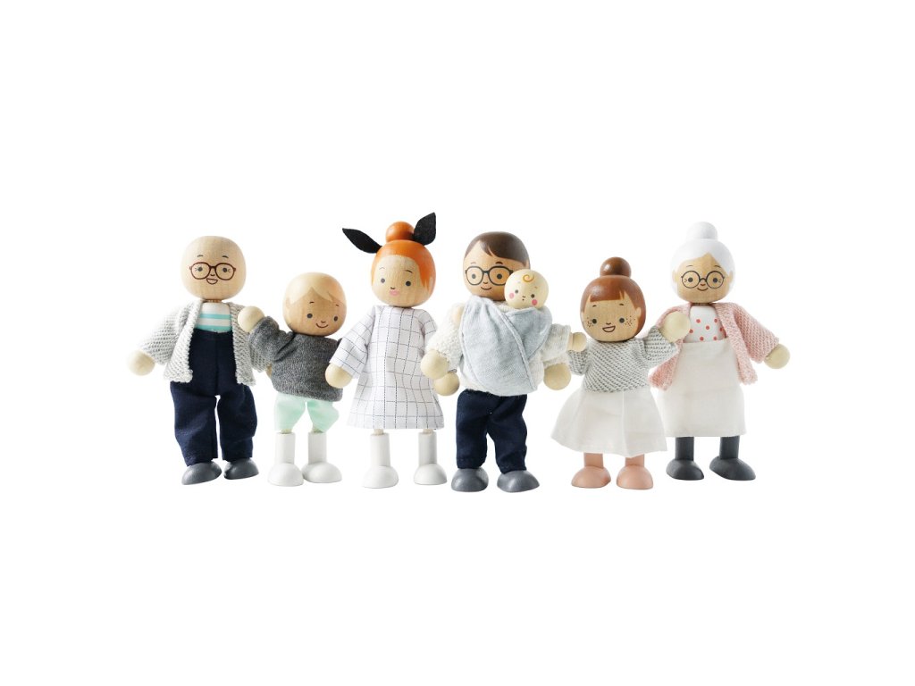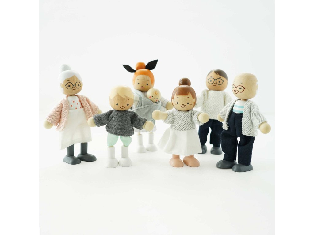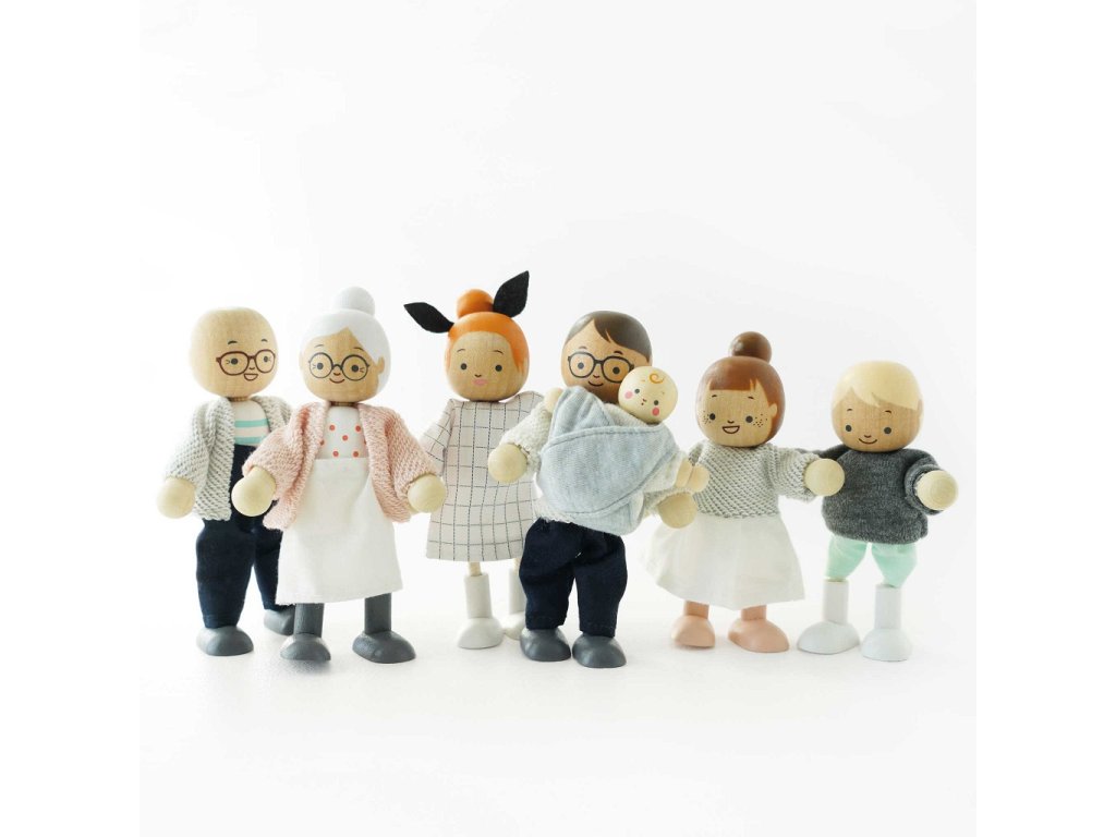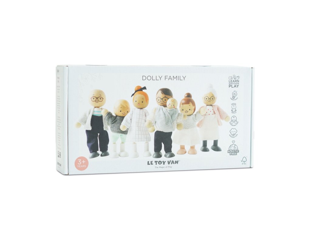 Šťastná rodina! Táto sada siedmich drevených bábik je pripravená a čaká na rodinné dobrodružstvá. Postavičky sú oblečené do krásnych, ručne šitých outfitov. Ich veľkosť je prispôsobená pre všetky domčeky a produkty značky Le Toy Van. Ideálna hračka pre vzdelávanie a inšpiráciu, ktorá podporuje sociálnu hru a zdokonaľuje jemné motorické schopnosti. Produkt sa môže líšiť vo farebných detailoch. Hračky s účelomVšetky hračky firmy Le Toy Van sú vyrobené s cieľom - aby dlho vydržali. Dizajnované s láskou skúsenými remeselníkmi za použitia etických praktík a udržateľných materiálov, ktoré sú láskavejšie k našej planéte. Hlavné vlastnosti: bábiky majú ručne šité oblečenie, vlnené vlasy a pohyblivé končatinyodborne a láskyplne vyrobené z udržateľných materiálovdrevo certifikované FSC z udržateľných zdrojovdôkladne testované, aby spĺňalo najvyššie bezpečnostné štandardyzdobené netoxickými farbami na vodnej bázehračka pomáha rozvíjať komunikáciu, sociálne zručnosti a kreativitu Značka a certifikát FSC® (Forest Stewardship Council) zaručuje, že drevo, z ktorého bol výrobok vyrobený, nebolo vyťažené nelegálne a pochádza z lesov obhospodarovaných šetrným či prírode blízkym spôsobom, v ktorom sú dodržiavané prísne environmentálne a sociálne požiadavky. Značka FSC® na výrobku znamená, že svojim nákupom pomáhate chrániť lesy a podporujete šetrné, zodpovedné či prírode blízke hospodárenie, vďaka ktorému sú naše lesy stabilnejšie, zdravšie, majú prirodzenú druhovú skladbu a lepšie odolávajú negatívnym následkom klimatických zmien.Dodatočné parametre