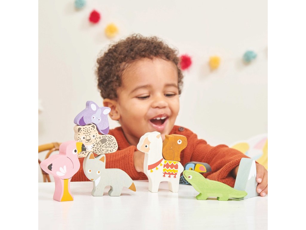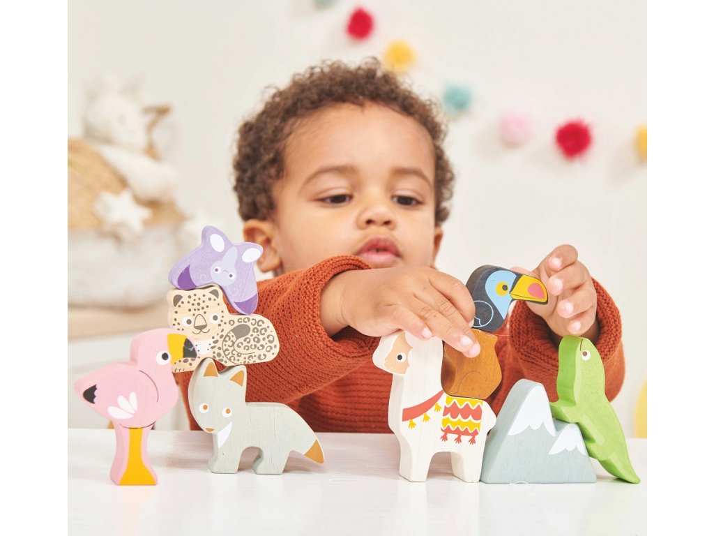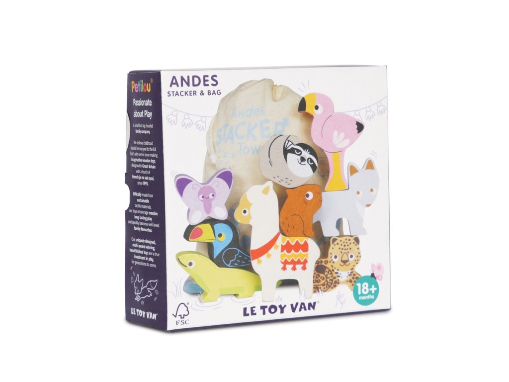 S touto hračkou deti čaká veľké dobrodružstvo! Senzorická skladačka so zvieratami z pohoria Ánd je vyrobená udržateľne, z pevného kaučukového dreva, maľovaná netoxickými farbami, ktoré sa nelúpu. V bavlnenom vrecúšku na šnúrku nájdete osem dielikov zvierat (lama, leňoch, plameniak, jašterica, tukan, motýľ...) a jeden dielik zasneženej hory. Všetky dieliky sú veľkostne tak akurát pre detské ruky. Deti si pri hre precvičia jemnú motoriku a zručnosť. Hračka je bez obsahu plastu a je taktiež vhodná na cesty. Hračky s účelomVšetky hračky firmy Le Toy Van sú vyrobené s cieľom - aby dlho vydržali. Dizajnované s láskou skúsenými remeselníkmi za použití etických praktík a udržateľných materiálov, ktoré sú láskavejšie k našej planéte. Hlavné vlastnosti: vyrobené eticky z udržateľného drevatestované podľa najprísnejších štandardovmaľované netoxickými farbami na báze vodyinšpiruje k predstavivej hrerozvíja kognitívne zručnostihračka bez obsahu plastubavlnené vrecúško a 9 dielikov Petilou kolekcia: Kolekcia pre dojčatá a batoľatá od Le Toy Van obsahuje hlavne hmatové hračky, ktoré majú najmenším poslúžiť aj ako učebné prostriedky. Kolekcia je inšpirovaná prírodou okolo nás a je navrhnutá tak, aby rozvíjala zmysly detí pomocou rozdielnych zvukov, textúr, tvarov a hmotností. Deti tak od malička zapoja všetky svoje zmysly. V kolekcii nájdete napríklad skladačky, vkladačky, chodítka, … Značka a certifikát FSC® (Forest Stewardship Council) zaručuje, že drevo, z ktorého bol výrobok vyrobený, nebolo vyťažené nelegálne a pochádza z lesov obhospodarovaných šetrným či prírode blízkym spôsobom, v ktorom sú dodržiavané prísne environmentálne a sociálne požiadavky. Značka FSC® na výrobku znamená, že svojim nákupom pomáhate chrániť lesy a podporujete šetrné, zodpovedné či prírode blízke hospodárenie, vďaka ktorému sú naše lesy stabilnejšie, zdravšie, majú prirodzenú druhovú skladbu a lepšie odolávajú negatívnym následkom klimatických zmien.Dodatočné parametre