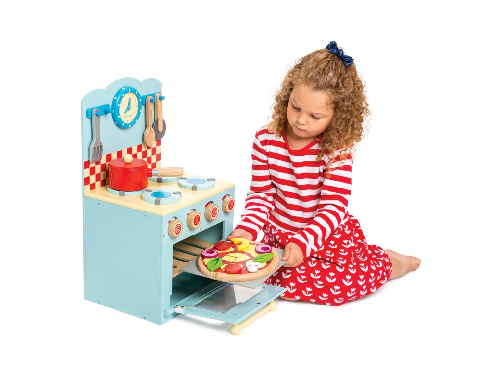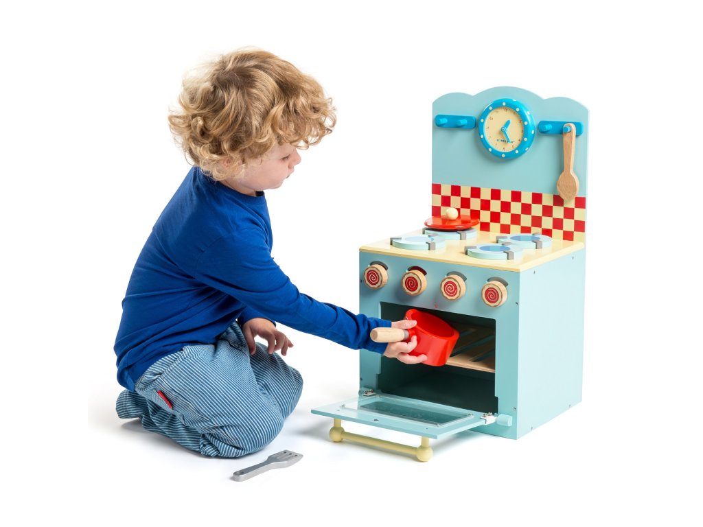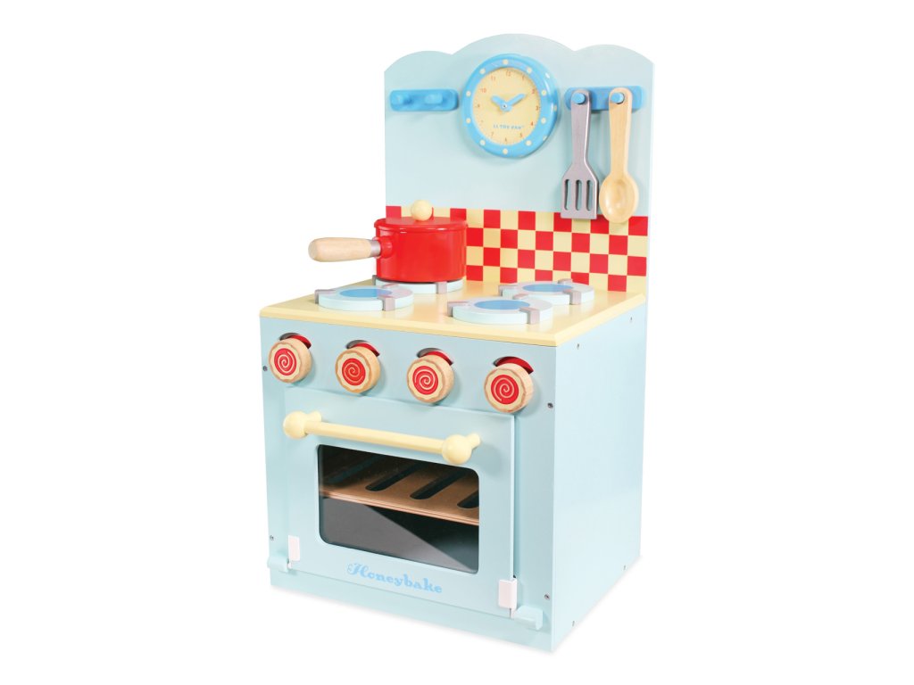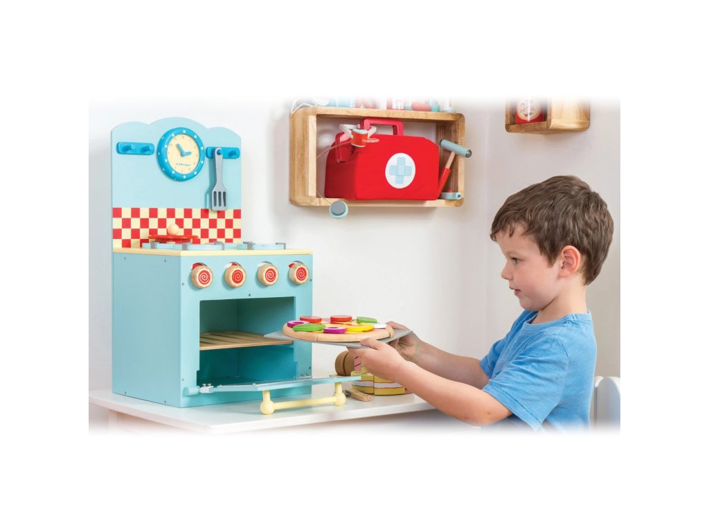 Detský sporák s rúrou bude perfektným darčekom pre mladých kuchárov a kuchárky. Zábavná hračka, ktorej nechýbajú ani doplnky, deti inšpiruje k predstavivej a edukatívnej hre. Sporák v tradičnom štýle vám vydrží naozaj dlho, je vyrobený z pevného a udržateľného dreva, nechýbajú mu ani otočné gombíky, funkčné dvierka, hodiny s pohyblivými ručičkami, na ktorých deti môžu nastaviť dobu varenia či pečenia. Medzi doplnky patrí hrniec, vareška a obracačka. Hračka je maľovaná netoxickými farbami, je to skutočný poklad, ktorý si môžete odovzdávať z generácie na generáciu. Hračky s účelomVšetky hračky firmy Le Toy Van sú vyrobené s cieľom - aby dlho vydržali. Dizajnované s láskou skúsenými remeselníkmi za použití etických praktík a udržateľných materiálov, ktoré sú láskavejšie k našej planéte. Hlavné vlastnosti: vyrobené eticky z udržateľného drevatestované podľa najprísnejších štandardovmaľované netoxickými farbami na báze vodyinšpiruje k predstavivej hrerozvíja kognitívne zručnosti Honeybake kolekcia: Hračky v tejto kolekcii sú vhodné na objavovanie, pomôžu deťom s rozvojom predstavivosti, sociálnych a verbálnych zručností a kognitívnych funkcií. Tradičný dizajn s modernými detailmi deti určite bude baviť. Honeybake je kolekcia Le Toy Van, ktorá vyhrala najviac ocenení, a to za dizajn, kvalitu, bezpečnosť a tiež za vzdelávaciu a hernú hodnotu.Dodatočné parametre