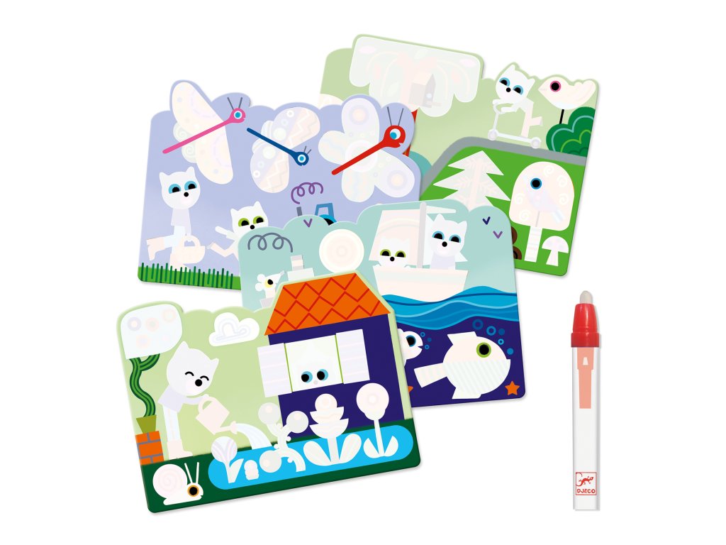 Vyfarbovanie vodou je skoro ako mágia. Svetlé miesta na obrázkoch stačí prekresliť vodou a objavia sa farby a vzory. Súčasťou sady je pero plniteľné vodou. Keď voda vsiakne, zas všetko vybledne a môžeš vyfarbovať znovu. Sada obsahuje 4 špeciálne obrázky, na ktorých môžeš pri vyfarbovaní objavovať, čo a kto sa ukrýva v záhrade, v parku a v mori.