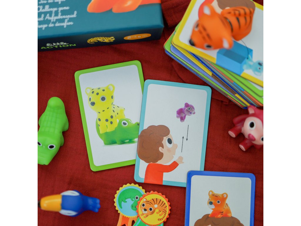 V džungli sa chystá veľká zábava – súťaž o medaily. Súťaží sa v 6 disciplínach: budete zvieratká ukladať na seba, hádzať nimi, ukladať si ich na hlavu a opisovať nimi kruh okolo vlastného tela. Obsahuje 6 milých gumených figúrok zvieratiek, s ktorými sa dieťa zahrá aj mimo hry. Návod si stiahnete tu: http://www.djeco.com/data/rules/DJ08557_SK.pdf