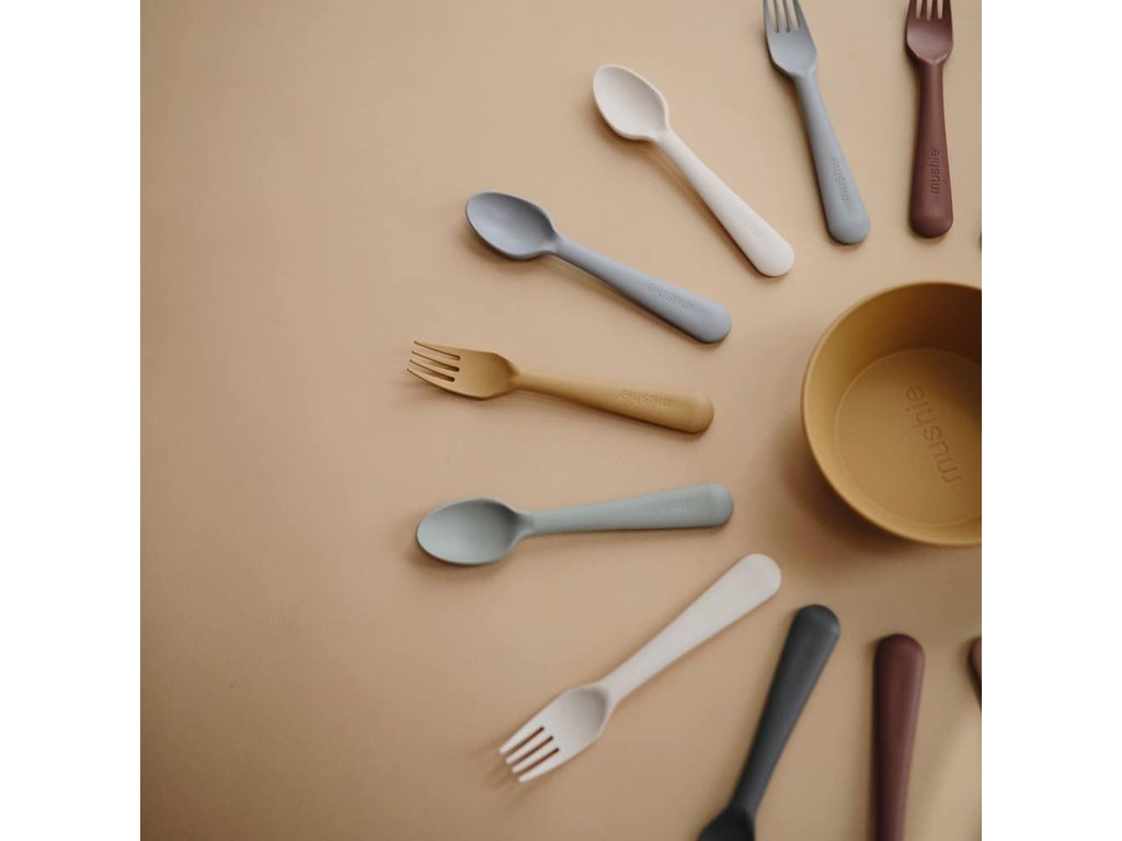 Mushie príbor krásne dopĺňajú ďalšie farebne zladené Mushie sety detského riadu a doplnkov. Vaše stolovanie s deťmi bude jednoducho štýlové a originálne.