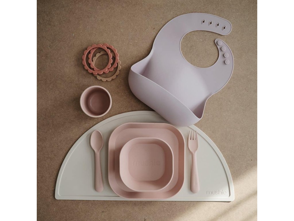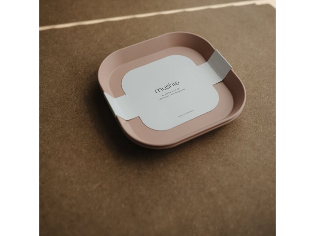 Mushie hranatý tanier plytký 2 kusy Blush, 19cm