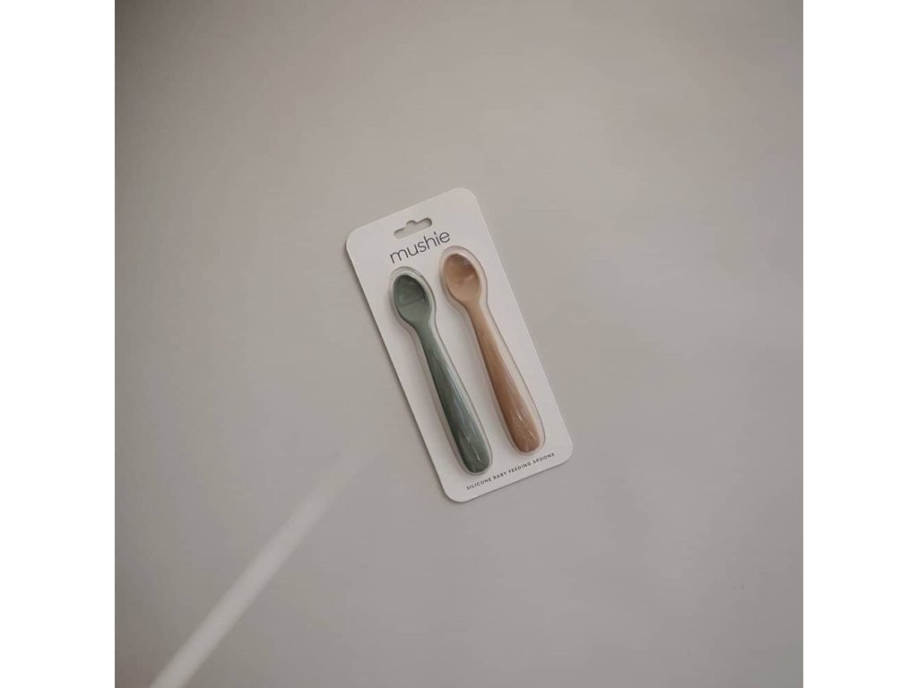 Mushie silikónová lyžička 2ks - Cambridge Blue / Shifting Sand