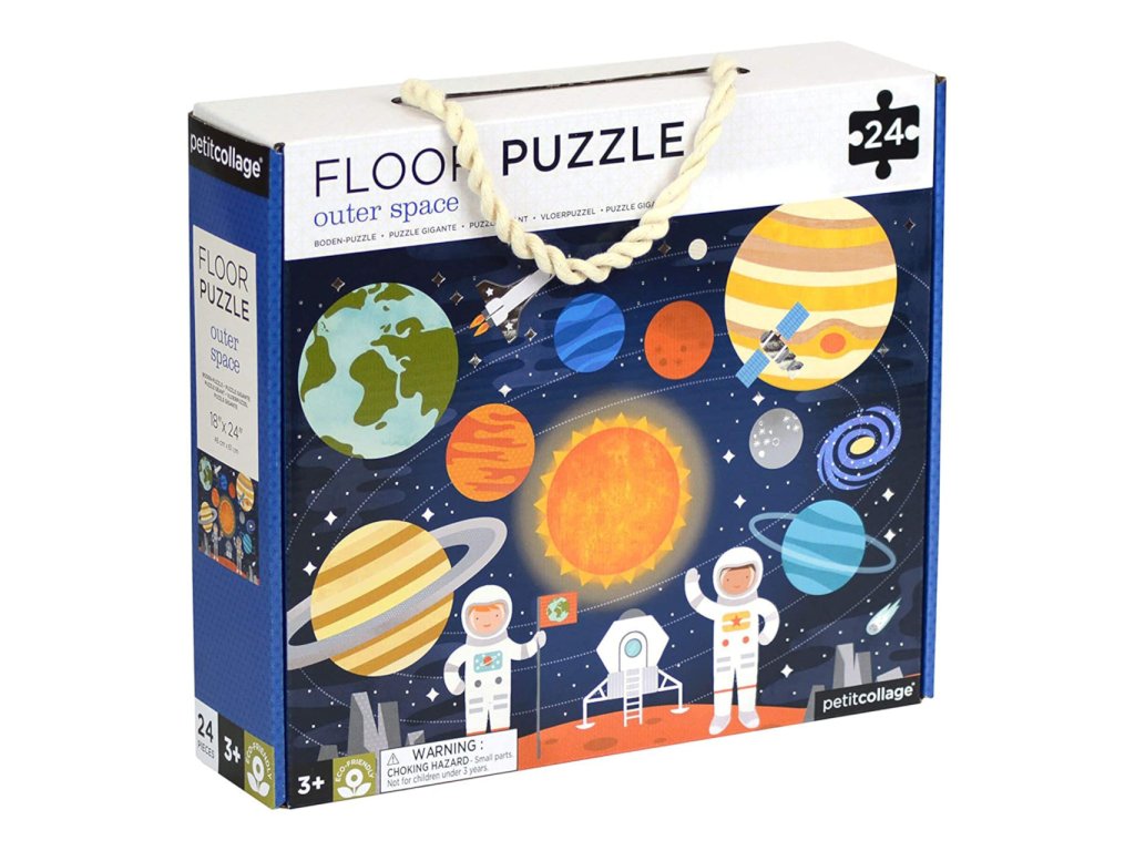 Zabalené v krabici s mäkkou bavlnenou rukoväťou, deti si ho tak môžu brať kamkoľvek so sebou. Puzzle má pekný potlač s tematikou vesmíru.