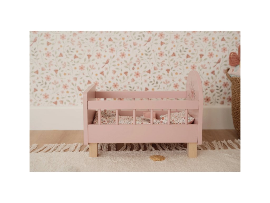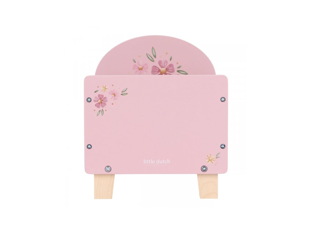 Drevený vozík v podobe ružového auta s krásnou kvetinovou potlačou je ako stvorený na prevážanie obľúbených hračiek, plyšákov a pod.