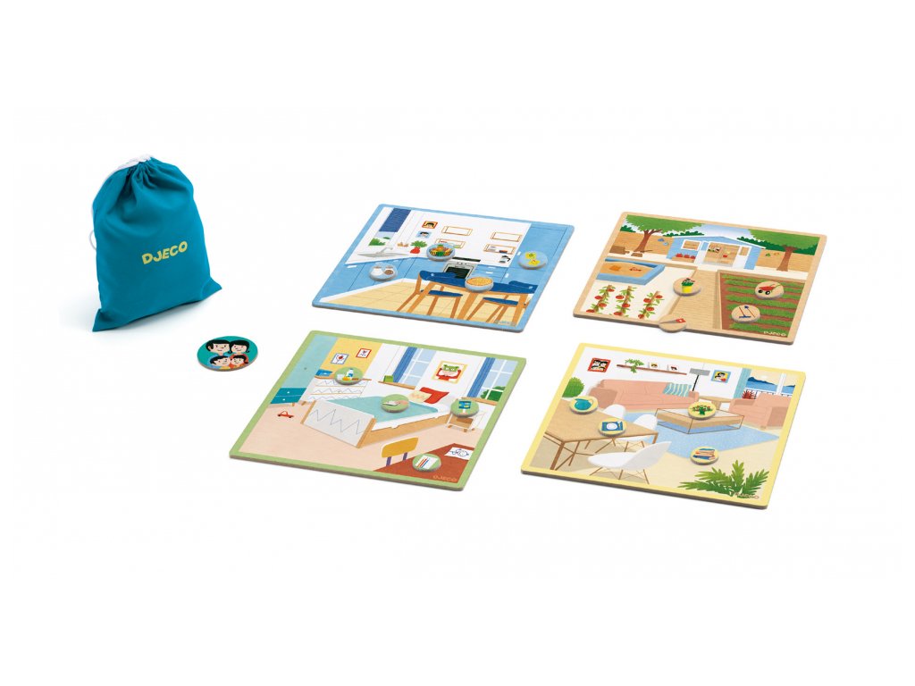 Pamäťová hra. Hrá sa so štyrmi hracími doskami, ktoré predstavujú 4 časti domu. Hráči sú rozdelení na obyvateľov domu (zastupuje ich 1 hráč) a zlodejov (1 – 3 hráči). Hráč hrajúci za rodinku obývajúcu dom si zatvorí oči a zatiaľ hráč/hráči predstavujúci zlodejov zoberú z domu niekoľko žetónov, na ktorých sú vyobrazené rôzne veci. s vecami. Hráč hrajúci za rodinku sa následne snaží spomenúť, ktoré veci zmizli. Z 12 žetónov sa odoberú vždy 4 žetóny. Žetóny s vecami, na ktoré si hráč nespomenie, zostanú zlodejom. Víťazom je hráč, ktorý získa najviac žetónov.
