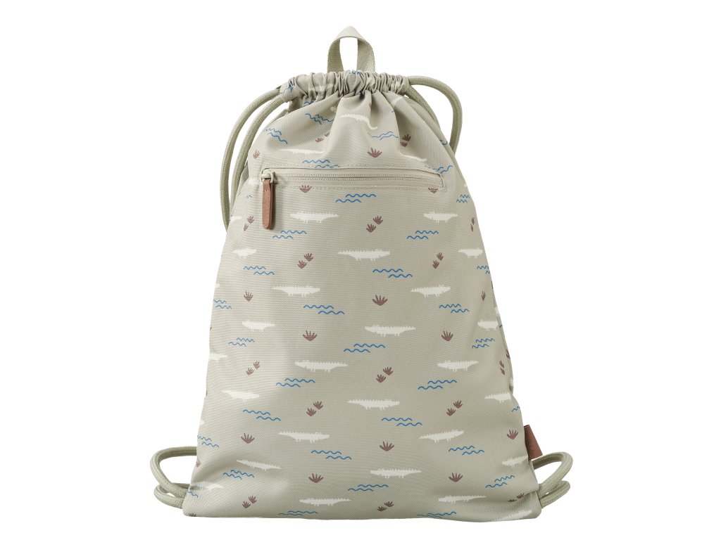 Štýlový ruksak z recyklovaných PET fliaš so vzorom krokodílov v zelenej farbe.