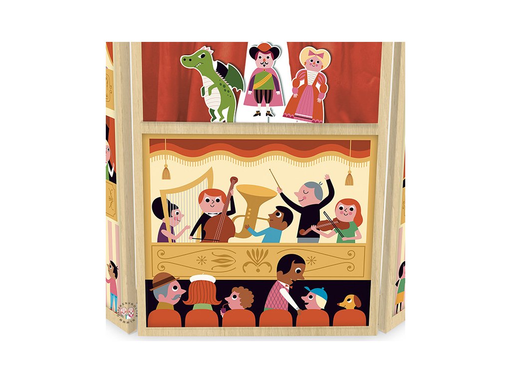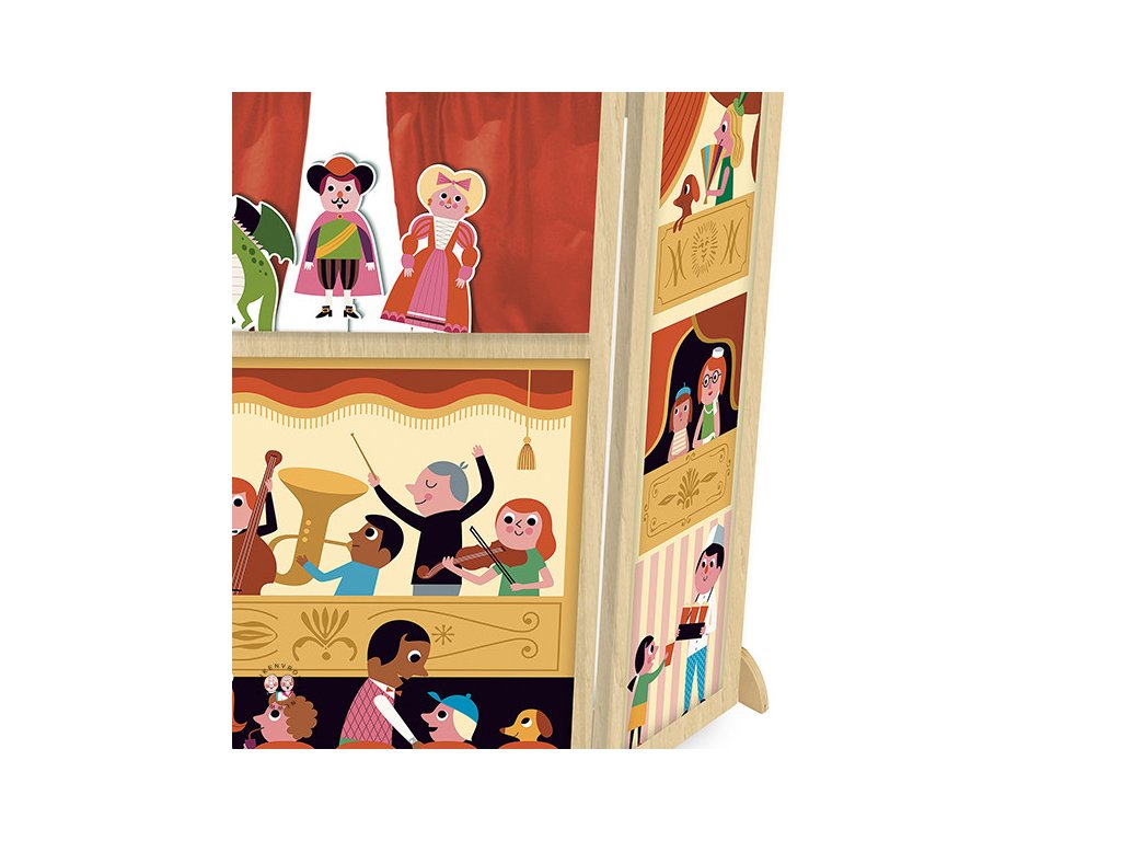 Veľkolepé trojhrannú divadlo zdobené rozprávkovými postavami. Na prostrednej stene má divadlo vo vrchnej časti okno s oponou. Deti si môžu vymyslieť vlastný príbeh a zabaviť svojich kamarátov či rodinu. Obsahuje 3 bábky . Ilustrované Ingela P. Arrhenius. Hlavné vlastnosti: dizajn Ingela P. Arrheniusrozvíja predstavivosť a komunikačné zručnosti Švédska umelkyňa Ingela Peterson Arrhenius sa narodila v roku 1967. Umenie a dizajn mali v jej živote vždy svoje miesto a predtým, ako začala svoju kariéru ilustrátorky, Ingela pracovala ako umelecký riaditeľ v Štokholme. Potom študovala reklamu a grafický dizajn na umeleckej škole v Štokholme. V roku 1992 si založila vlastnú ilustračnú firmu na voľnej nohe a pracovala medzinárodne v oblasti reklamy, dizajnu, vydavateľstva… V minulosti vytvárala návrhy potlače látok, tapiet, kancelárskych potrieb a pracovala aj na obaloch, produktovom dizajne, bytových doplnkoch a hračkách. Jej plagáty a dizajnové hračky nájdete po celom svete. Má záľubu v retro štýle, ktorá je jasne viditeľná v jej práci, ako aj v jej nadšení pre typografiu a farby. V súčasnosti žije v Štokholme so svojím manželom a dvoma synmi.Dodatočné parametre