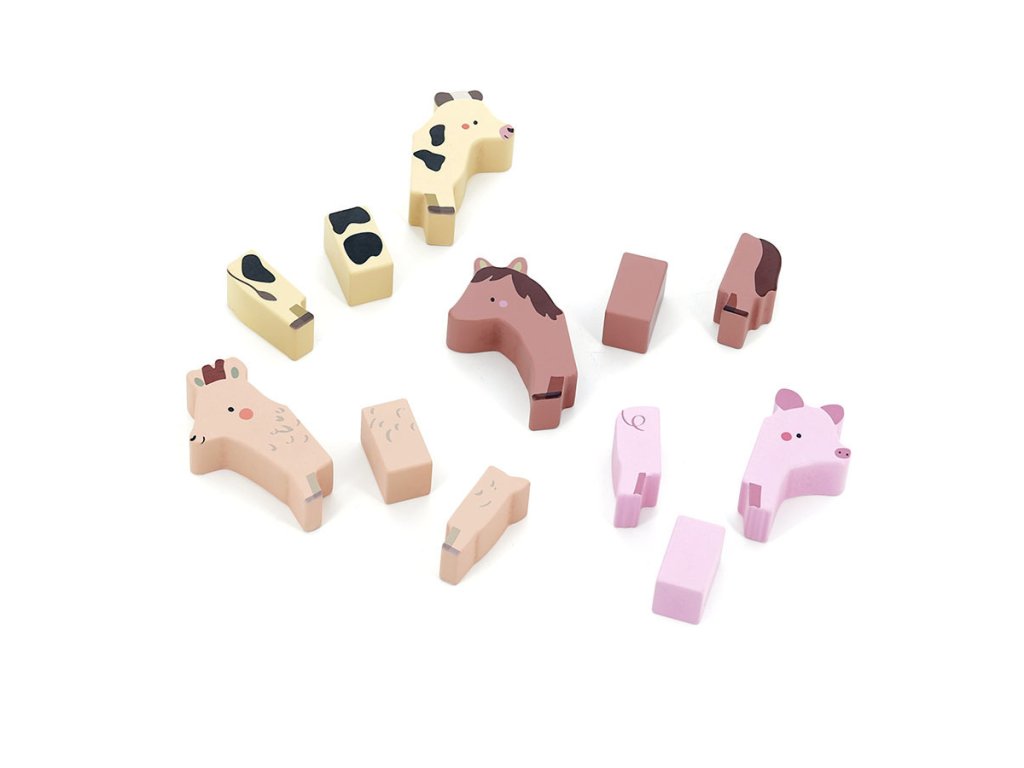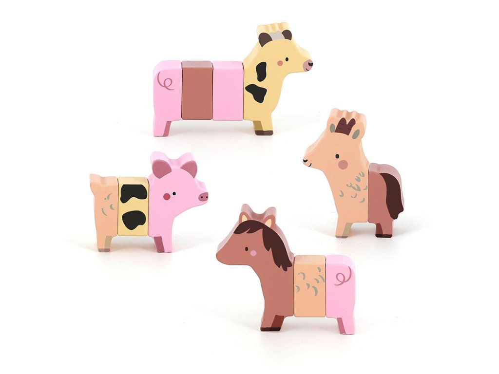 Ako by vyzeral koníček skrížený s prasiatkom alebo koza s koníkom? Zábavná drevená magnetická hračka prebúdza detskú fantáziu aj jemnú motoriku. Každé zvieratko sa skladá z 3 dielikov, ktoré sú vzájomne kombinovateľné. Deti si tak môžu vytvárať zvieratká, či už podľa skutočnosti alebo podľa vlastnej fantázie, môžu vymýšľať príbehy a zoznamovať sa so svetom zvierat zábavným a hravým spôsobom. Hračka je navrhnutá tak, aby podporovala slobodnú hru, rozvoj tvorivosti a radosť z objavovania. Pri manipulácii s magnetickými časťami si deti precvičujú koordináciu ruka-oko, jemnú motoriku aj logické myslenie. Vďaka drevenému prevedeniu je navyše hračka príjemná na dotyk a odolná. Je to ideálny spoločník pre dlhé hodiny tvorivej zábavy. Zvieratká sú ilustrované výtvarníčkou Sarah Betz, ktorá hračke vtlačila poetický a nežný štýl inšpirovaný prírodou. Jej kresby dodávajú hračke kúzlo, ktoré si získa srdcia detí i rodičov. Hlavné vlastnosti: 12 dielikov, 4 zvieratká – kravička, koníček, prasiatko, kozainšpirované Montessori pedagogikoupodporuje fantáziurozvíja kreativitutrénuje jemnú motoriku a koordináciu ruka-okorozvíja schopnosť analyzovania, triedenia a skladaniavhodné pre deti od 2 rokovilustrácie Sarah BetzDodatočné parametre