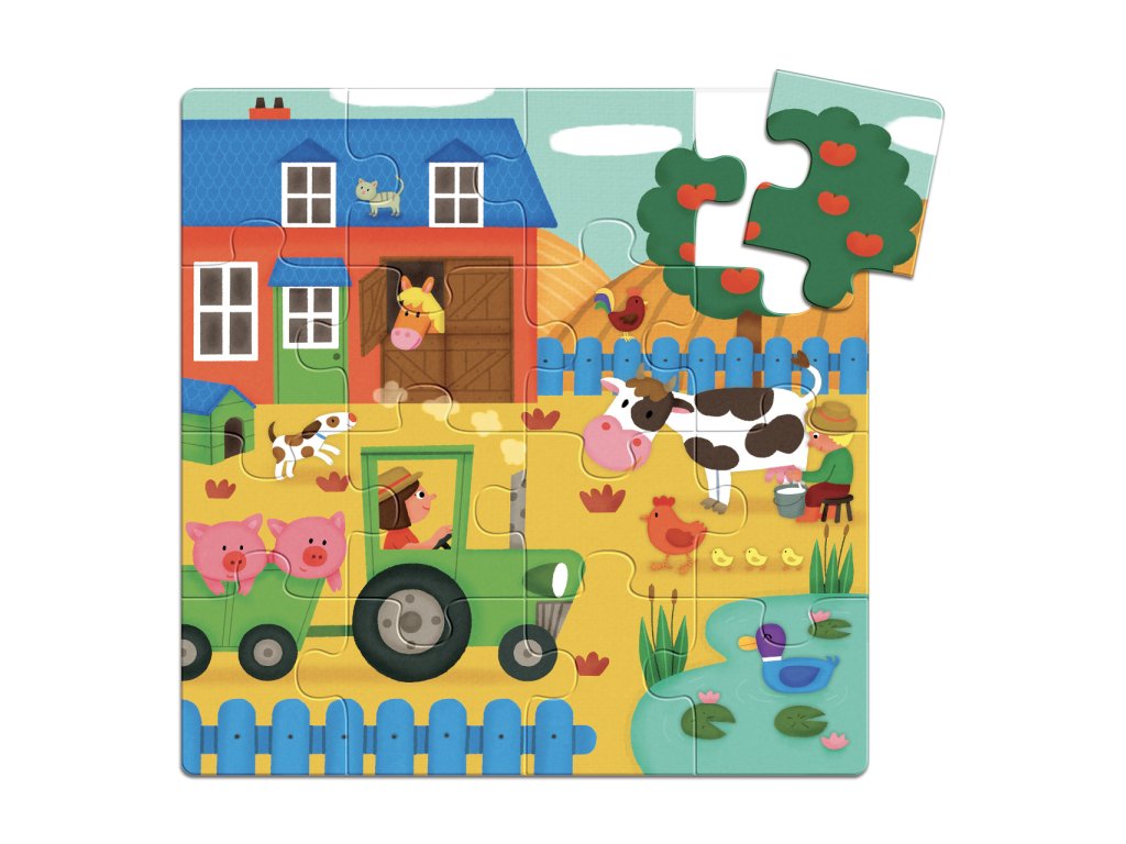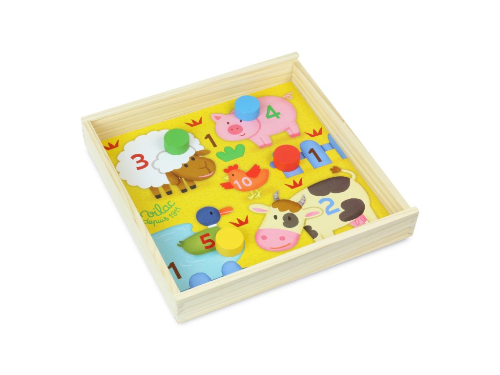 O popoludňajšiu zábavu máte postarané! Súprava hier upravených pre najmenšie deti, s roztomilými zvieratkami z farmy. Obsahuje puzzle s veľkými dielikmi, hádzanie na terč, magnetické rybárčenie a Husaciu hru. V Husacej hre sa hráči pohybujú po špirálovitom hracom poli a snažia sa vyhnúť políčkam s nástrahami. Všetky súčasti sú uschované v praktickej drevenej krabici, ktorej bohato dekorované veko slúži ako herný plán. Hlavné vlastnosti: pre 2–4 hráčov4 v 1 - puzzle, rybárčenie, hádzanie na terč a Husacia hra16 dielikov puzzle, 2 udice a 8 kačíc, 4 hracie žetóny a kockapraktické balenie s hernými plánmiDodatočné parametre