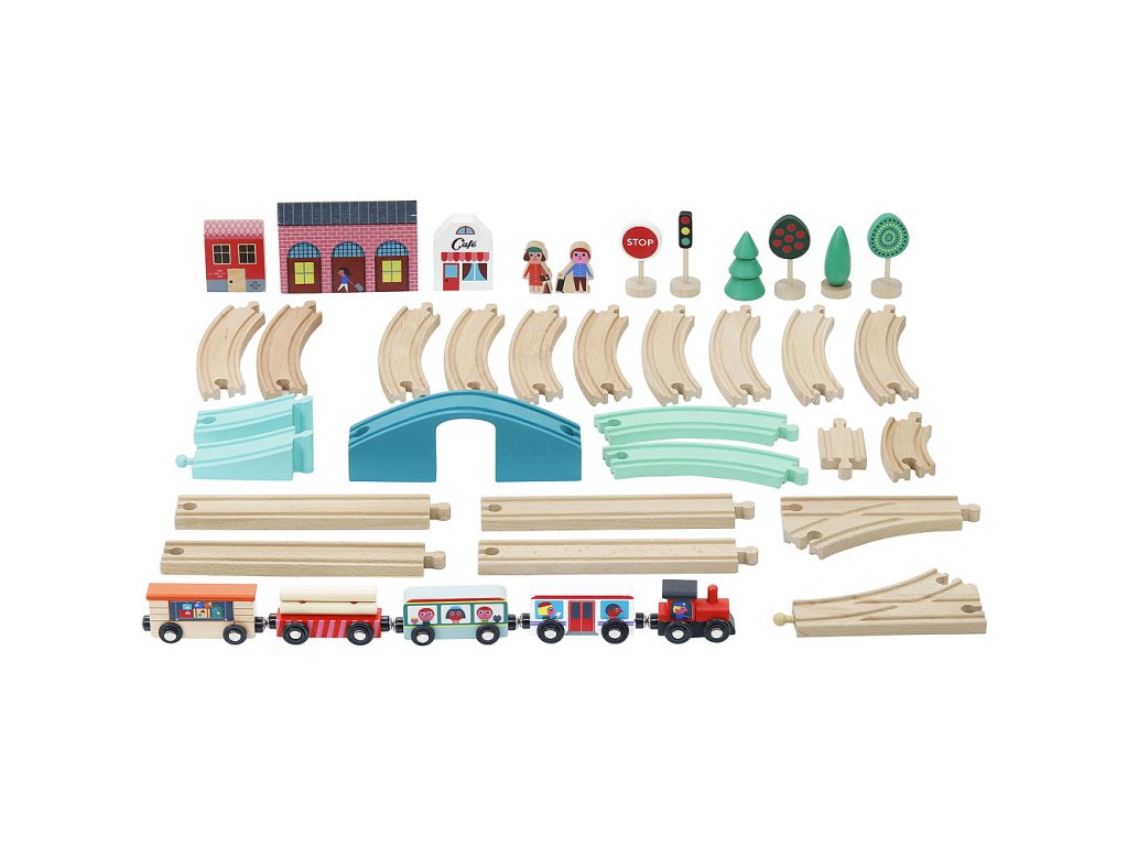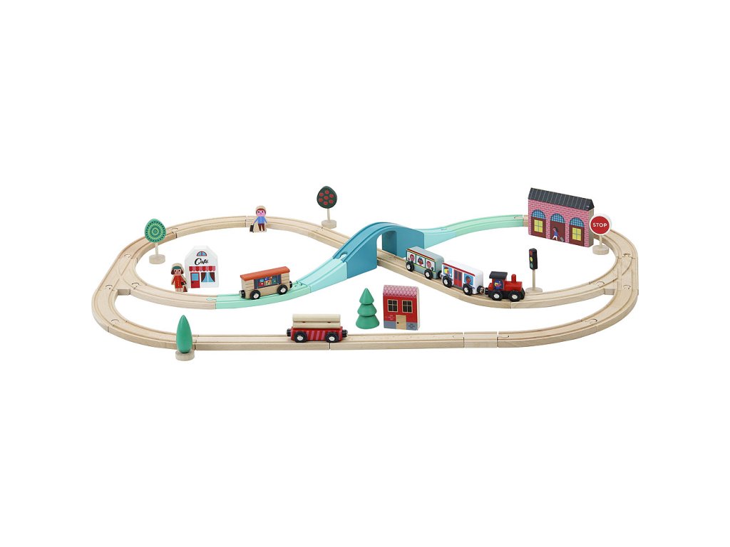 Krásna vláčikodráha Grand Express v spolupráci s Ingelou P. Arrhenius. Hračka sa skladá zo 40 dielikov: 1 lokomotívy, 4 vagónov, 24 dielikov dráhy, 1 budovy stanice, 2 domov, 4 stromov, 2 dopravných značiek. Kompatibilná s ďalšími železničnými dráhami dostupnými na trhu. Vláčkodráha je zabalená v retro kufríku. Vhodné od 3 rokov. Hlavné vlastnosti: obsahuje 40 dielovpraktické balenie v kufríkukompatibilné rozmery koľají s inými vláčkodráhamidizajn Ingela P. Arrhenius Švédska umelkyňa Ingela Peterson Arrhenius sa narodila v roku 1967. Umenie a dizajn mali vždy miesto v jej živote a ako začala jej kariéra ilustrátorky, Ingela pracovala ako umelecká vedúca v Štokholme. Potom študovala reklamný a grafický dizajn na umeleckej škole tiež v Štokholme. V roku 1992 začala podnikať ako ilustrátorka na voľnej nohe a pracovala medzinárodne naprieč reklamou, dizajnom, nakladateľstvom… V minulosti vytvárala tlačové vzory pre tkaniny, tapety, papiernictva, tiež pracovala na obaloch, produktovom dizajne, bytových doplnkoch a hračkách. Jej plagáty a dizajnové hračky nájdete po celom svete. Má vášeň pre retro štýl, čo je jasne vidieť na jej dielach a tiež v jej nadšeniu pre typografiu a farby. Teraz žije v Štokholme s manželom a 2 synmi.Dodatočné parametre