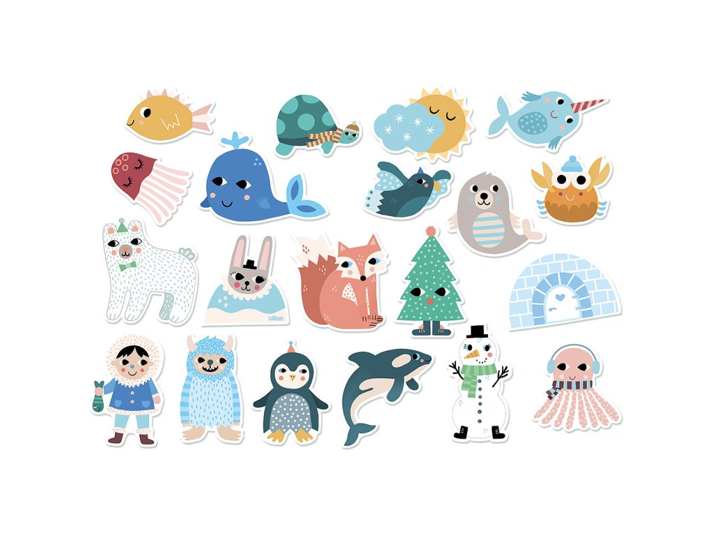 Sada dvadsiatich drevených magnetov s ilustráciami Michelle Carlslund v motívoch zimy a severu. Hlavné vlastnosti: 20 ks magnetiekdizajn Michelle Carlslunddekoračný prvok vhodný do izby aj na chladničkuekologicky vyrobené, šetrné k životnému prostrediu Cestujte s nami v naivnom a elegantnom svete dánskej ilustrátorky Michelle Carlslund, svete jemných farieb, ktorý je plný roztomilých medveďov a priateľských vtáčikov. V roku 2010, keď Michelle ešte študovala grafický dizajn, vytlačila doma svoje ilustrácie a skúsila ich predať na dizajnovom trhu, kde sa stretli s veľkým úspechom! Niekoľko obchodíkov chcelo začať predávať jej výtvory, a tak ju napadlo, že by bolo fajn začať podnikať. Michelle sa rýchlo stala uznávanou nezávislou ilustrátorkou. Dnes možno jej ekologické grafické diela zakúpiť po celom svete v dizajnových butikoch, papiernictvách a detských obchodoch. Michelle sa inšpiruje všetkým okolo nej. Jej výtvory sú nežné a poetické, štylizovaný a detinský štýl, ktorý sa perfektne prelína s hračkami firmy Vilac. „Som hranolky milujúca, časová optimistka a tvorkyňa ekologických plagátov a ilustrátorka na voľnej nohe so sídlom v dánskej Kodani,“ to by povedala ilustrátorka Michelle Carlslundová, keby sa mala popísať jednou vetou.Dodatočné parametre