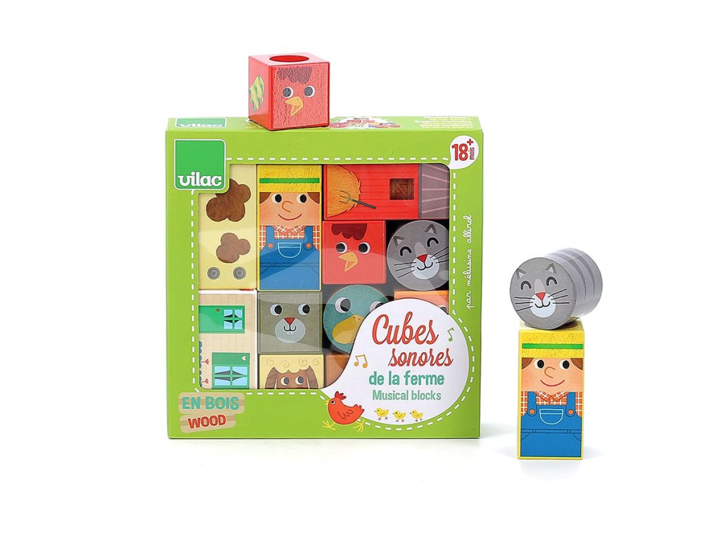 Jedenásť drevených zvukových kociek s motívom farmy. S týmito kockami si deti precvičia motoriku i zručnosť a zároveň budú objavovať zvuky. Pre deti veľmi pútavá hračka. Hlavné vlastnosti: edukačné zmyslové kocky obsahuje 11 kociekDodatočné parametre