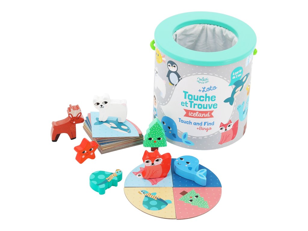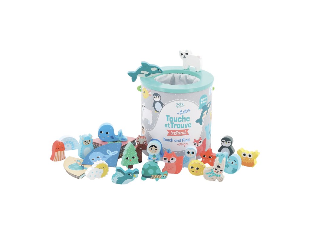 Neprekonaný bestseller Vilac sa originálnym spôsobom snaží rozvíjať často zabúdaný zmysel detí, hmat. Teraz prichádza v jedinečnom variante vyrobenom podľa návrhov ilustrátorky Michelle Carlslund. Hra je tvorená najmä drevenými figúrkami ukrytými vo vedierku vybavenom vo vnútri jemným látkovým vreckom. Menšie deti majú za úlohu po vložení ruky do tuby len na základe hmatania popísať svojimi slovami, aký predmet drží v ruke. Rodičia môžu postup deťom predviesť názorným príkladom. Staršie deti môžu hrať hru vo forme lota, alebo binga, k týmto hrám sú v sade k dispozícii obrázkové karty jednotlivých predmetov. Hlavné vlastnosti: 21 herných dielikov a 20 obrázkových karietpre 2–5 hráčovrôzne herné variantydizajn Michelle Carlslundpraktické balenie Návod na hru: Hmataj a nájdi: Prvý hráč si vezme kartu z kôpky. Potom musí siahnuť do vrecka a podľa hmatu nájsť drevený dielik, ktorý zodpovedá obrázku na karte. Ak vyberie správny dielik, kartu si ponechá a na rade je ďalší hráč, ktorý opäť začína ťahaním karty z kôpky. Pokiaľ ale prvý hráč vyberie nesprávny dielik, musí svoju kartu odovzdať ďalšiemu hráčovi, ktorý sa musí pokúsiť nájsť správny dielik. Po každom kole sa dieliky vracajú späť do vrecka. Keď už na kôpke nezostáva žiadna karta, určí sa víťaz. Víťazí hráč s najväčším počtom kariet. Pozor! Ak jeden z hráčov náhodou vytiahne dielik v tvare Yettiho, musí všetky svoje karty vrátiť na kôpku! Pravidlá môžete upraviť podľa vlastného uváženia, aby sa deti lepšie zoznámili s hmataním a hľadaním predmetov: 1 – Začnite s malým množstvom drevených dielikov. 2 – Dovoľte deťom pozrieť sa do vrecka. 3 – Potom hru opäť urobte o niečo ťažšiu, nedovoľte im nazerať do vrecka. 4 – Pridajte do vrecka viac dielikov. 5 – Nakoniec, keď si deti na hru zvyknú, hrajte podľa tradičných pravidiel. BINGO variant: Rozložte 4 karty do štvorca a vytvorte jedno, alebo viac hracích polí pre každého hráča. Jeden z hráčov, alebo rodič vytiahne dielik z vrecka a vyvolá ho. Hráč, ktorý má kartu zodpovedajúcu tomuto vyvolanému dieliku, si ho vezme a položí na svoju kartičku. Víťazí hráč, ktorý ako prvý zaplní svoje herné pole! Dokumentácia:Návod na hru Hmataj a nájdi Iceland (SK)Návod na hru Hmataj a nájdi Iceland (CZ)Návod na hru Hmataj a nájdi Iceland (FR, EN, IT, ES, DE, DK, NL) Cestujte s nami v naivnom a elegantnom svete dánskej ilustrátorky Michelle Carlslund, svete jemných farieb, ktorý je plný roztomilých medveďov a priateľských vtáčikov. V roku 2010, keď Michelle ešte študovala grafický dizajn, vytlačila doma svoje ilustrácie a skúsila ich predať na dizajnovom trhu, kde sa stretli s veľkým úspechom! Niekoľko obchodíkov chcelo začať predávať jej výtvory, a tak ju napadlo, že by bolo fajn začať podnikať. Michelle sa rýchlo stala uznávanou nezávislou ilustrátorkou. Dnes možno jej ekologické grafické diela zakúpiť po celom svete v dizajnových butikoch, papiernictvách a detských obchodoch. Michelle sa inšpiruje všetkým okolo nej. Jej výtvory sú nežné a poetické, štylizovaný a detinský štýl, ktorý sa perfektne prelína s hračkami firmy Vilac. „Som hranolky milujúca, časová optimistka a tvorkyňa ekologických plagátov a ilustrátorka na voľnej nohe so sídlom v dánskej Kodani,“ to by povedala ilustrátorka Michelle Carlslundová, keby sa mala popísať jednou vetou.Dodatočné parametre