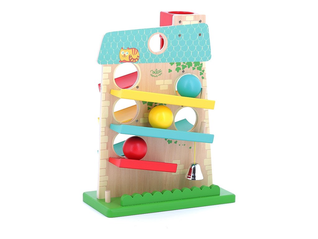 Farebný kaskádový domček je krásna drevená hračka, s ktorou si deti užijú veľa zábavy. Domček má 3 rampy na oboch stranách a tak sa drevené loptičky pohybujú zhora nadol, zo strany na stranu. A keď loptička dôjde do cieľa, zazvoní kovový zvonček. Pútavá hračka podporujúca logické myslenie. Hlavné vlastnosti: pastelové farbyrozvíja zručnosť detípodporuje logické myslenieDodatočné parametre