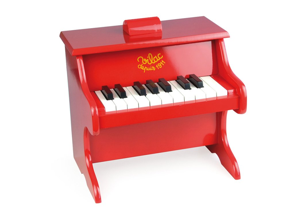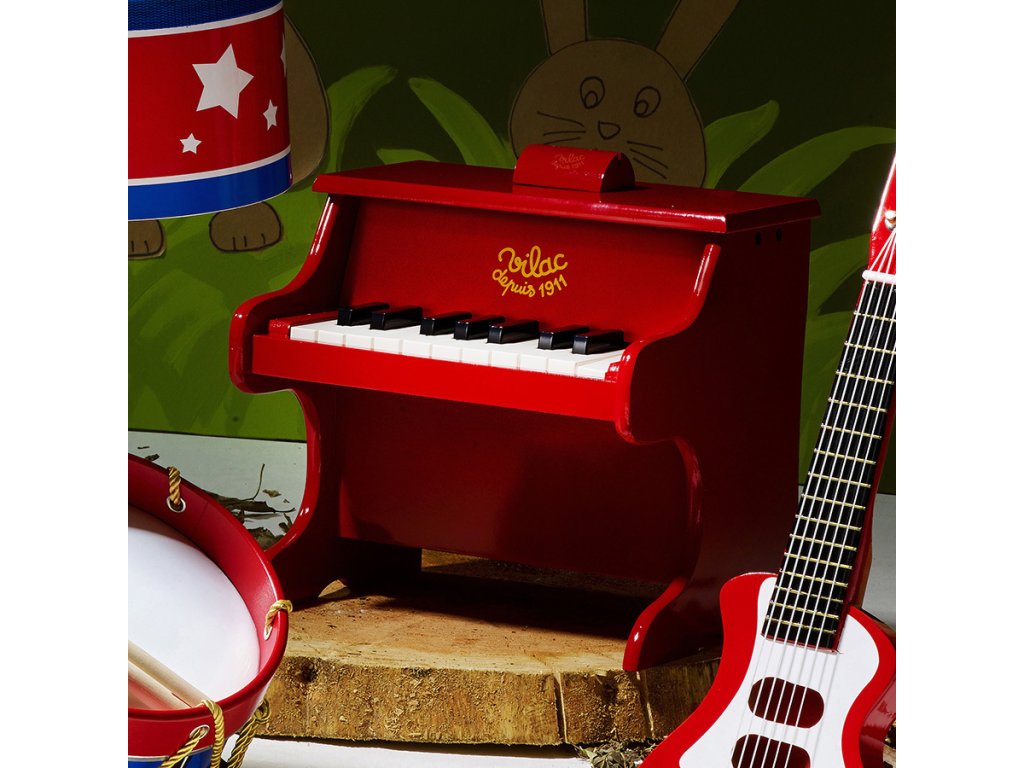 Krásny červený drevený klavír s 18 klávesmi. Súčasťou balenia je desať stránok nôt, deti sa tak môžu naučiť hrať niektoré z melódií. Pozor, tento klavír je imitácia, nie hudobný nástroj, preto nemá profesionálne zvuk. Hlavné vlastnosti: kvalitné spracovanierozvíja lásku k hudbe a rytmuDodatočné parametre