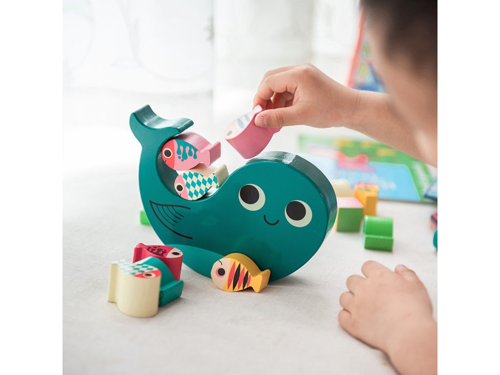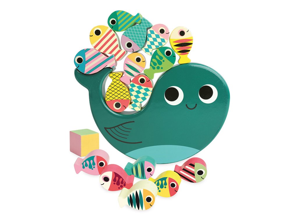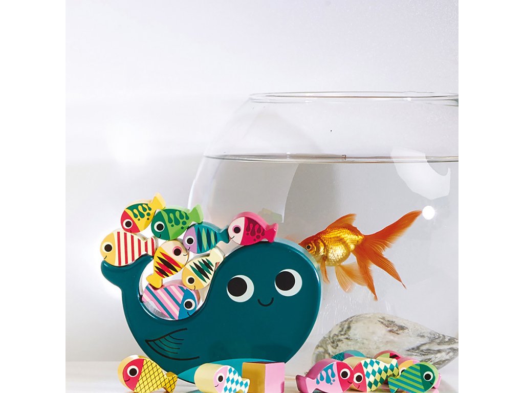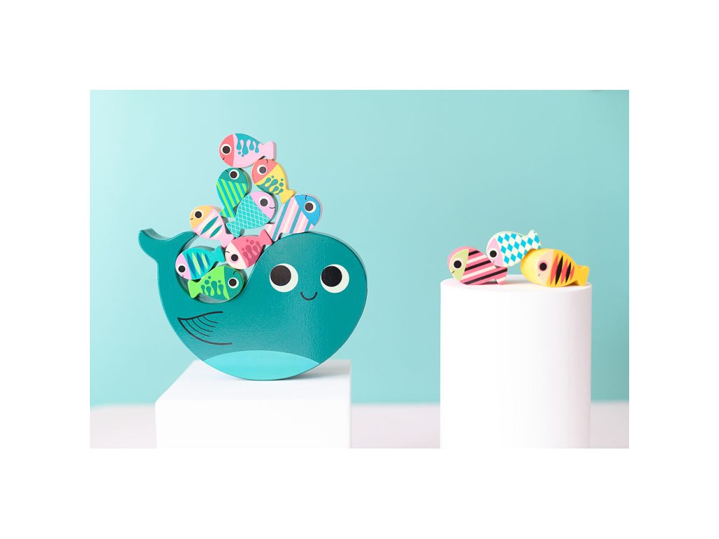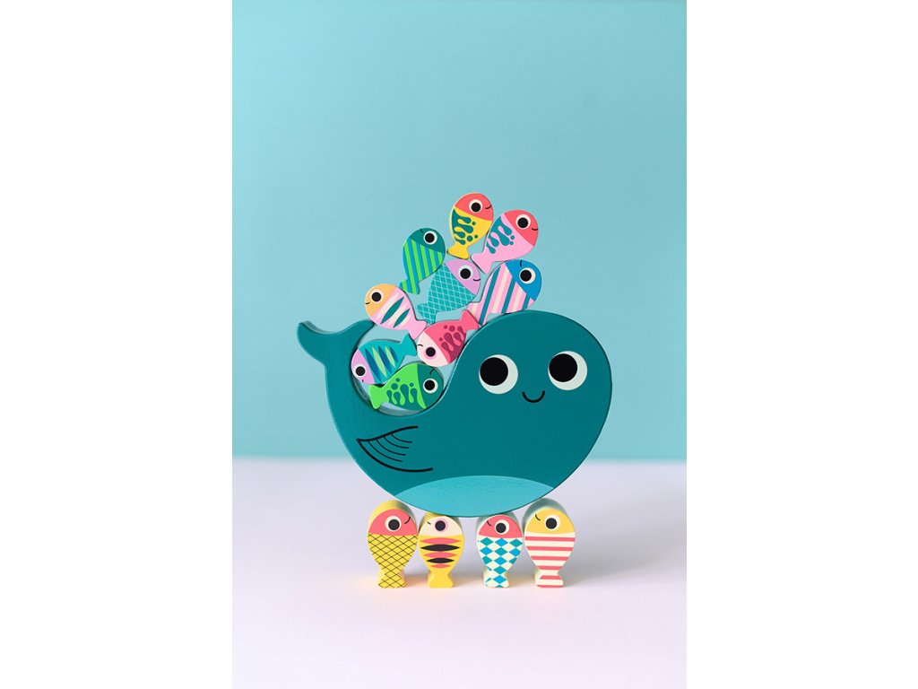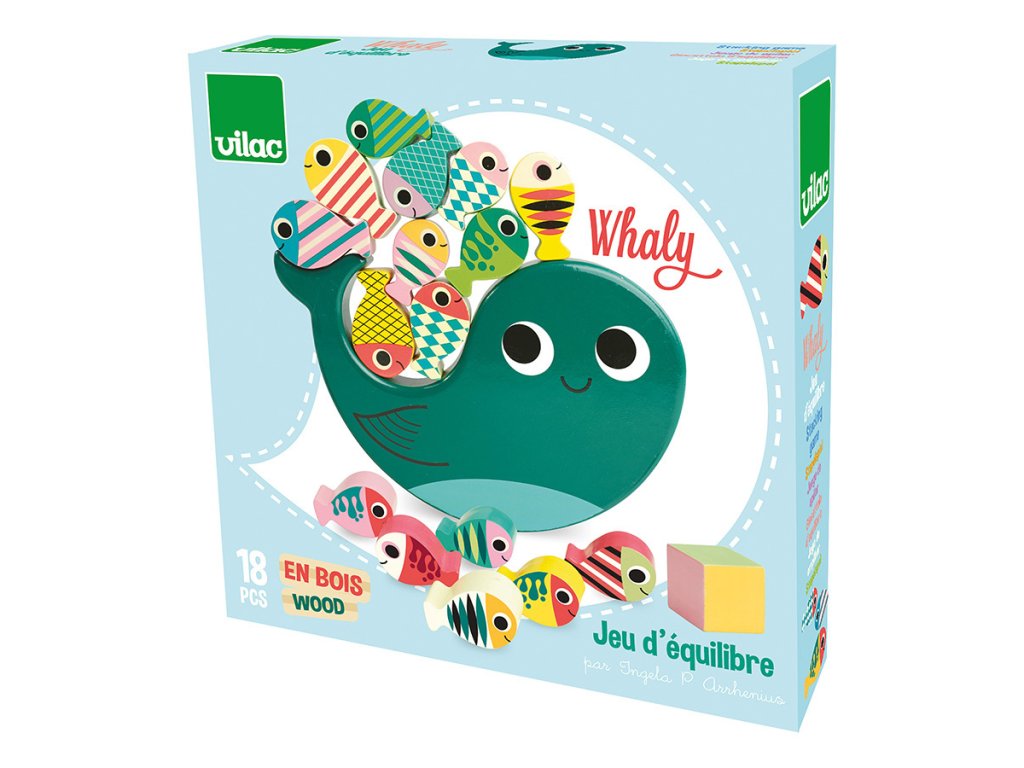 Hoďte kockou a pokúste sa na veľrybu naskladať všetky ryby podľa farby na kocke. Pozor, nech Vám to nespadne! Ilustrovala Ingela P. Arrhenius. Obsahuje 18 dielikov. Hlavné vlastnosti: 1 základňa, 16 herných dielikov a 1 kockaIlustrácia Ingela P. Arrheniusvyrobené ekologicky, šetrne k životnému prostrediu Švédska umelkyňa Ingela Peterson Arrhenius sa narodila v roku 1967. Umenie a dizajn mali v jej živote vždy svoje miesto a predtým, ako začala svoju kariéru ilustrátorky, Ingela pracovala ako umelecký riaditeľ v Štokholme. Potom študovala reklamu a grafický dizajn na umeleckej škole v Štokholme. V roku 1992 si založila vlastnú ilustračnú firmu na voľnej nohe a pracovala medzinárodne v oblasti reklamy, dizajnu, vydavateľstva… V minulosti vytvárala návrhy potlače látok, tapiet, kancelárskych potrieb a pracovala aj na obaloch, produktovom dizajne, bytových doplnkoch a hračkách. Jej plagáty a dizajnové hračky nájdete po celom svete. Má záľubu v retro štýle, ktorá je jasne viditeľná v jej práci, ako aj v jej nadšení pre typografiu a farby. V súčasnosti žije v Štokholme so svojím manželom a dvoma synmi.Dodatočné parametre