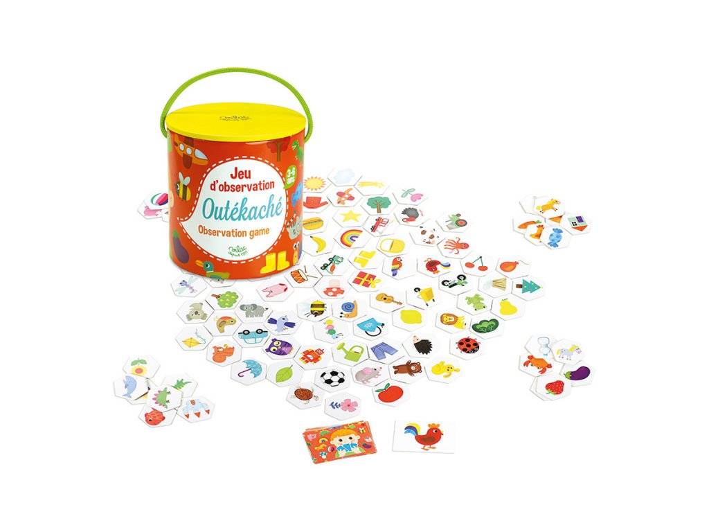 Preverte postreh Vašich detí! Kto medzi rozloženými dielikmi dokáže ako prvý nájsť obrázok zhodný s vyobrazením na kartičke? Hráči pritom musia dať starostlivý pozor, v záplave obrázkov sa totiž ukrývajú aj chytáky! Herné dieliky sú pevné a odolné, vyrobené z dreva. Dodávané v praktickom a atraktívne dekorovanom vedre s dreveným vekom. Hlavné vlastnosti: pre 2–5 hráčov100 herných dielikov a 100 kartičiekpraktické balenie Skrátený návod hry:Rozložte všetky herné dieliky do stredu stola, obrázkom hore. Hráč si vezme kartu z balíčka, ukáže ju všetkým protihráčom. Hráč, ktorý nájde obrázok na stole ako prvý, si túto kartu ponechá. Víťazí hráč, ktorý ako prvý nazbiera 10 kariet.Dodatočné parametre